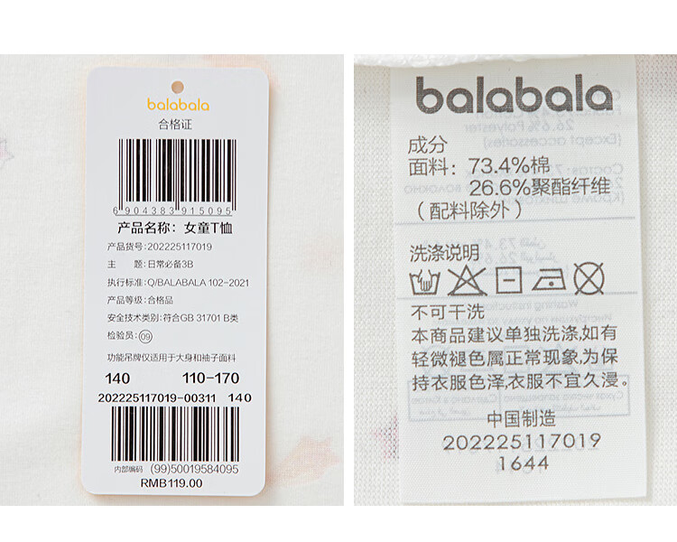 迷你巴拉巴拉男女童长袖套装潮流拼色上衣长裤两件套春季新款 海盐千层 100 【91-100cm 12-16kg】