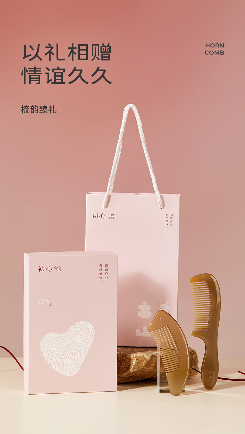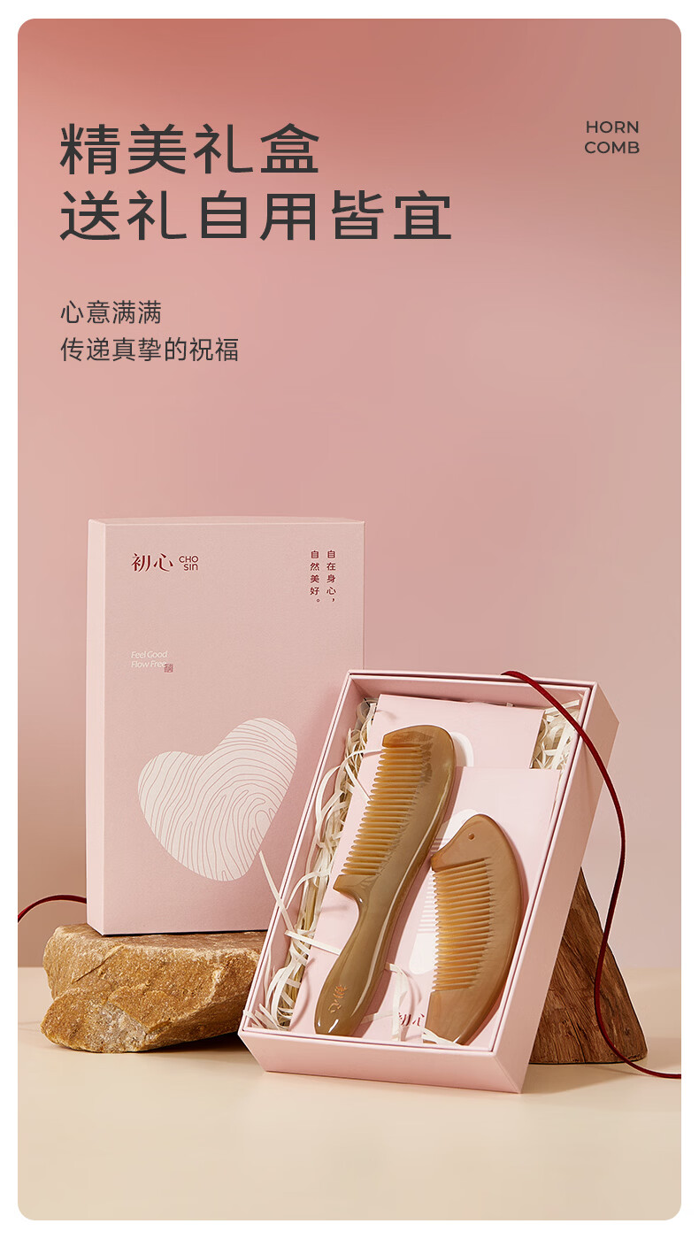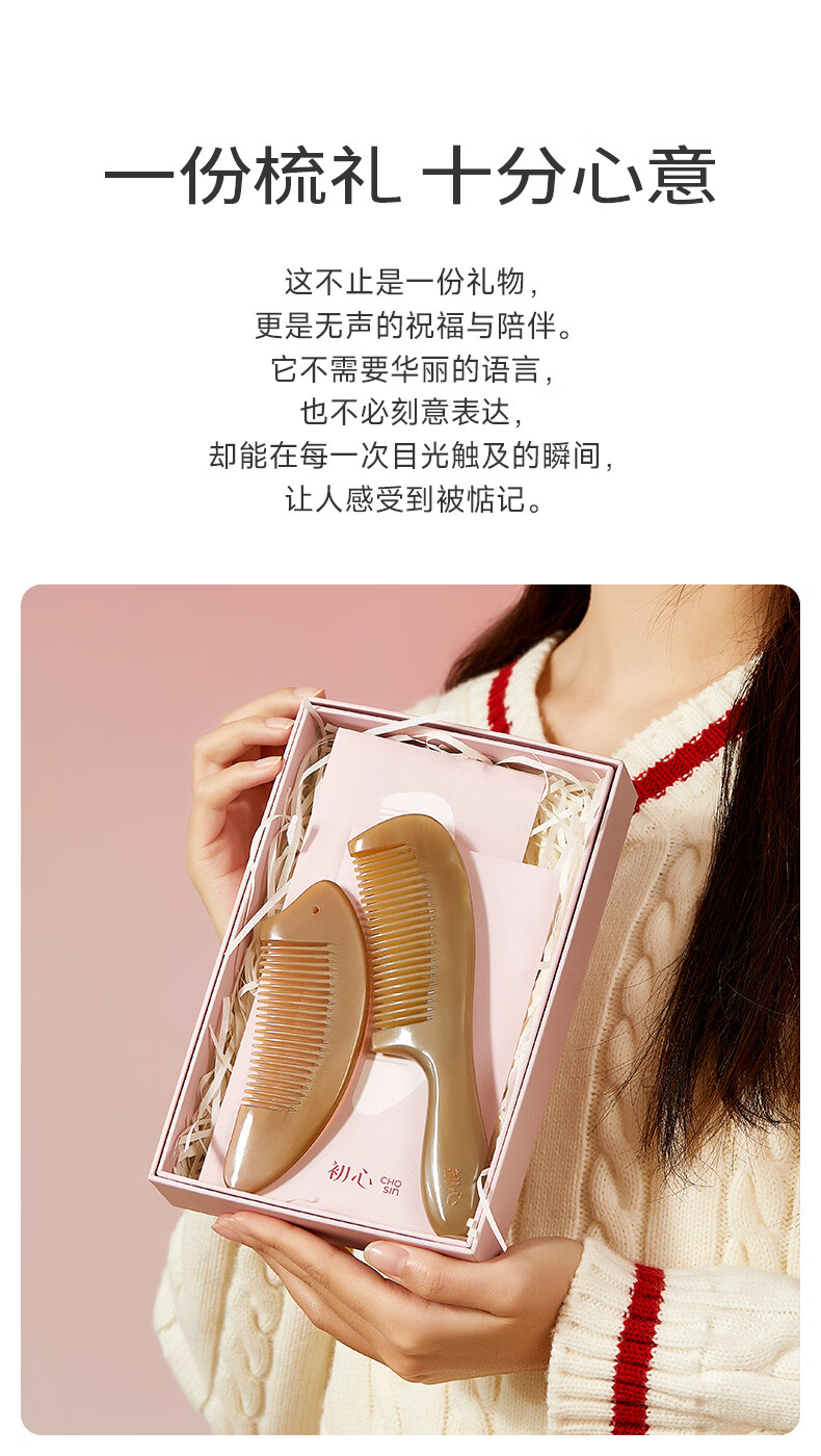 初心牛角梳子按摩梳礼盒装送女友生日礼物520情人节礼物送女生 梳韵臻礼牛角梳礼盒