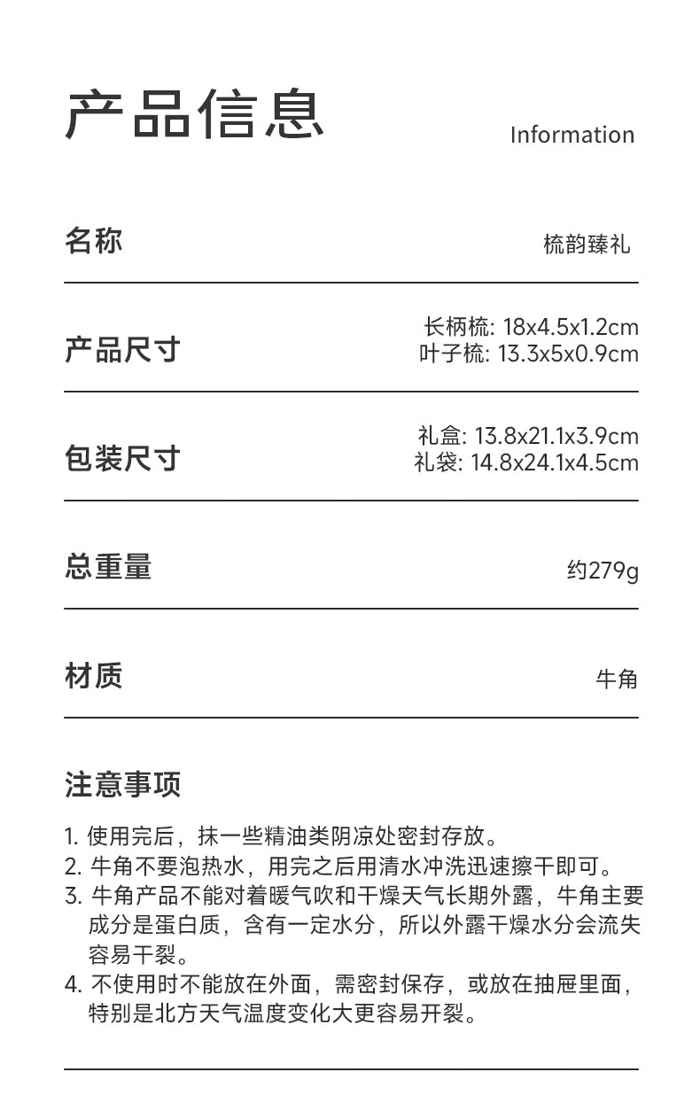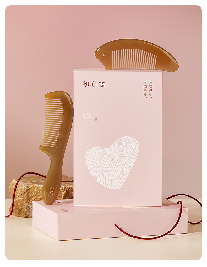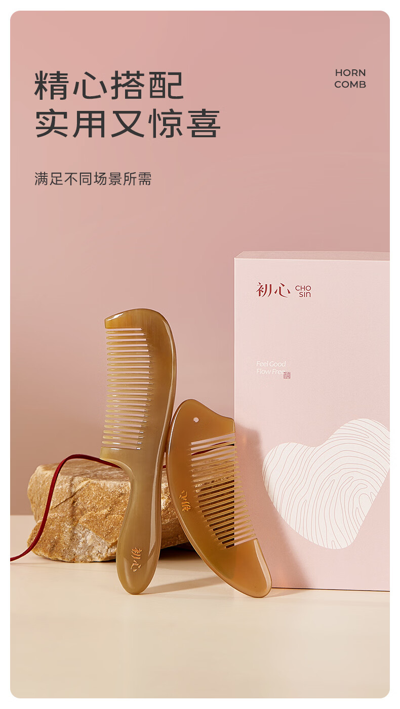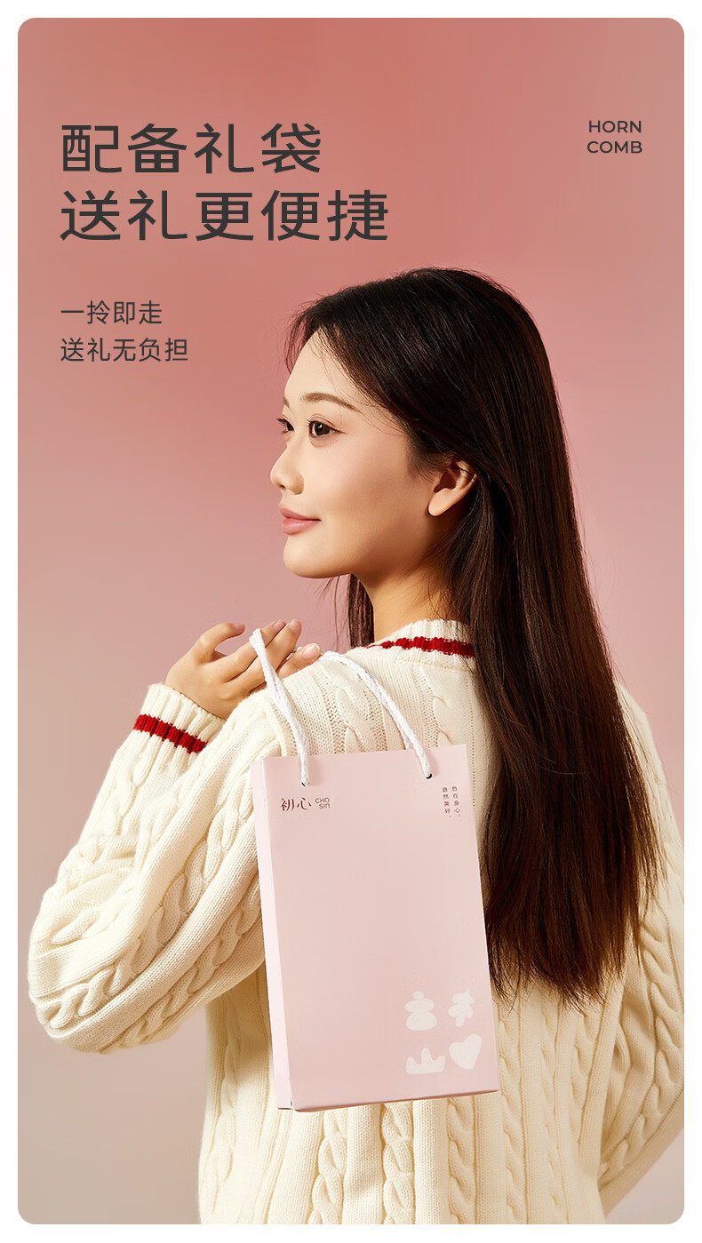 初心牛角梳子按摩梳礼盒装送女友生日礼物520情人节礼物送女生 梳韵臻礼牛角梳礼盒