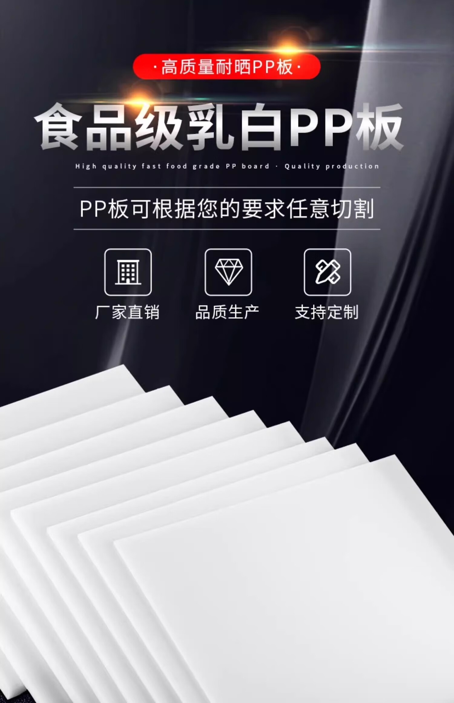白色pp板材聚丙烯塑料硬板防水耐磨隔板猪肉台pe垫板尼龙板加工 2米*1米*8mm