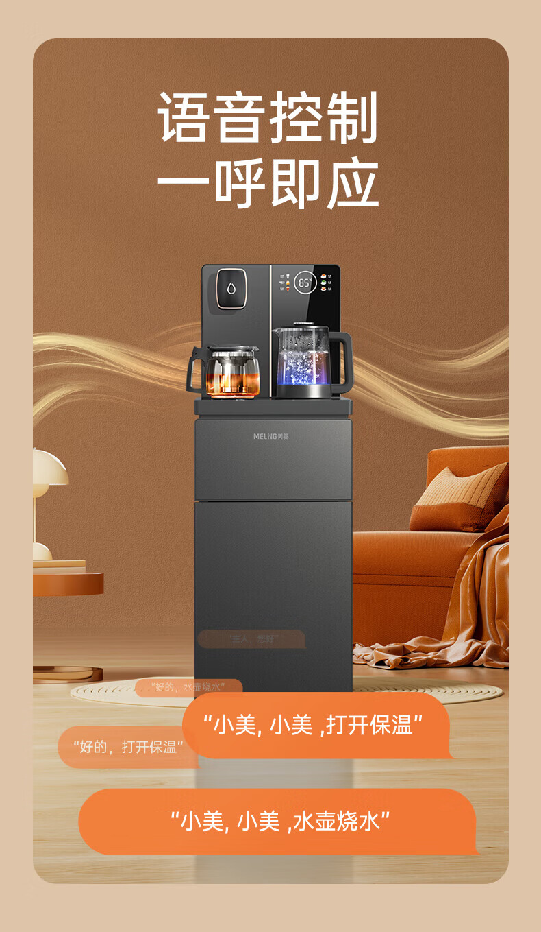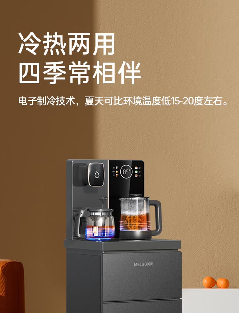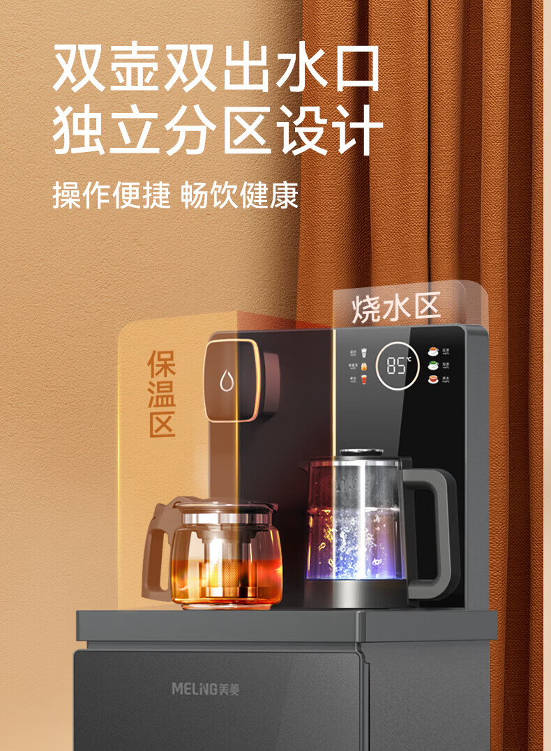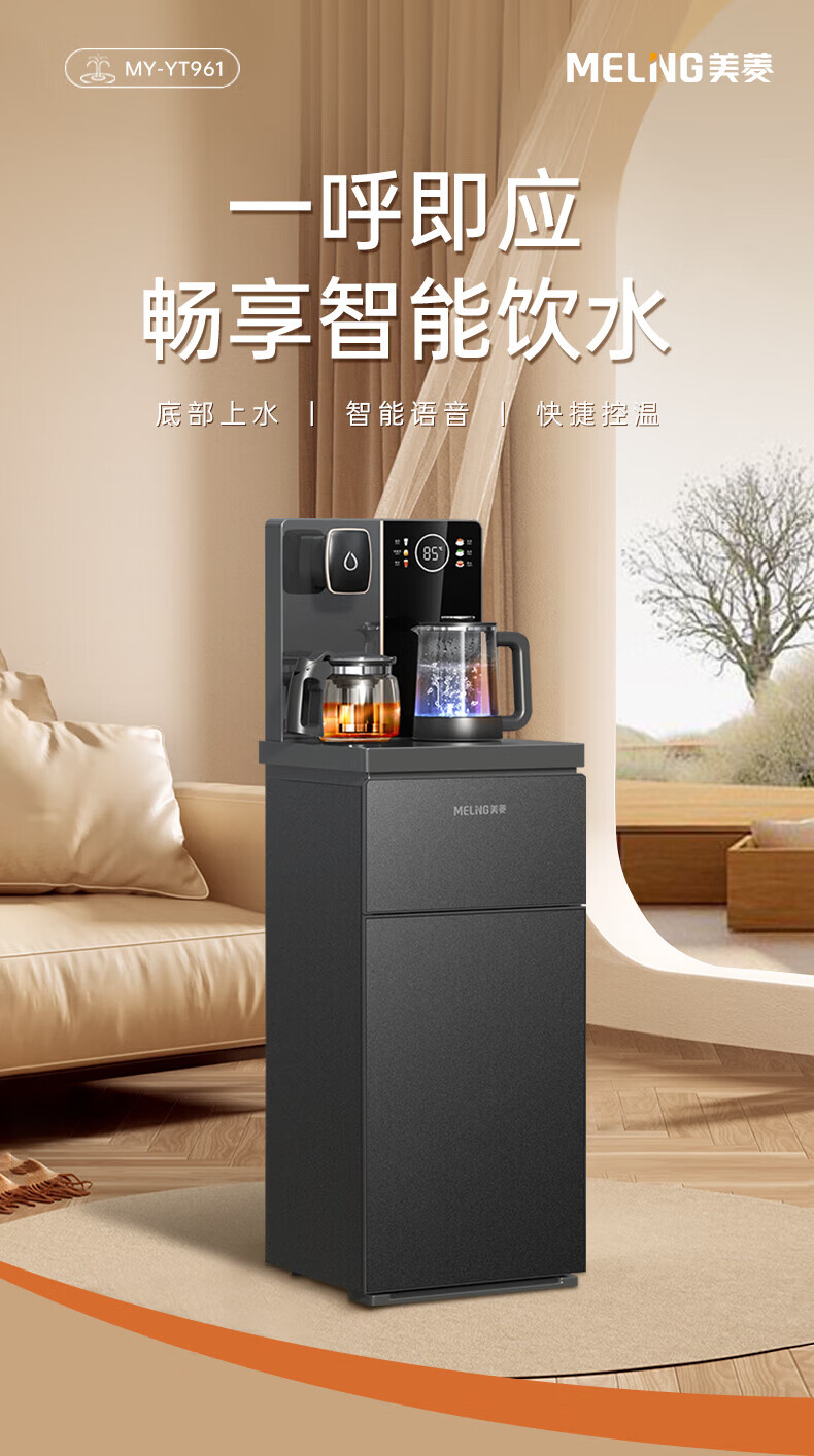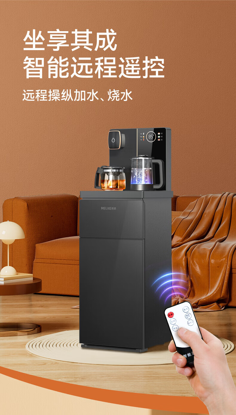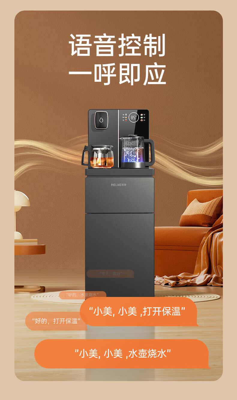 美菱(MeiLing)智能语音茶吧机客厅家用高端立式饮水机 全自动下进水 多功能遥控下置水桶中大型茶吧机一体柜 大箱体+防溢水+语音 制热型