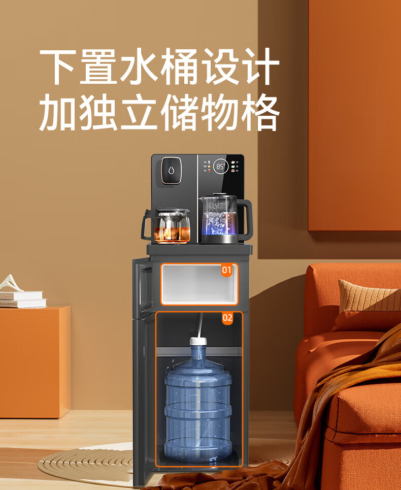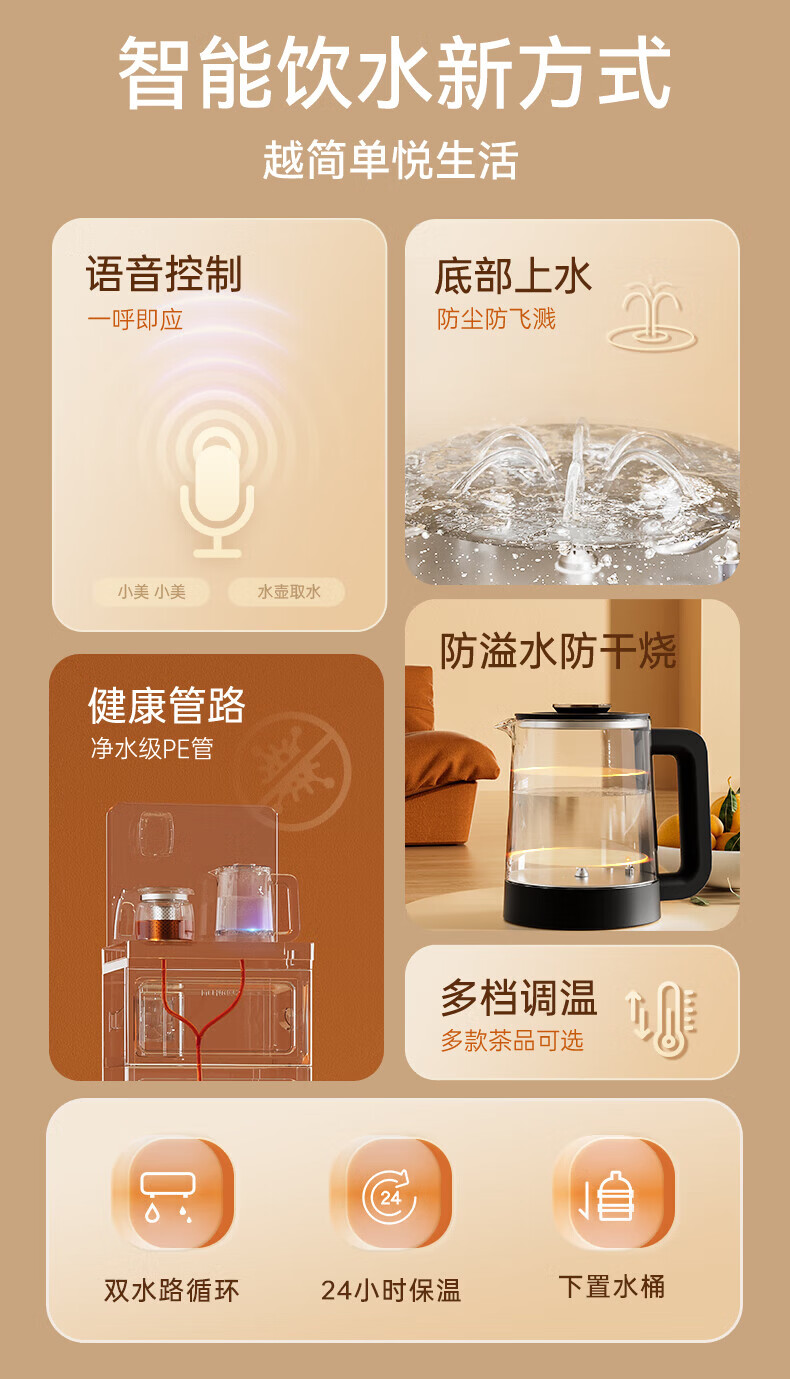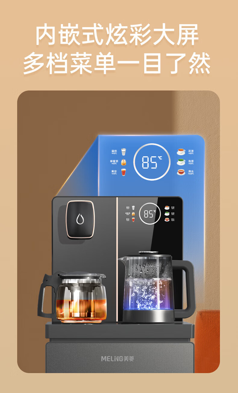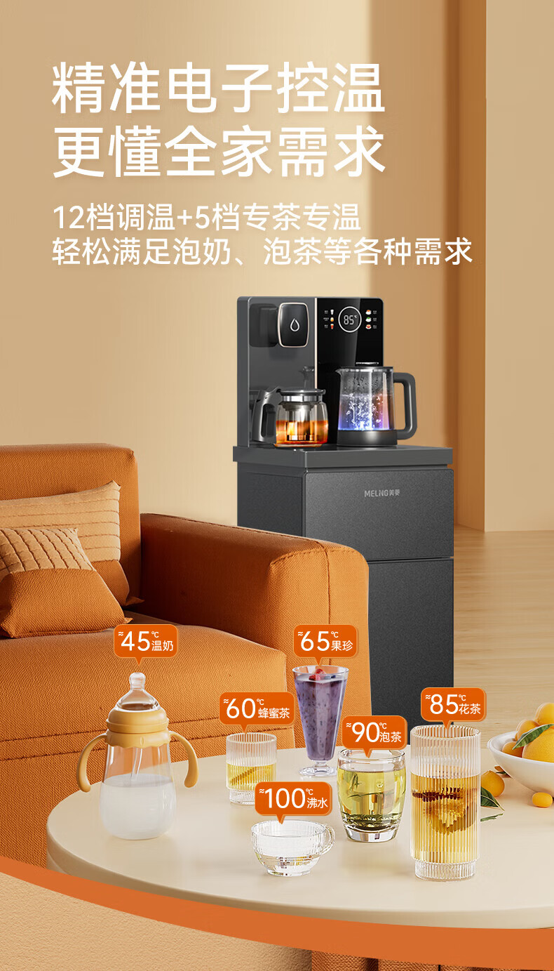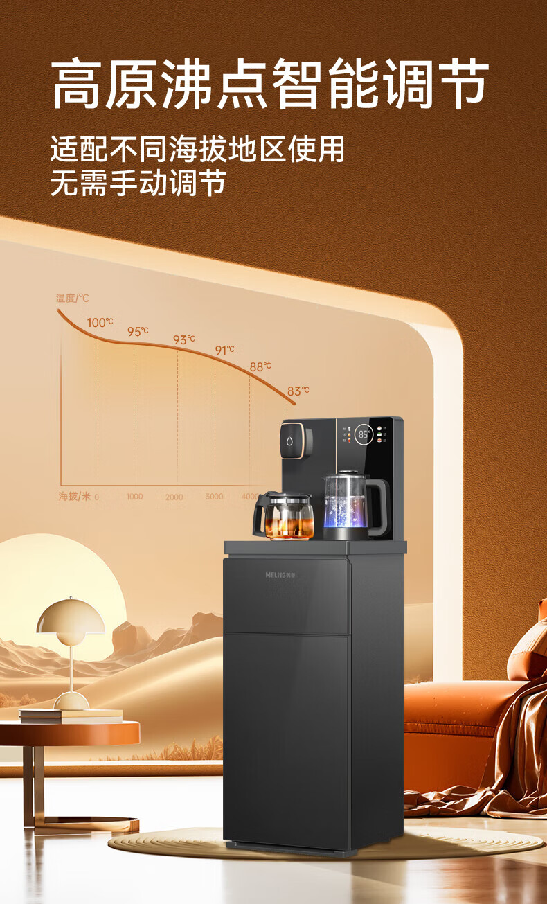 美菱(MeiLing)智能语音茶吧机客厅家用高端立式饮水机 全自动下进水 多功能遥控下置水桶中大型茶吧机一体柜 大箱体+防溢水+语音 制热型