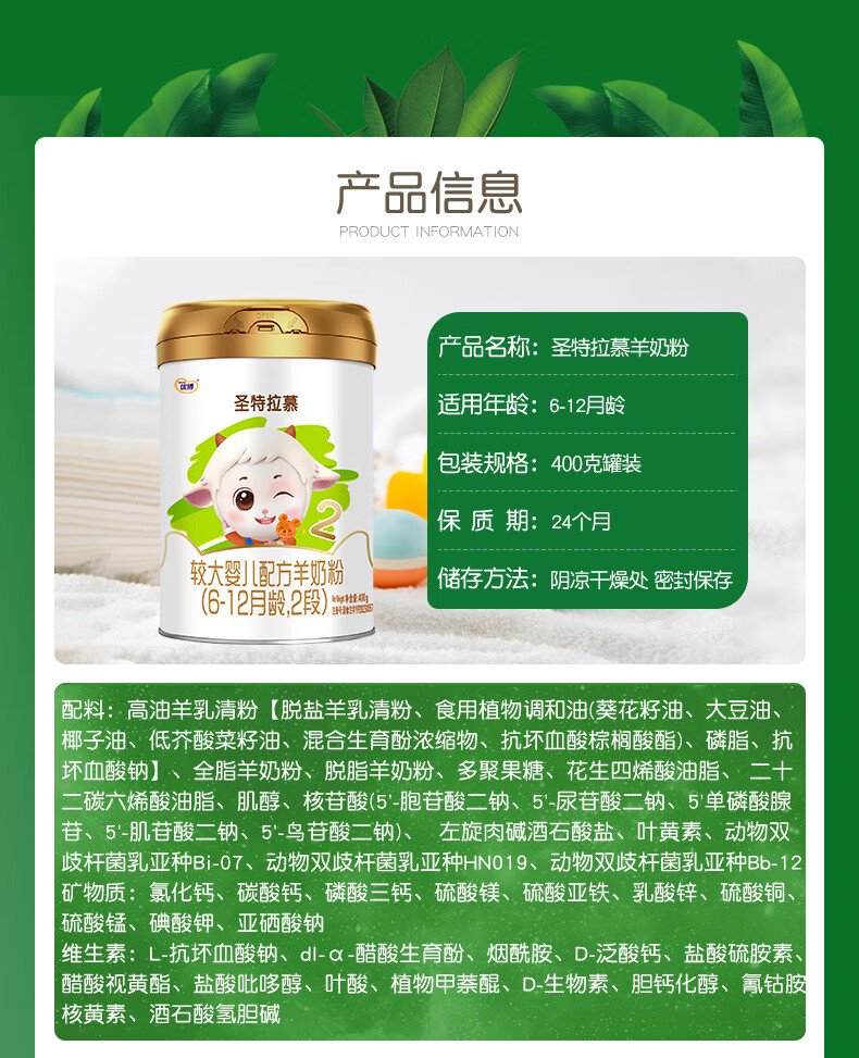 圣元圣特拉慕 【合格ARA】婴儿配方羊奶粉2段400g 6-12个月欧洲奶源 1罐装