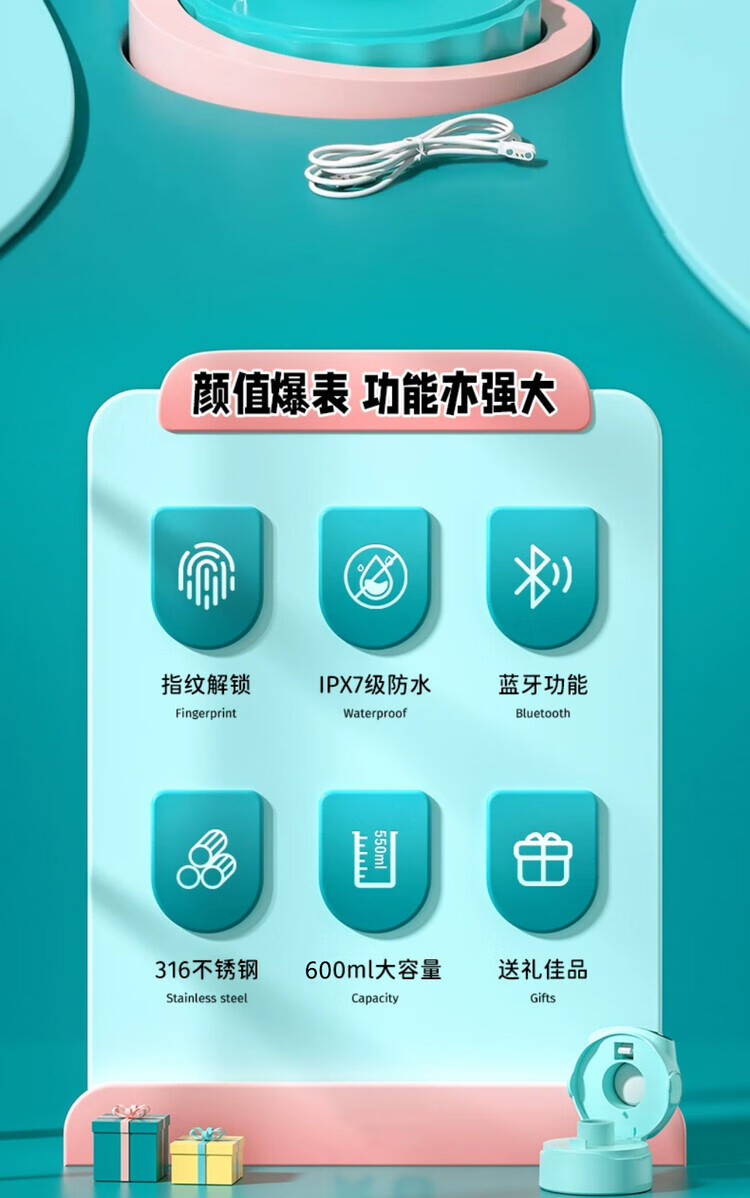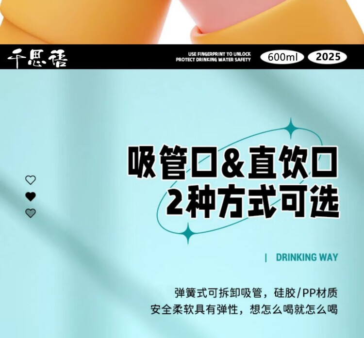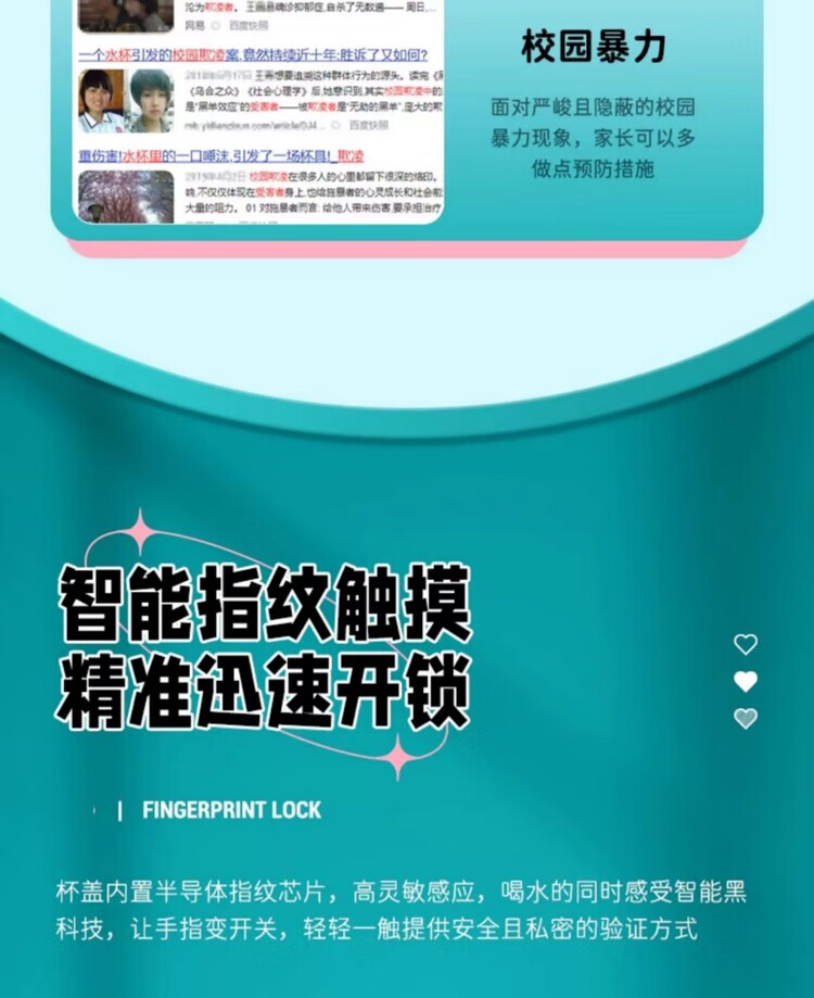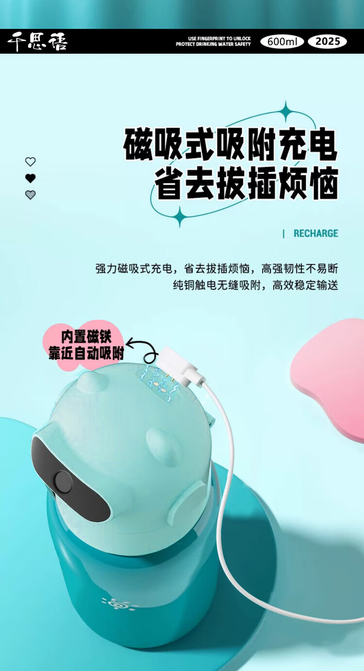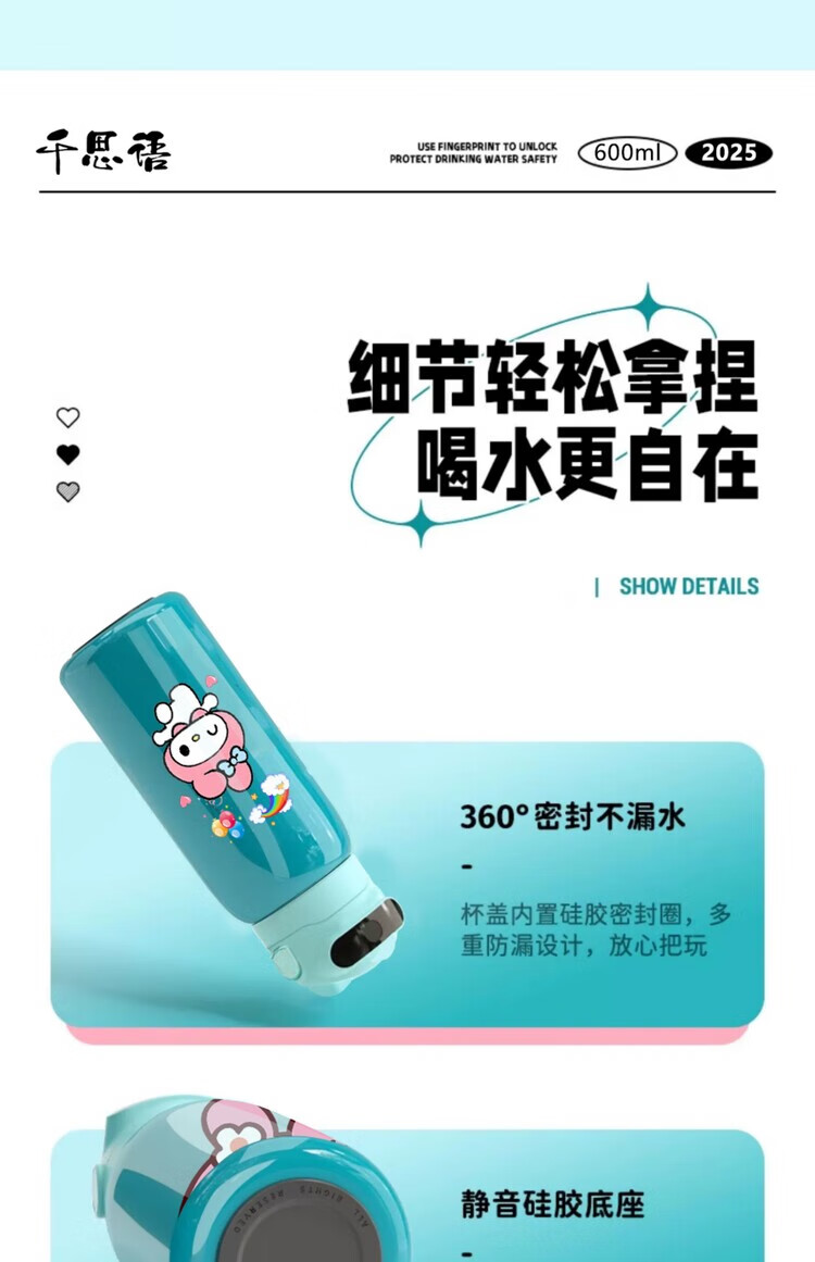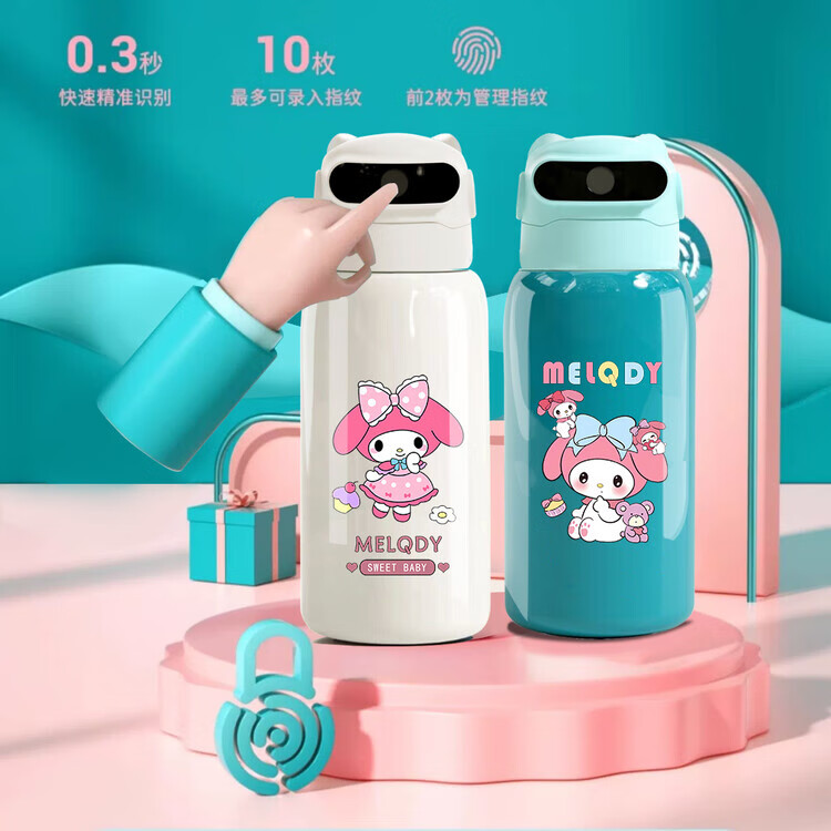 千思语卡通美乐蒂指纹密码解锁保温杯水杯子智能女孩儿童食品级316学生 01粉色指纹保温杯 【焕新升级】