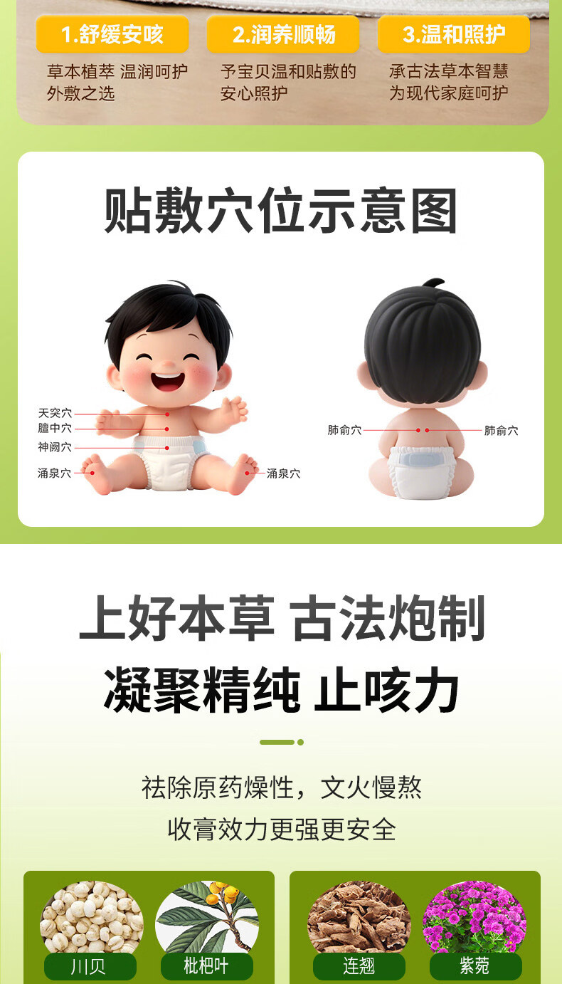 KERLY幼诺星小儿止咳贴【官方】化痰贴咳喘贴咳嗽贴外用中草药穴位贴 三盒装【草本吸收 鼻通】 官方直售