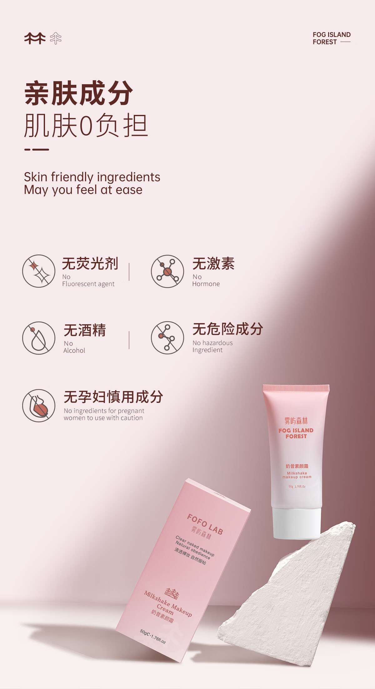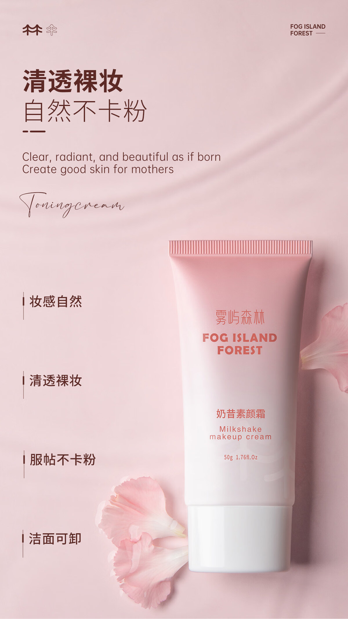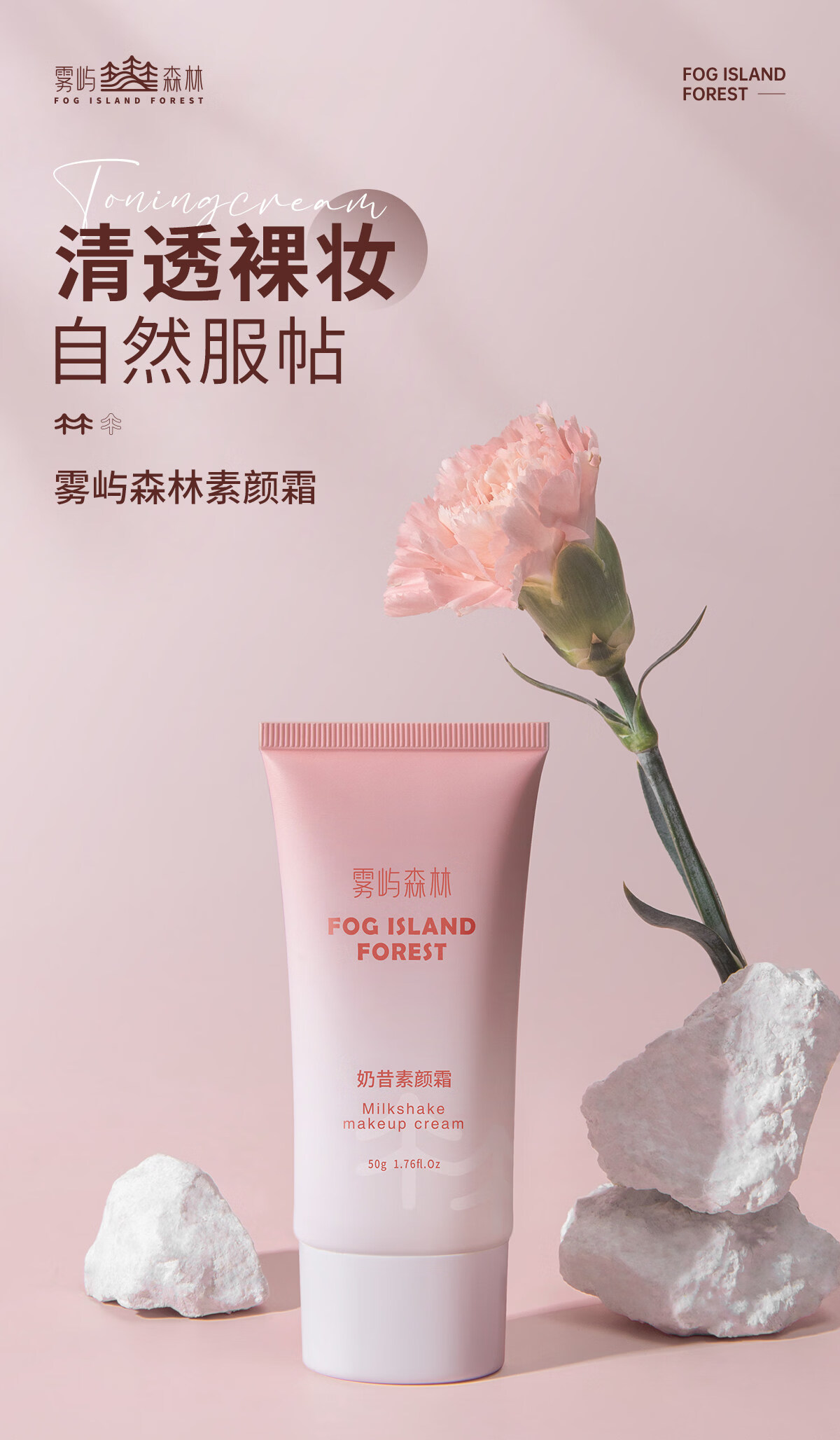 雾屿森林素颜霜森与素颜霜nora素颜霜清透裸妆雾屿森林奶昔素颜霜官方正品 50g单支体验装