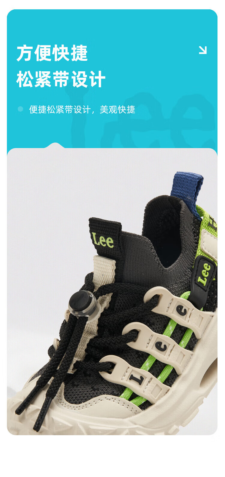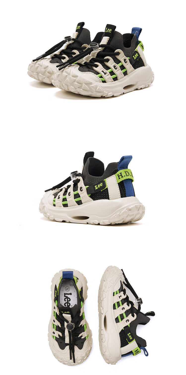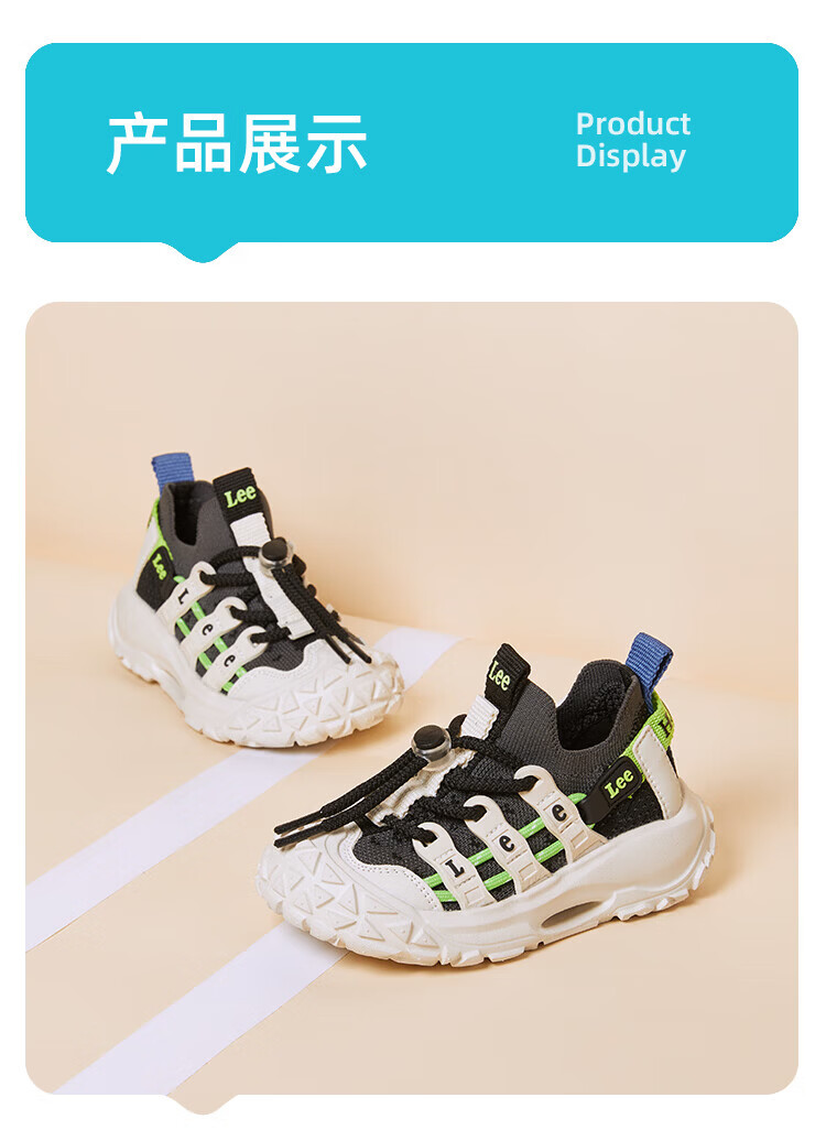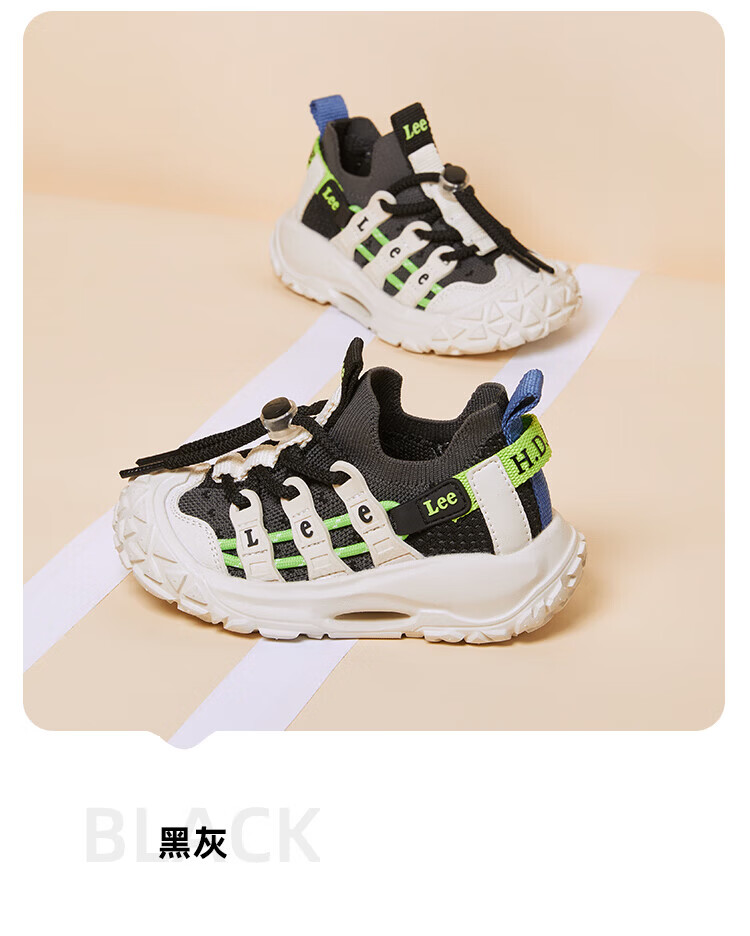 Lee儿童运动鞋透气网面软底防滑户外跑步鞋男女童鞋 黑灰 36 【建议脚长223-228mm】
