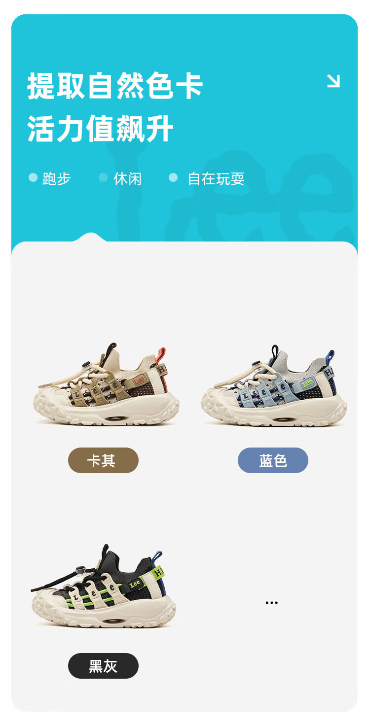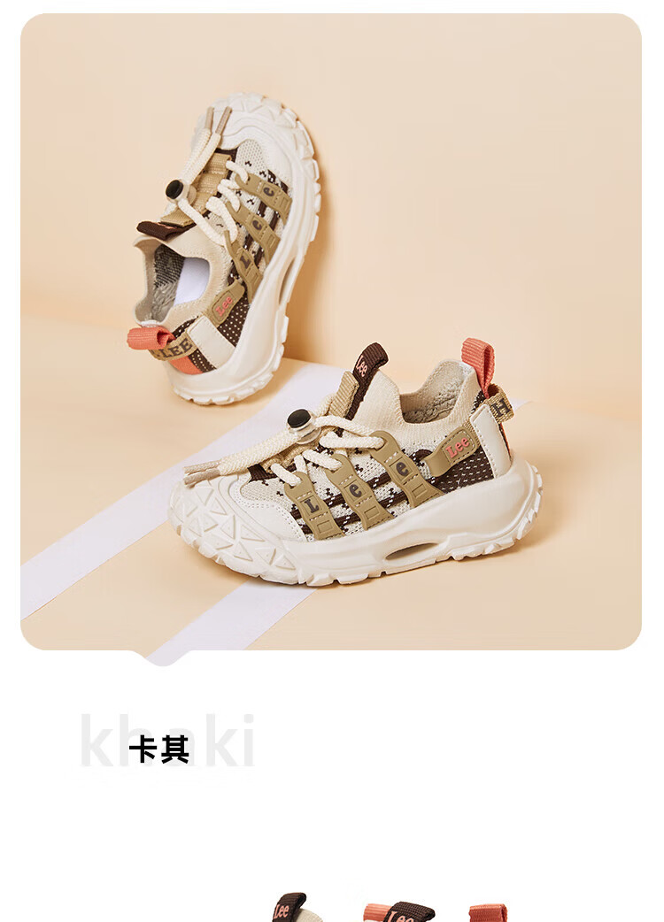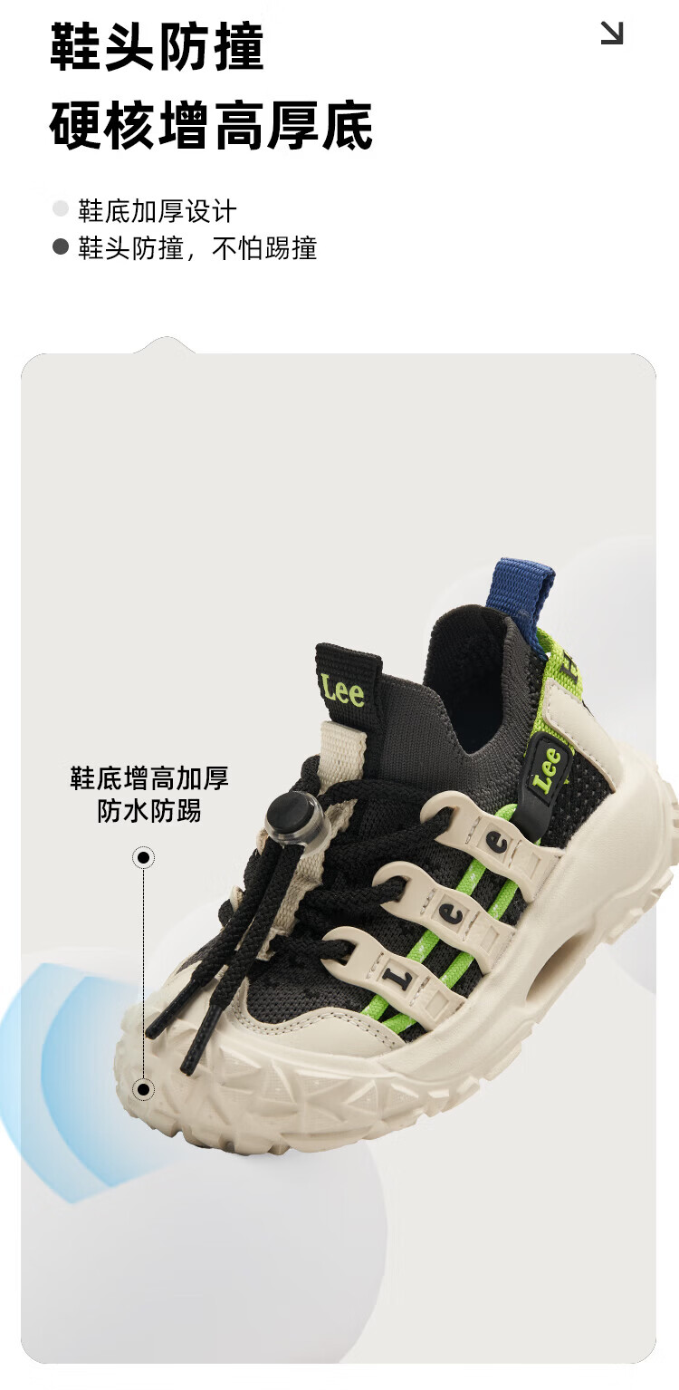 Lee儿童运动鞋透气网面软底防滑户外跑步鞋男女童鞋 黑灰 36 【建议脚长223-228mm】