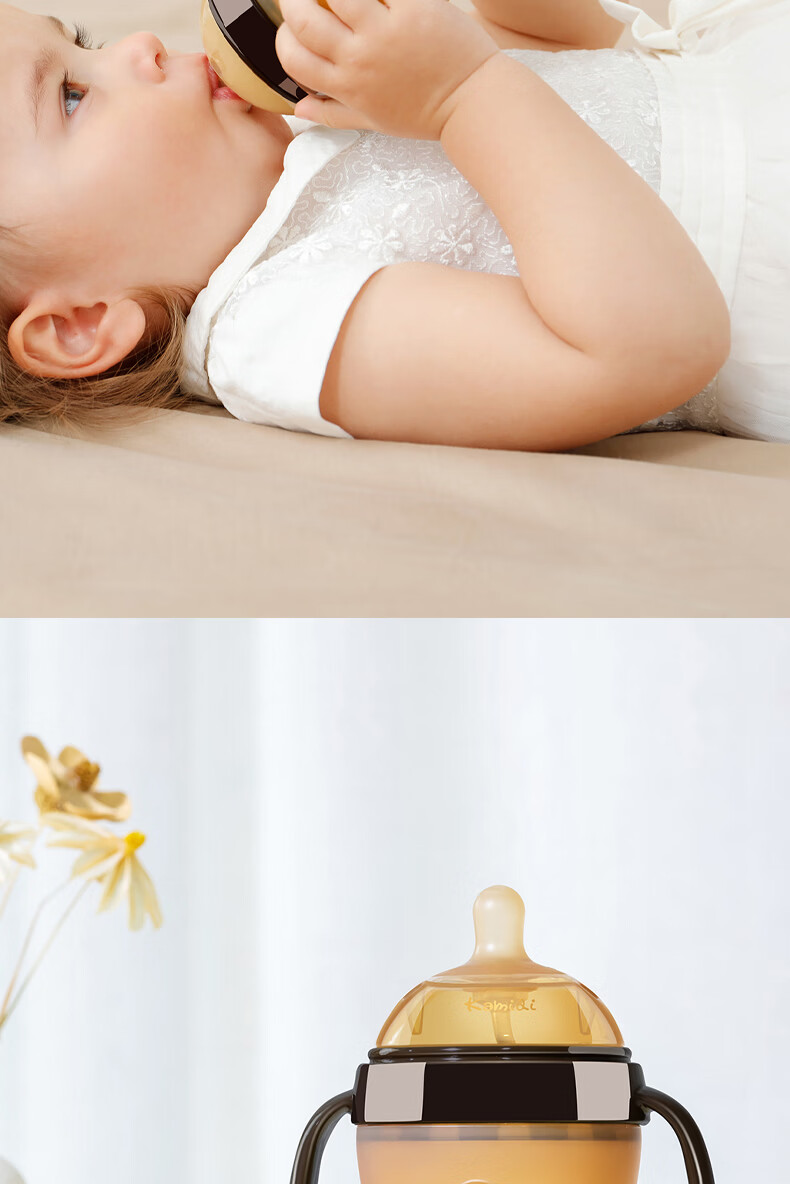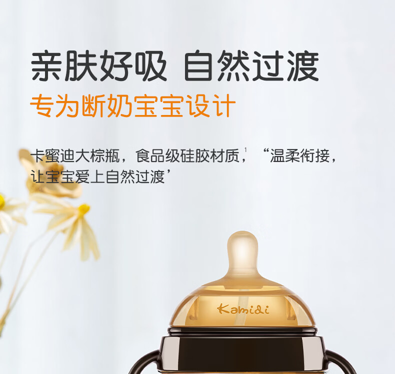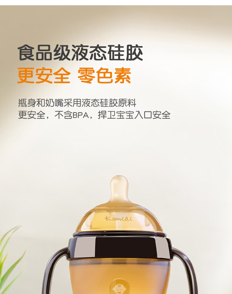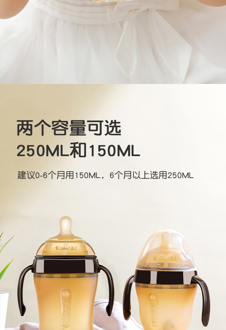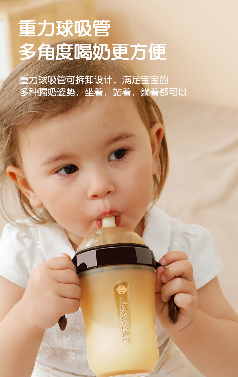 kamidi断奶奶瓶仿母乳硅胶奶瓶新生儿吸管奶瓶防胀气耐摔戒奶奶瓶 250ML【3孔+Y孔】 5月以上