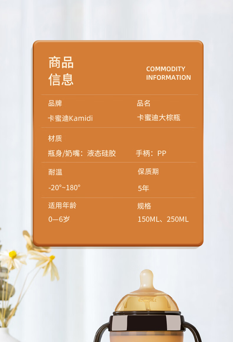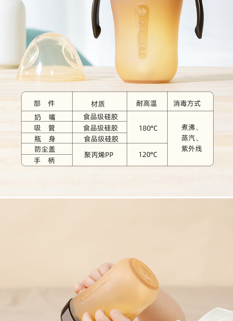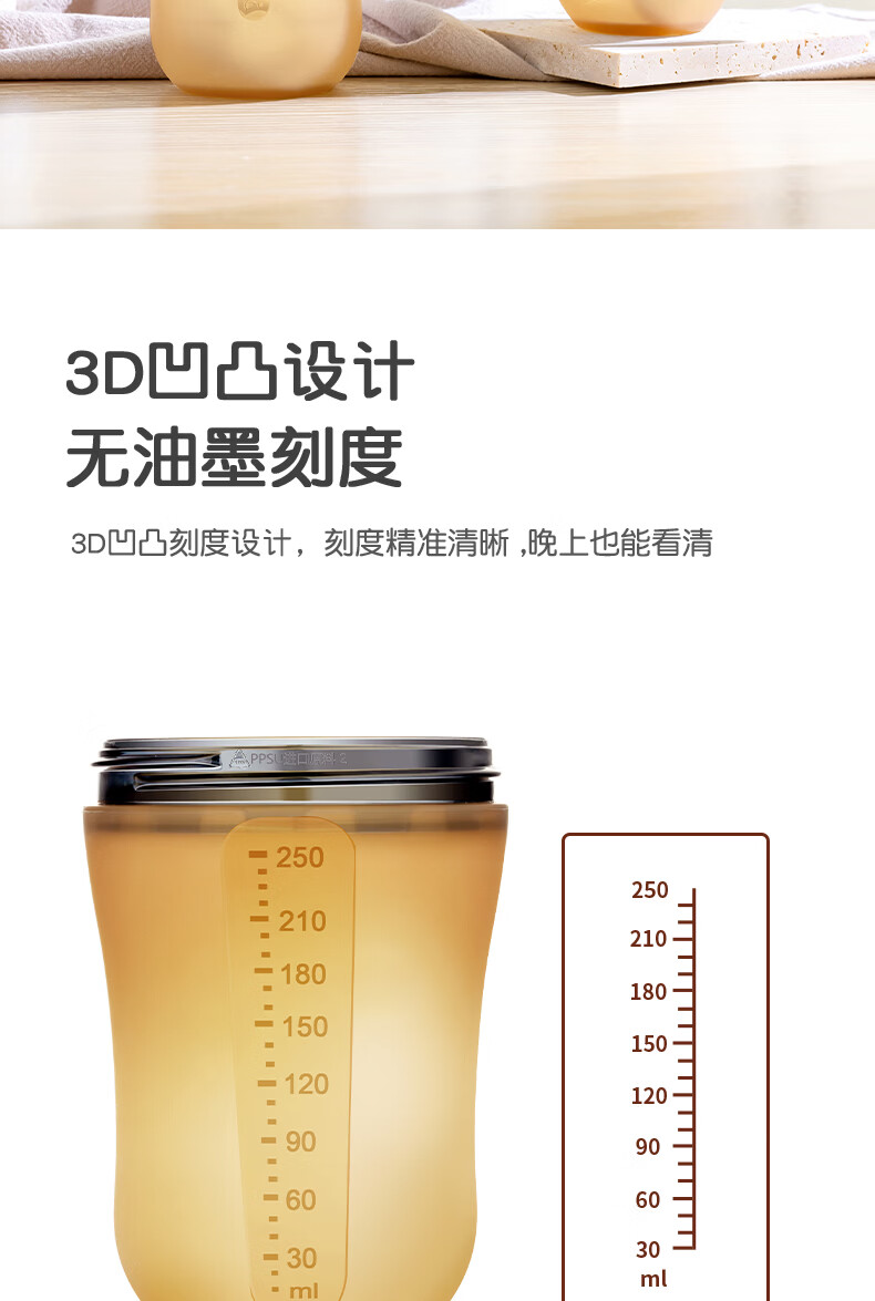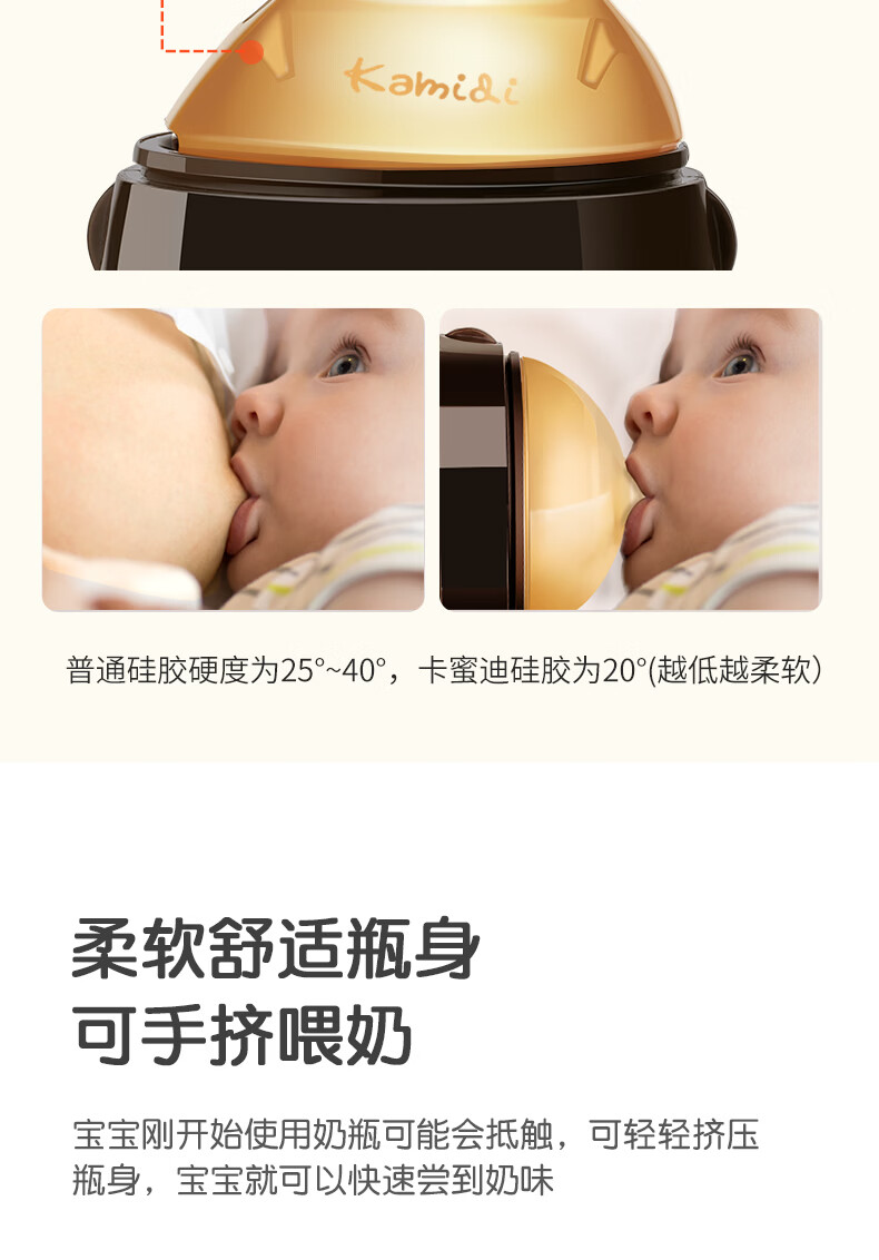 kamidi断奶奶瓶仿母乳硅胶奶瓶新生儿吸管奶瓶防胀气耐摔戒奶奶瓶 250ML【3孔+Y孔】 5月以上