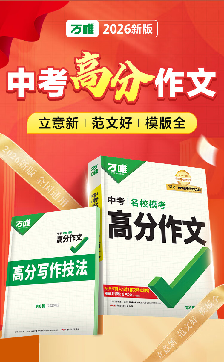 万唯中考满分高分作文2026版初中作文素材大全范文精选七年级八九年级专项训练同步人教写作技巧万维中考 【2026新版】真题作文【语文+英语】