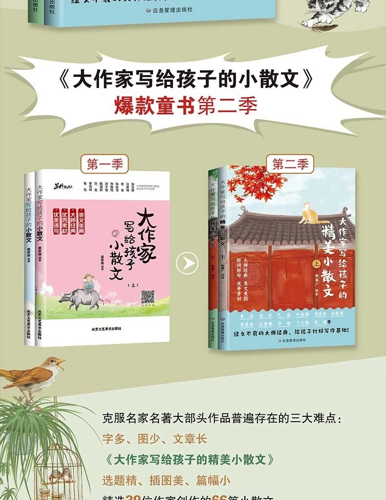 【一二三季任选】大作家写给孩子的精美小散文 全套4册任选 彩色插画版 附赠有声伴读 大师名篇名作提升语文作文水平 大作家写给孩子的经典小散文正版 应急管理出版社 赵集广 著 【一二季】大作家写给孩子的