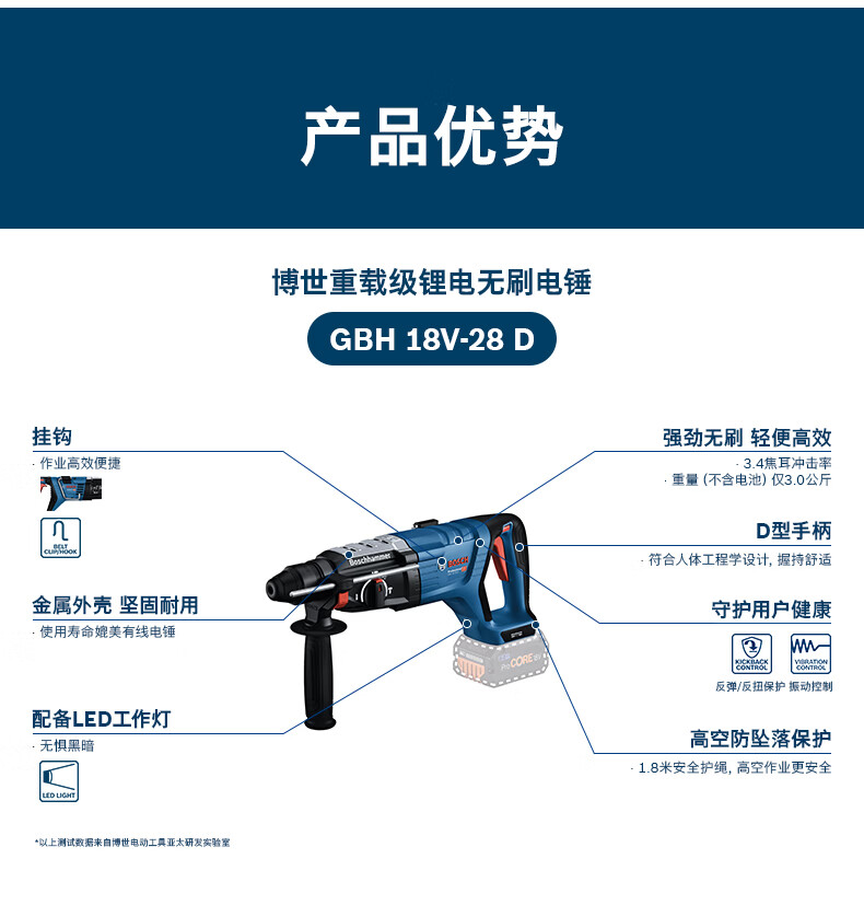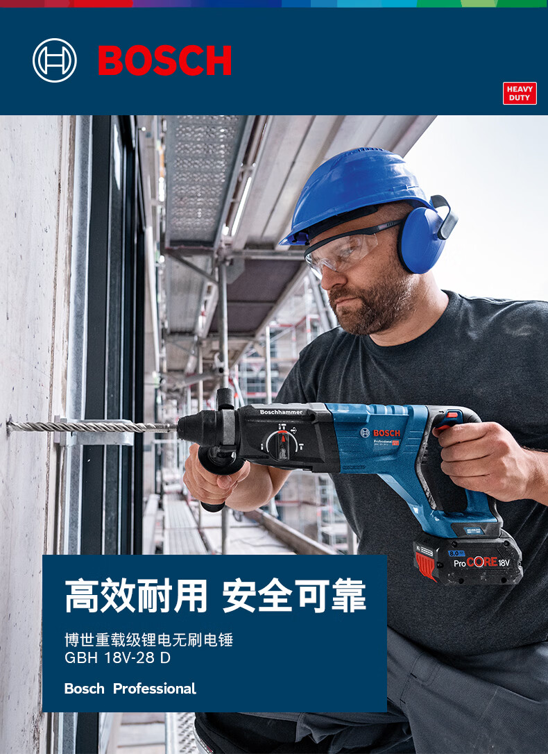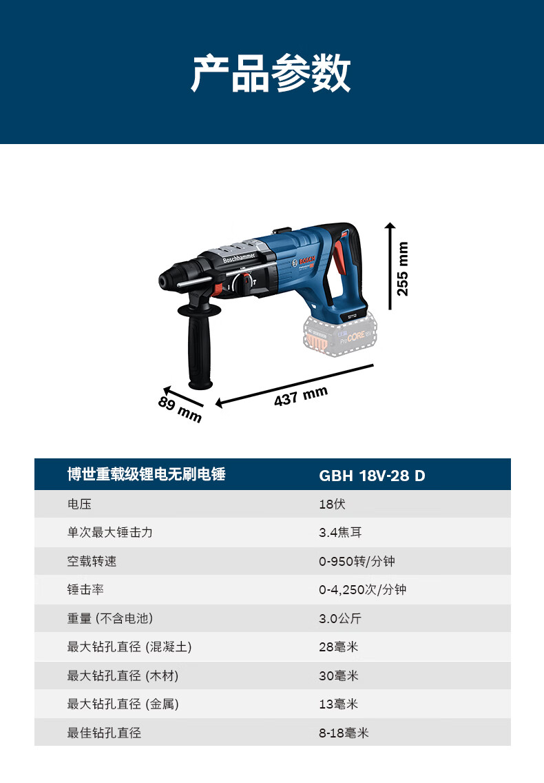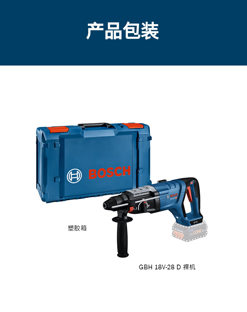 博世(BOSCH)GBH 18V-28 D重载级锂电无刷电锤混凝土轻便高效大功率反扭保护 官方标配