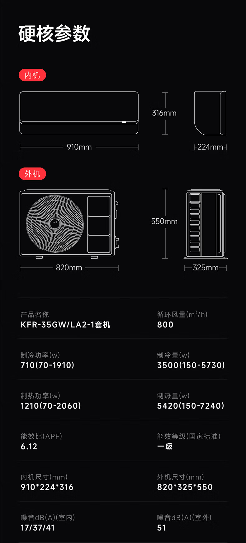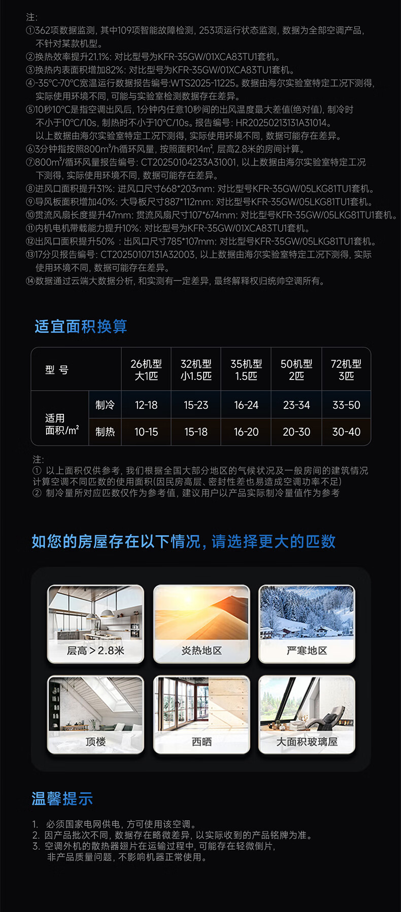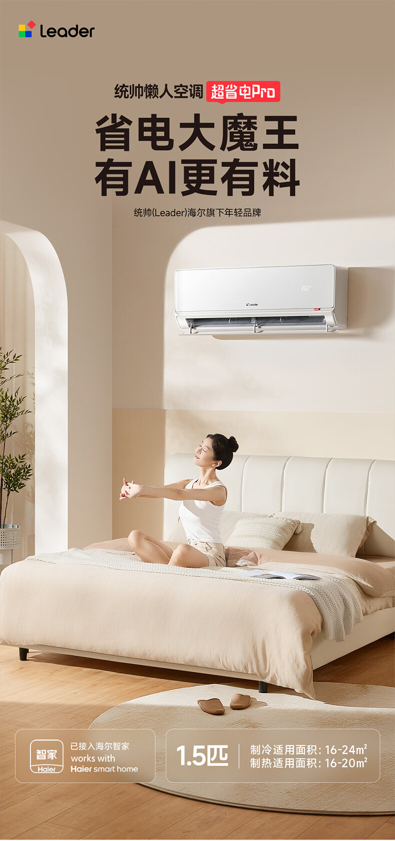 海尔统帅空调 超省电Pro神机 大1.5匹超一级 大双排铜管变频冷暖挂式挂机 国家补贴KFR-35GW/LA2-1