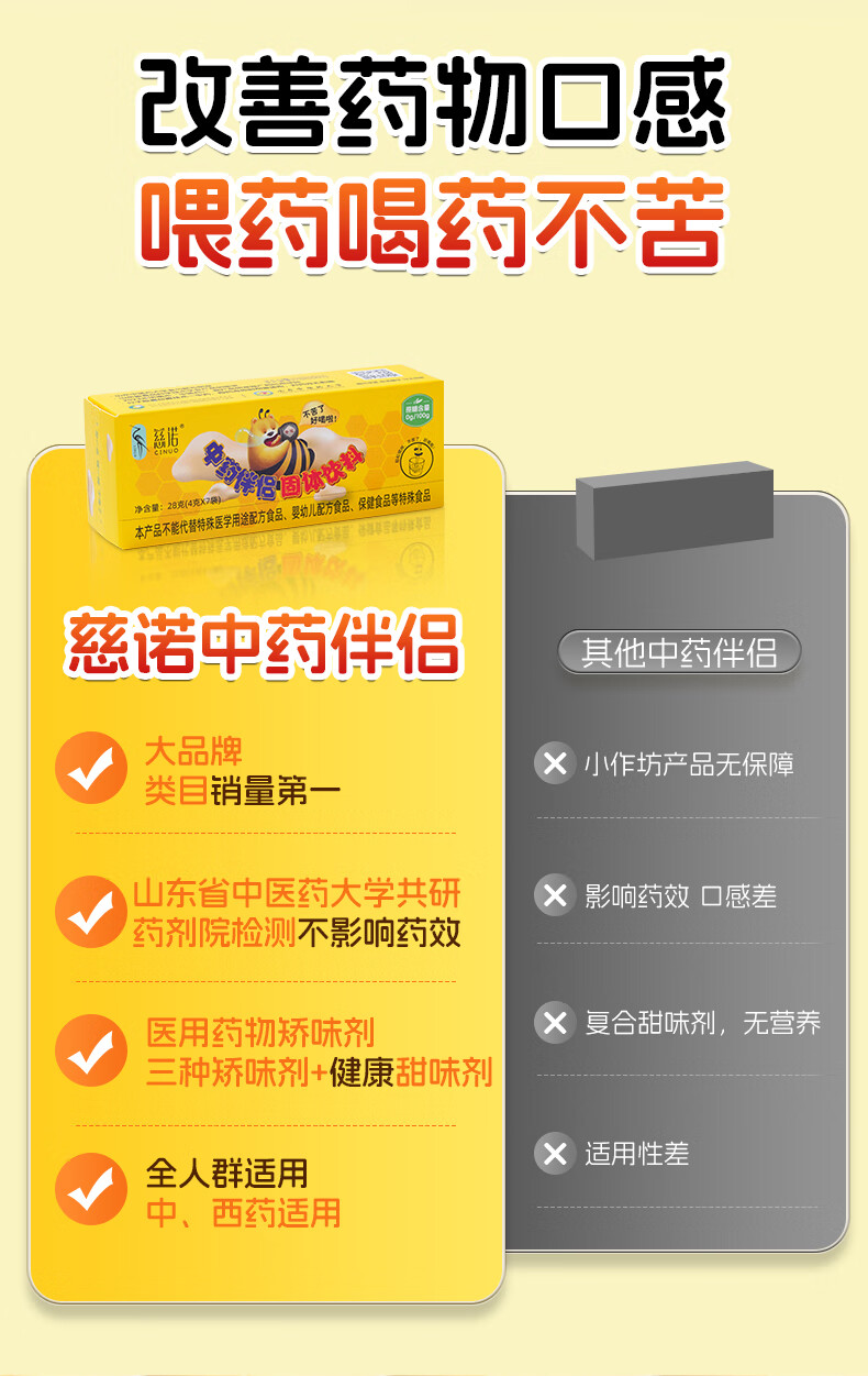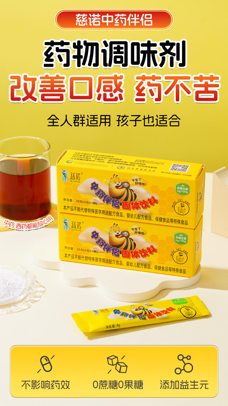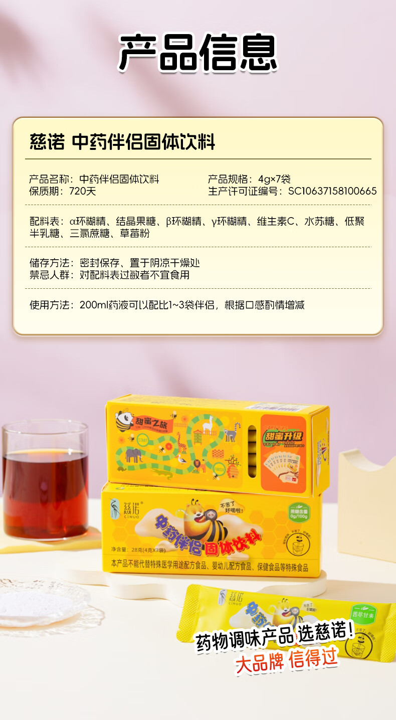 慈诺中药伴侣顺丰空运包邮宝宝儿童喝药神器不影响药效中西药适用 1盒 4g*7袋 +1袋试用装