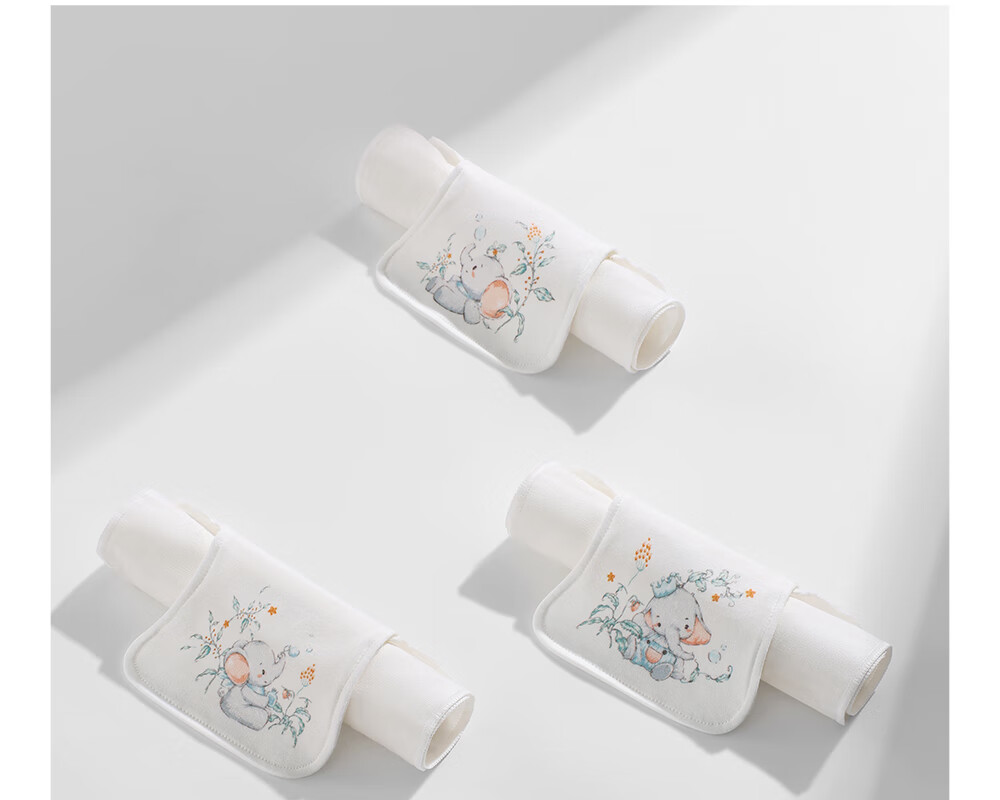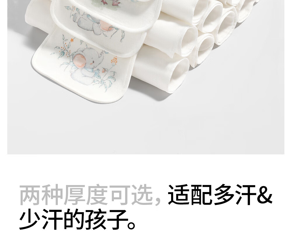 贝肽斯隔汗巾幼儿园专用纯棉a类婴幼儿宝宝吸汗巾大号3-6岁儿童垫背巾 寻间小象 3条装 【轻薄4层 7A抗菌】 S【28×19cm】