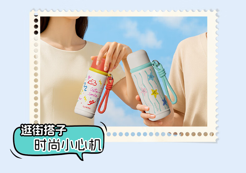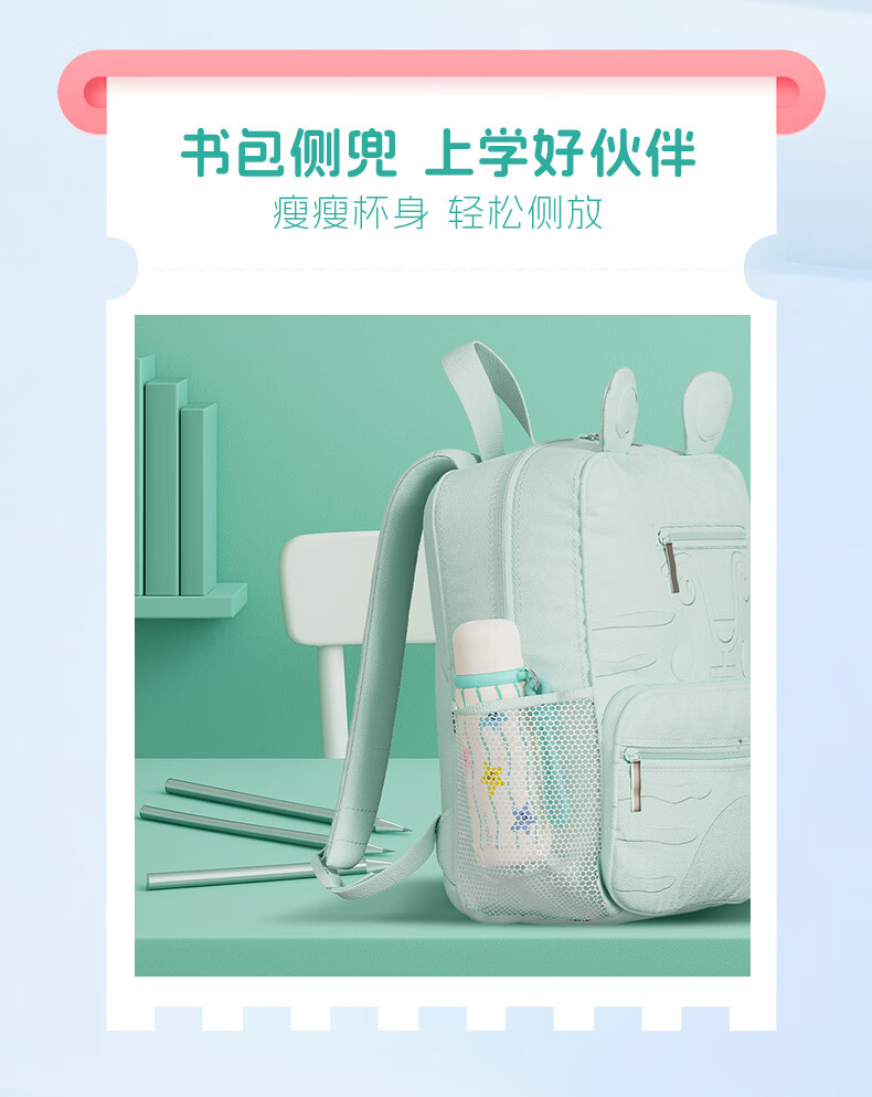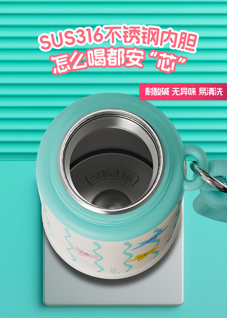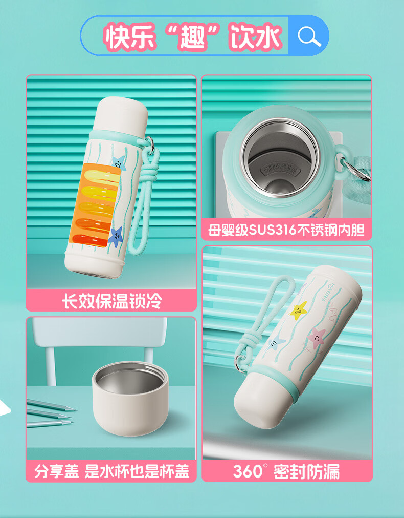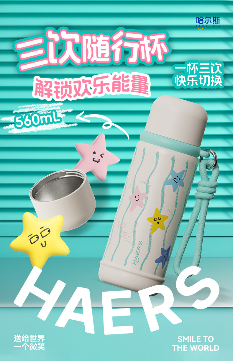 哈尔斯(HAERS)保温杯儿童6-12岁上学专用女生高颜值水杯吸管杯316L三饮水壶提绳