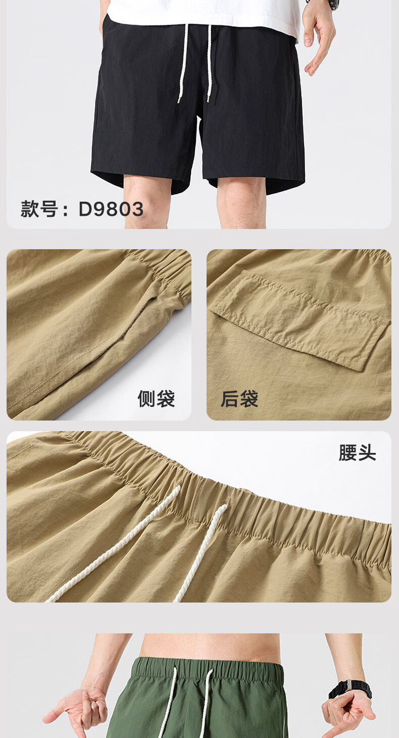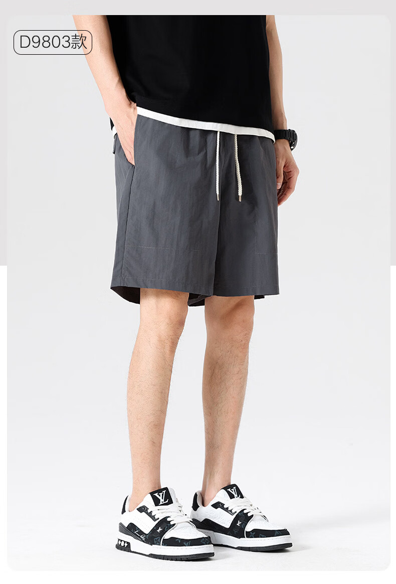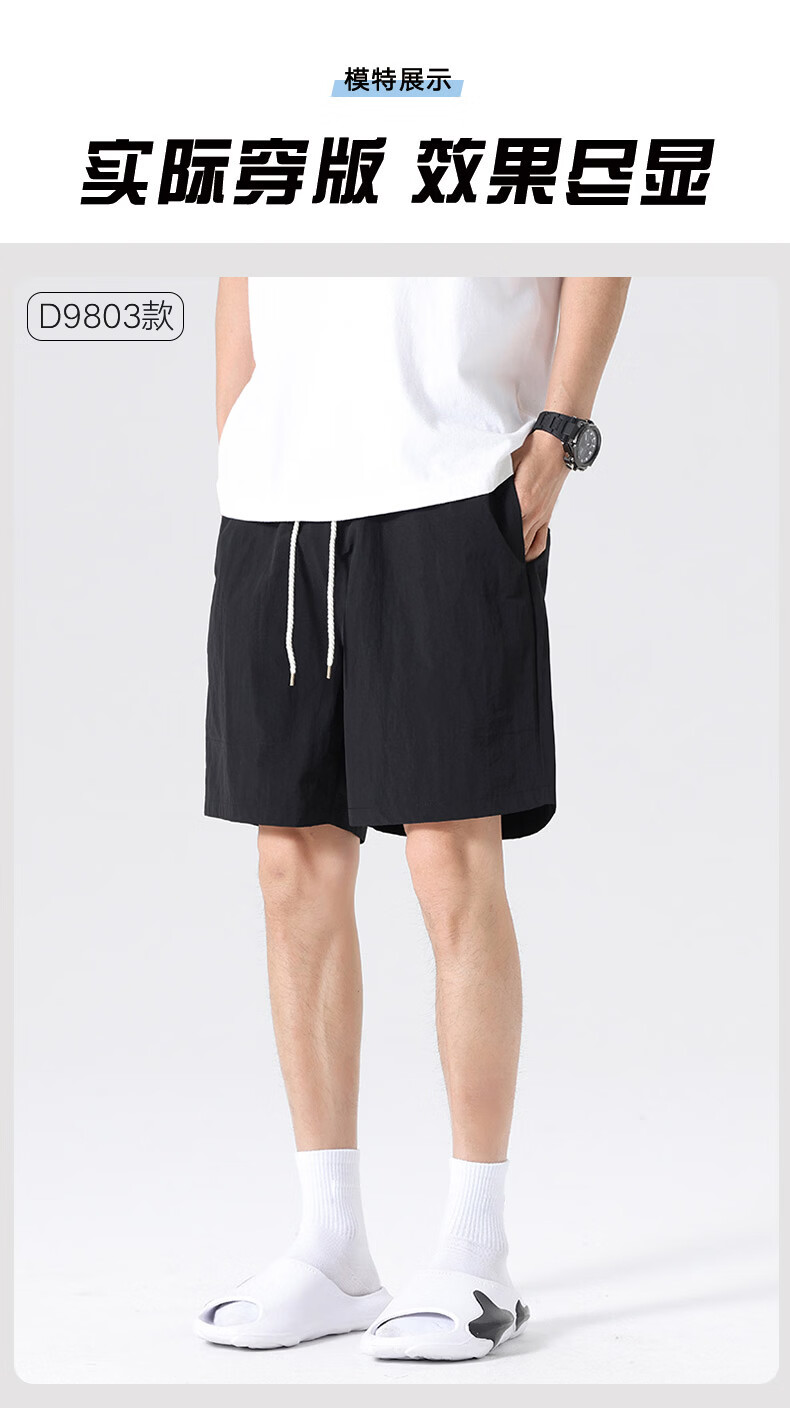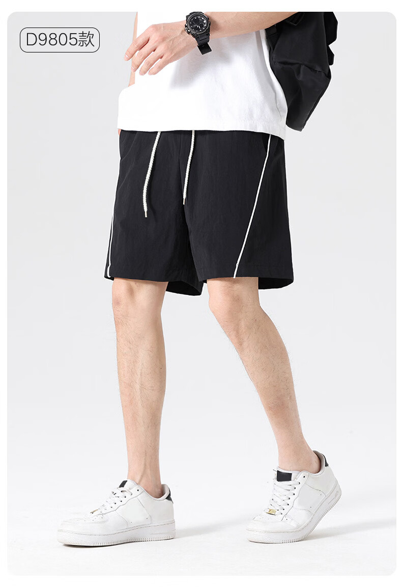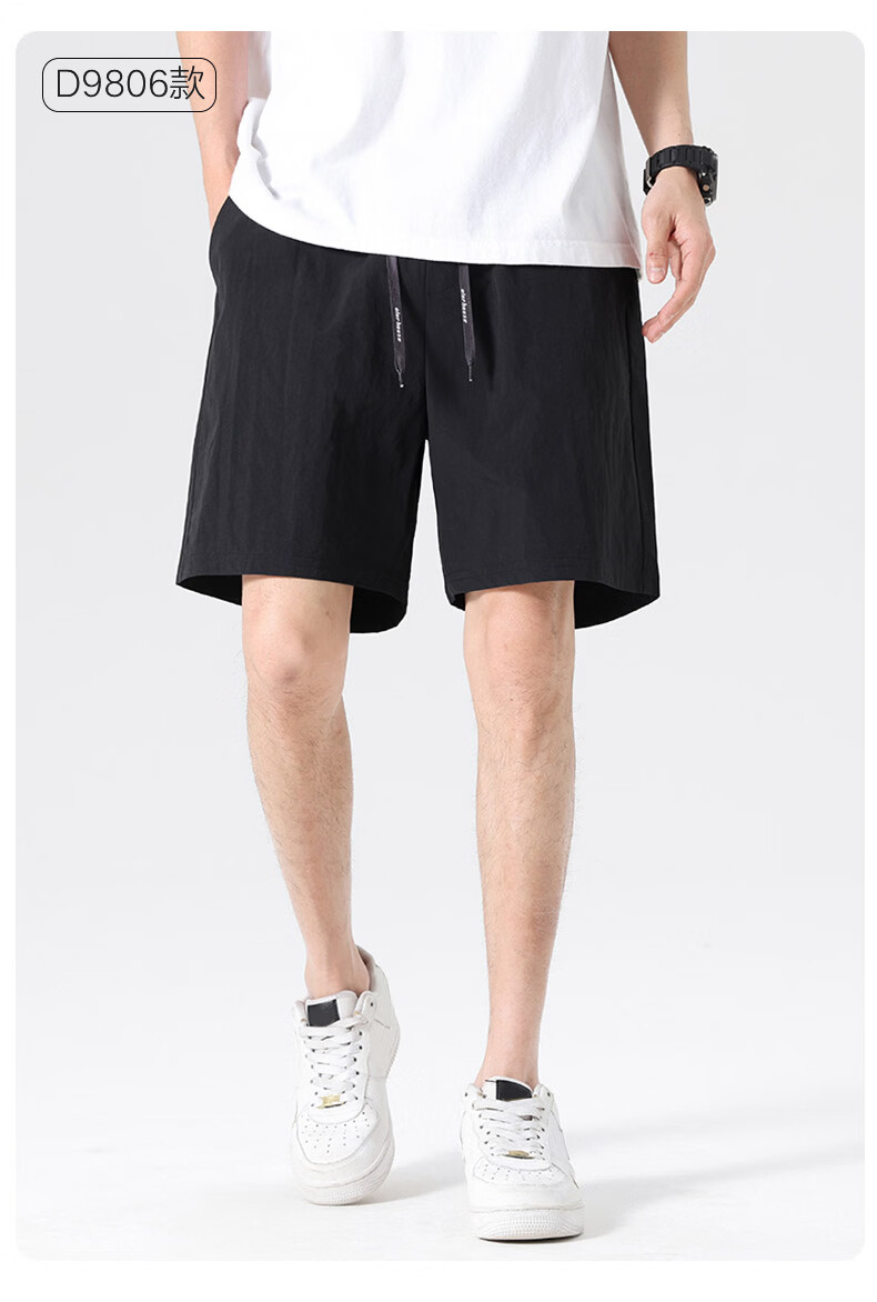 【京东直采】2026夏季新款宽松休闲裤男士直筒裤纯色百搭短裤 9805黑色 常规 XL