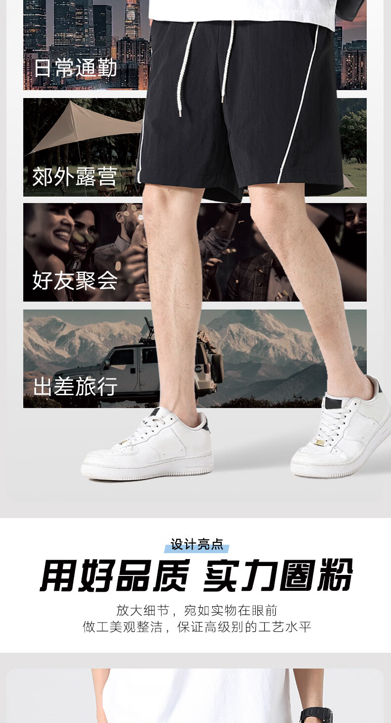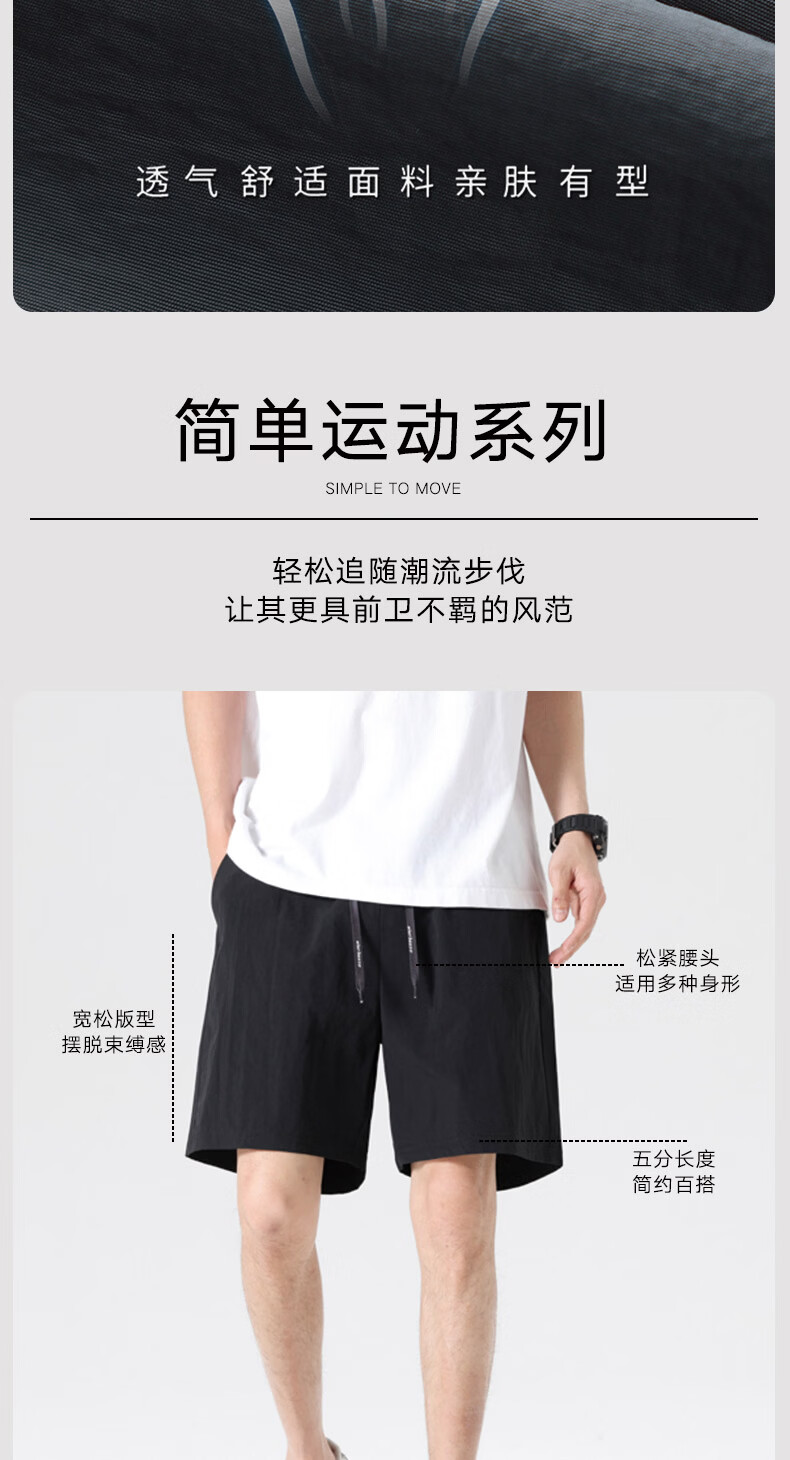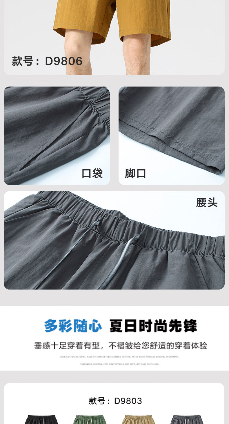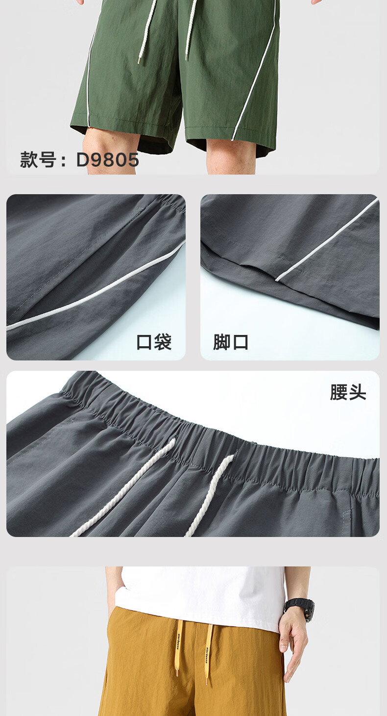 【京东直采】2026夏季新款宽松休闲裤男士直筒裤纯色百搭短裤 9805黑色 常规 XL