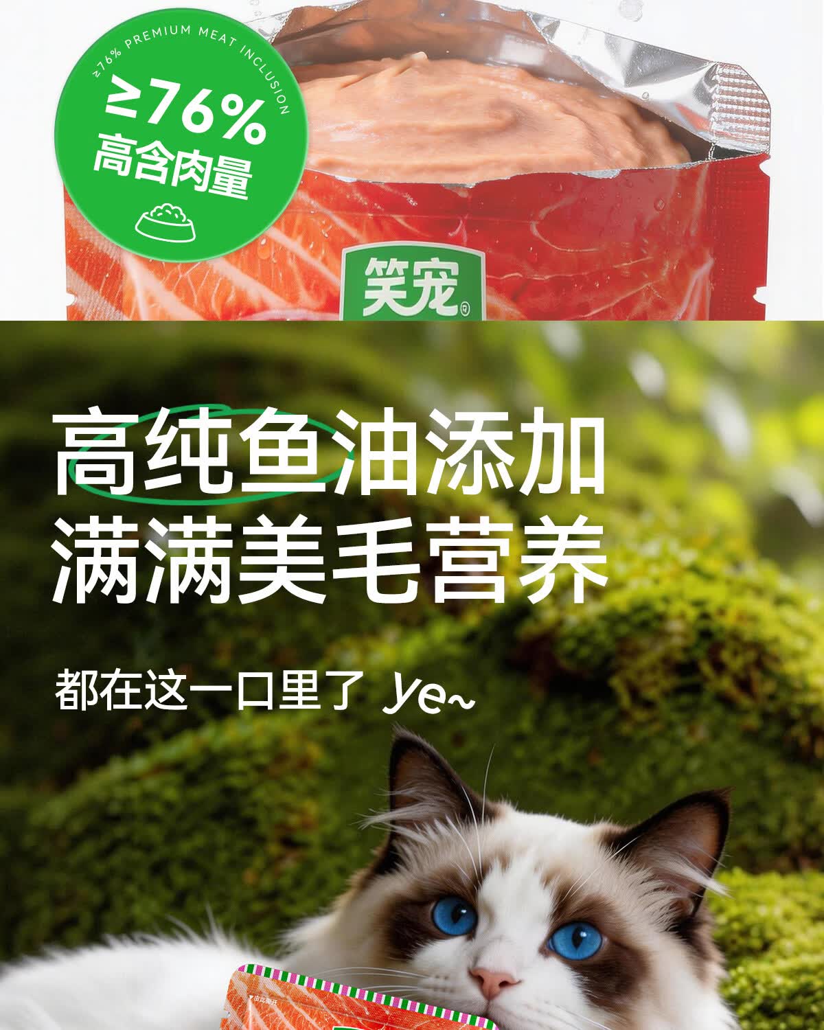 萌宝欢 猫粮 鸡肉 三文鱼 鱼油全价全阶段通用猫粮 高肉亮毛护肠 2.5kg*1【单袋装】