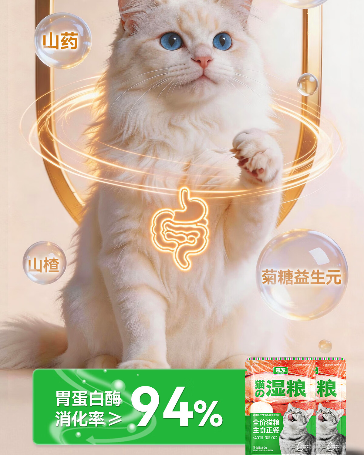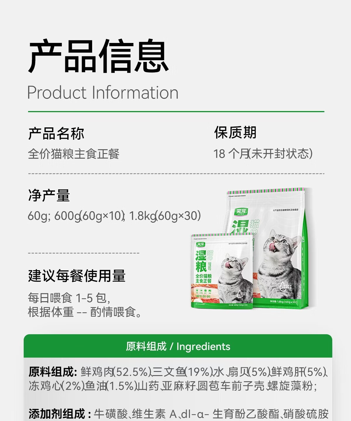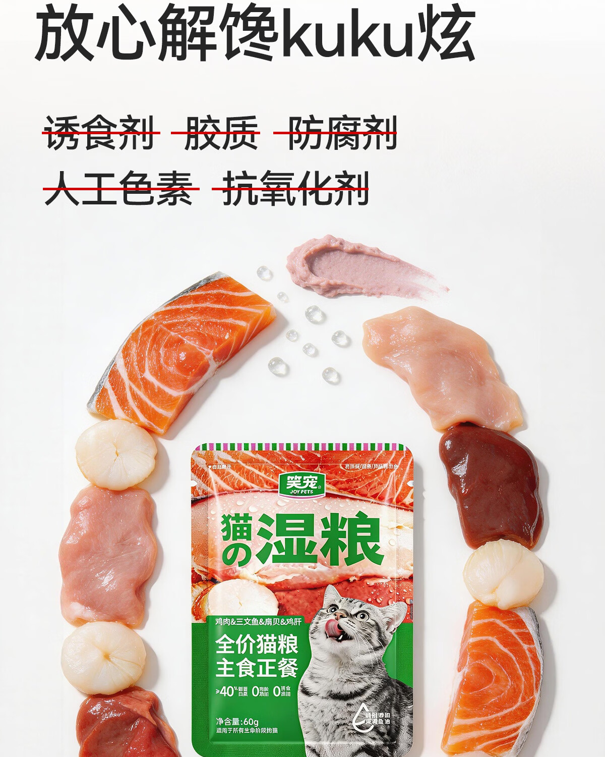 笑宠湿粮包餐包全价猫粮主食正餐猫罐头主食猫条猫饭补水营养 60g*10包【每日喂养 代替干粮】