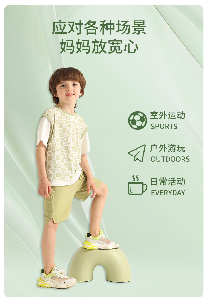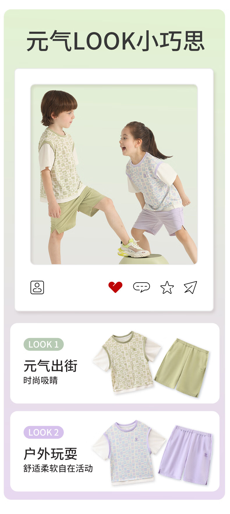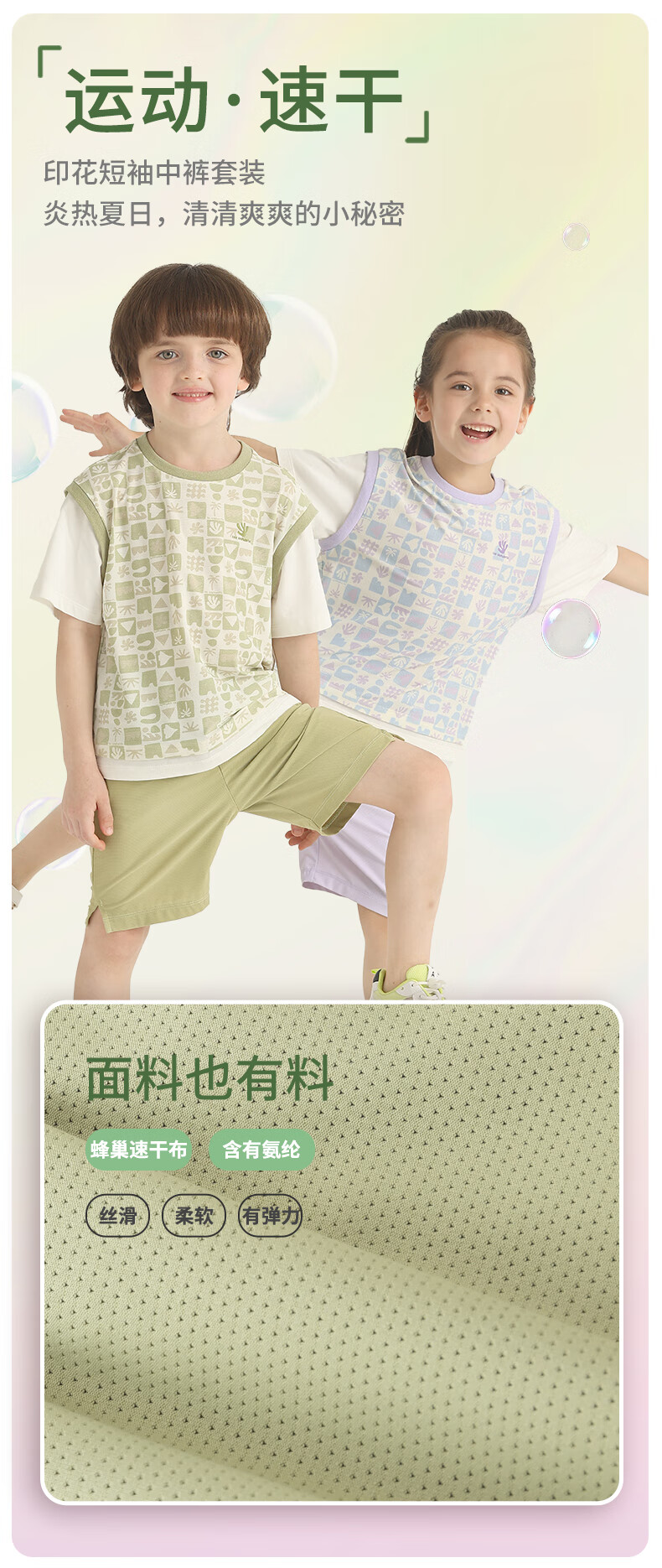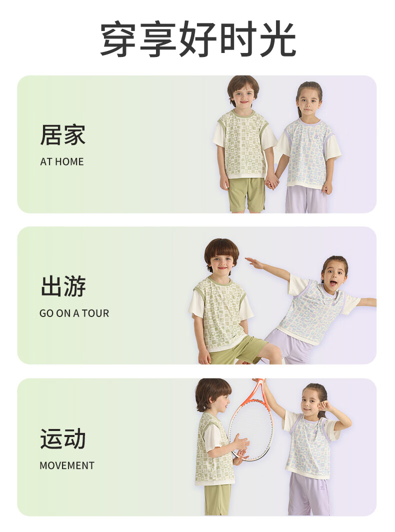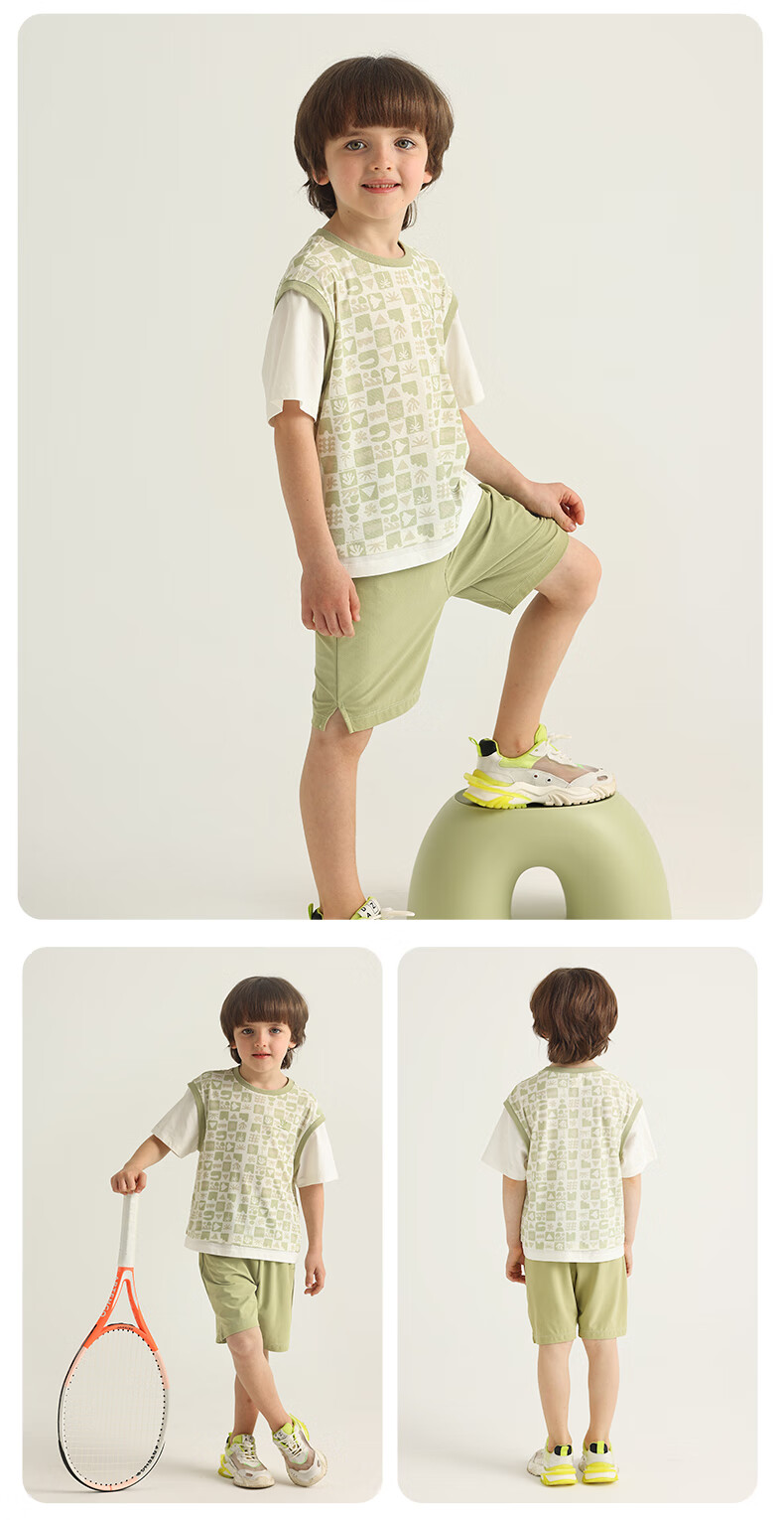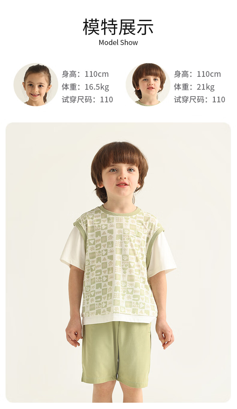 丽婴房儿童运动短袖套装印花速干假两件短袖中裤套装儿童套装 三色堇紫 110 cm