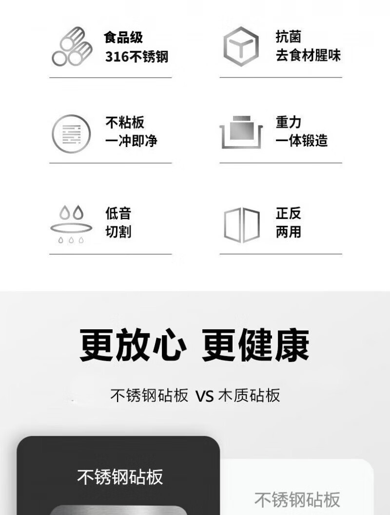 Lovefamily德国菜板316不锈钢切菜板案板抗菌防霉家用食品级水果加厚砧板 【食品级316】60*49cm【超大号】 方形