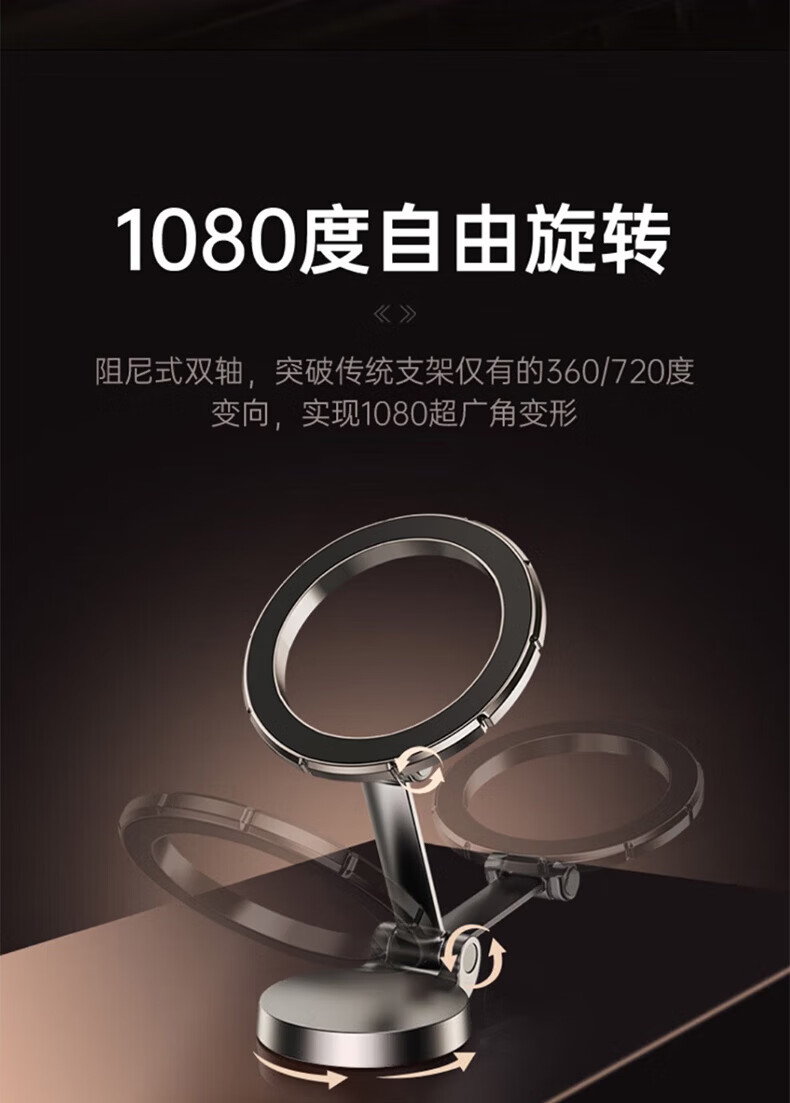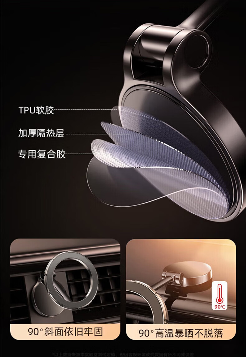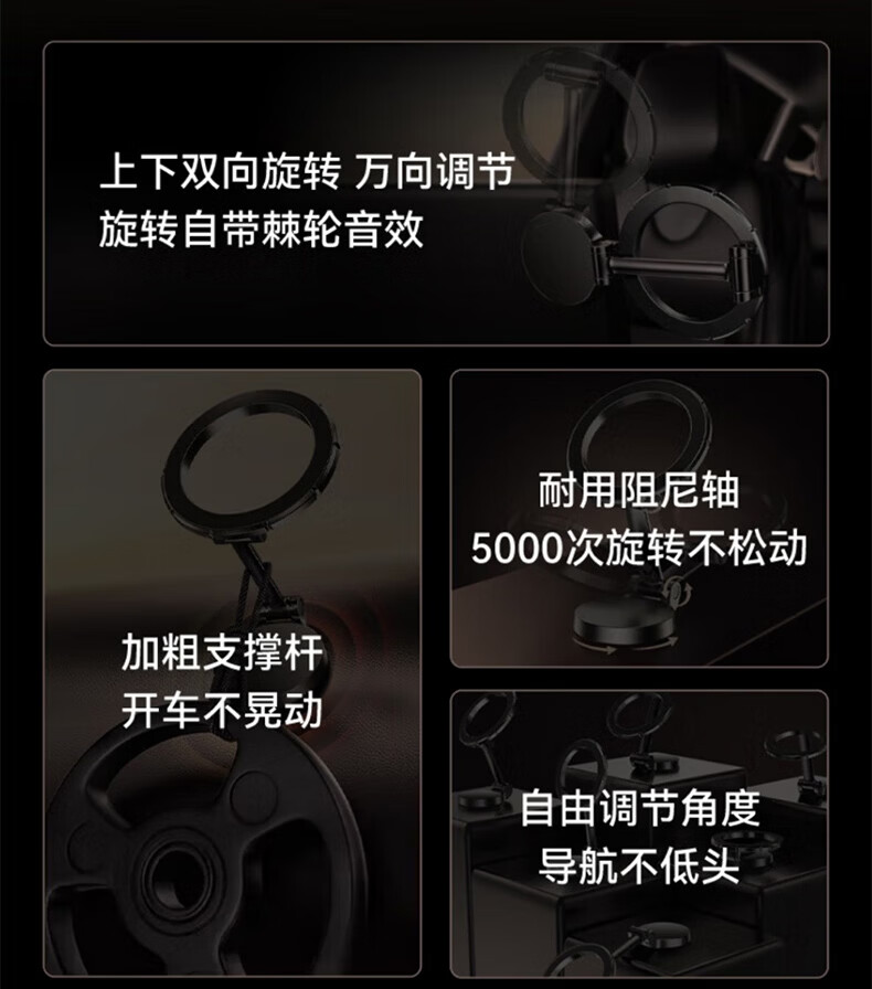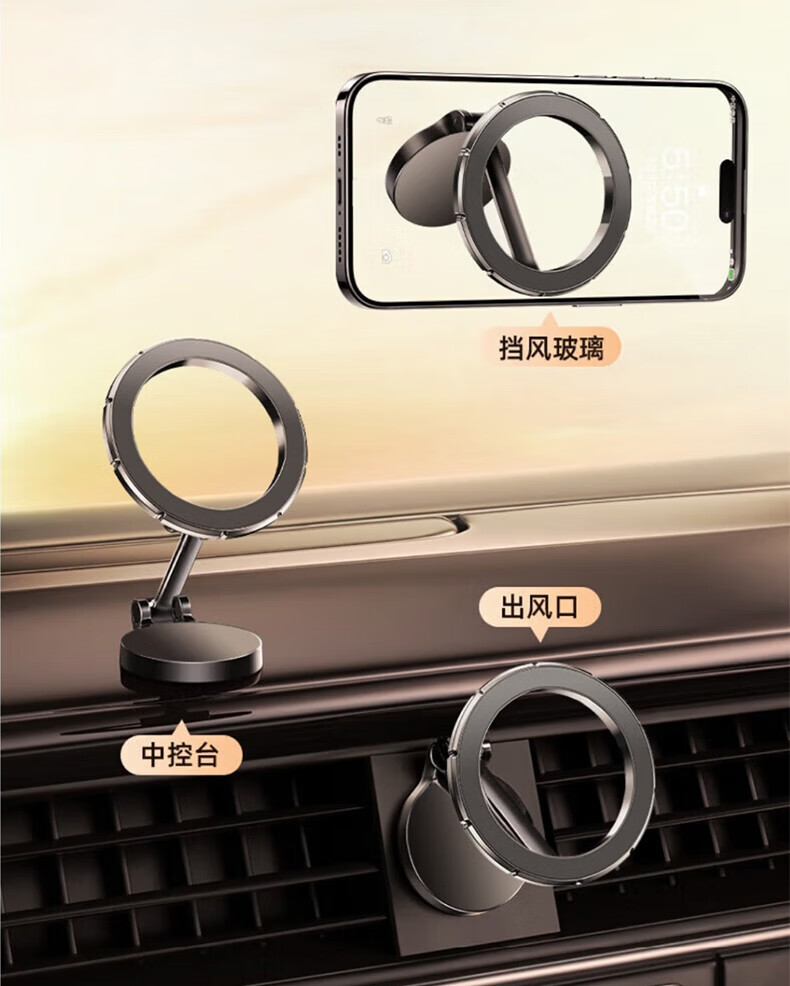 科极索Magsafe磁吸车载支架360度可旋转出风口磁吸支架锌合金多功能防抖 真空锌合金磁吸支架