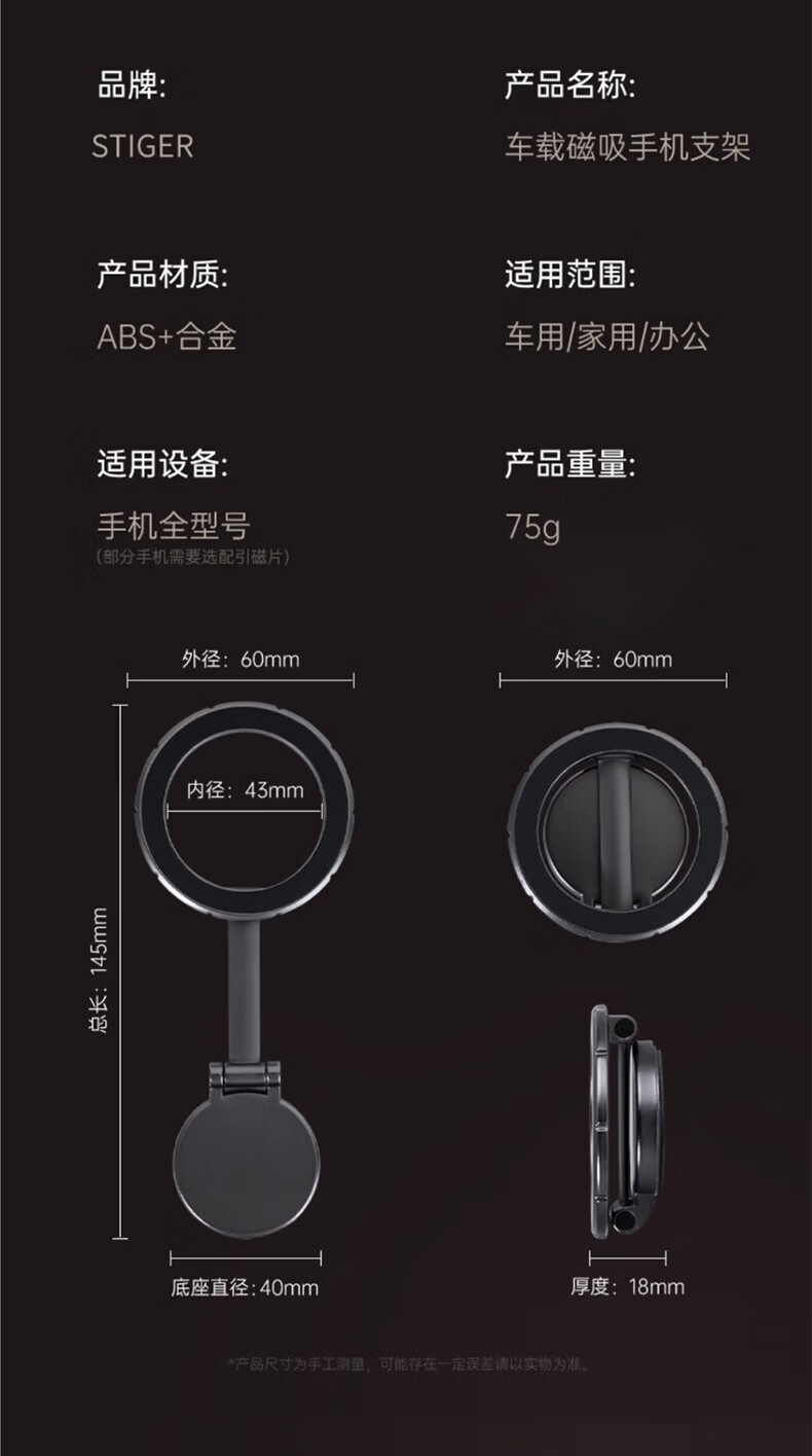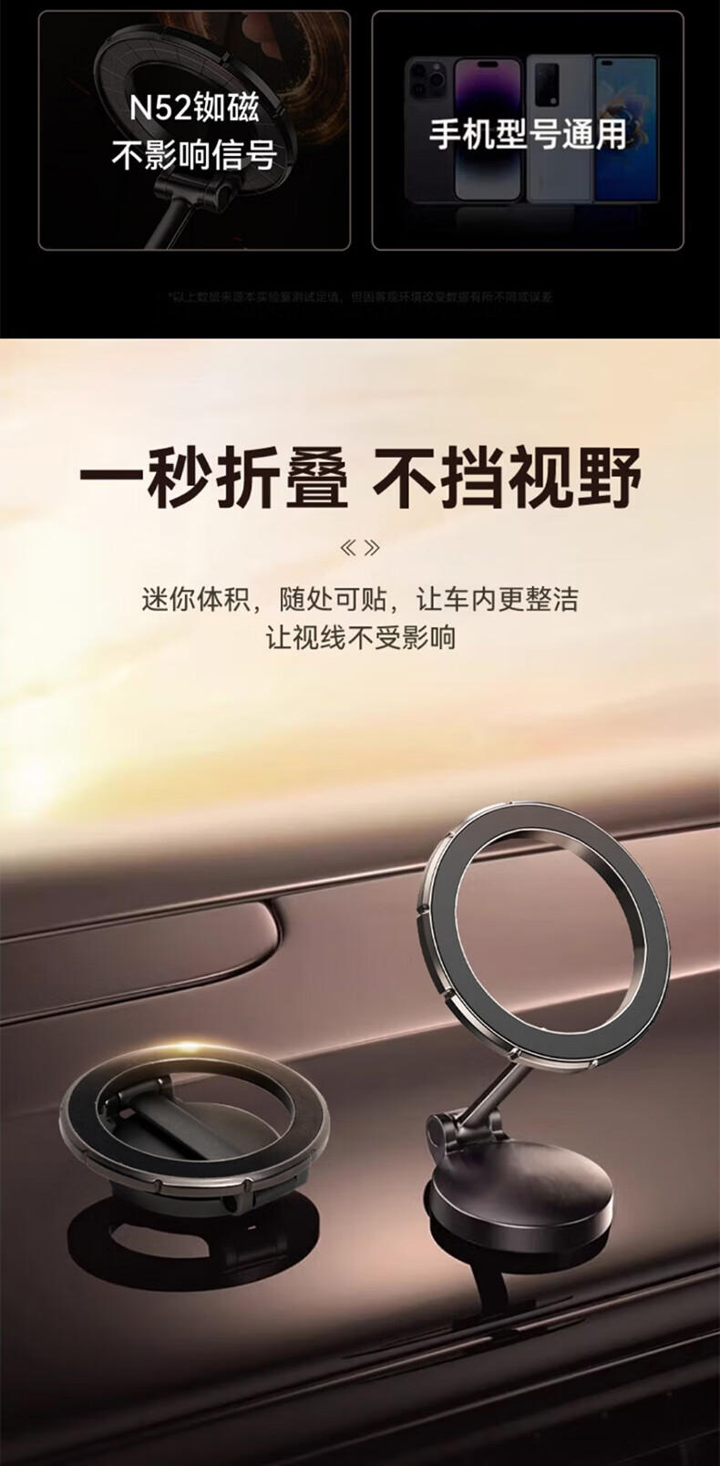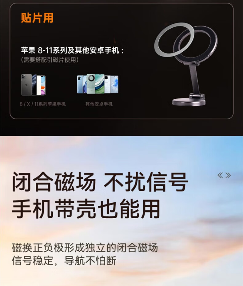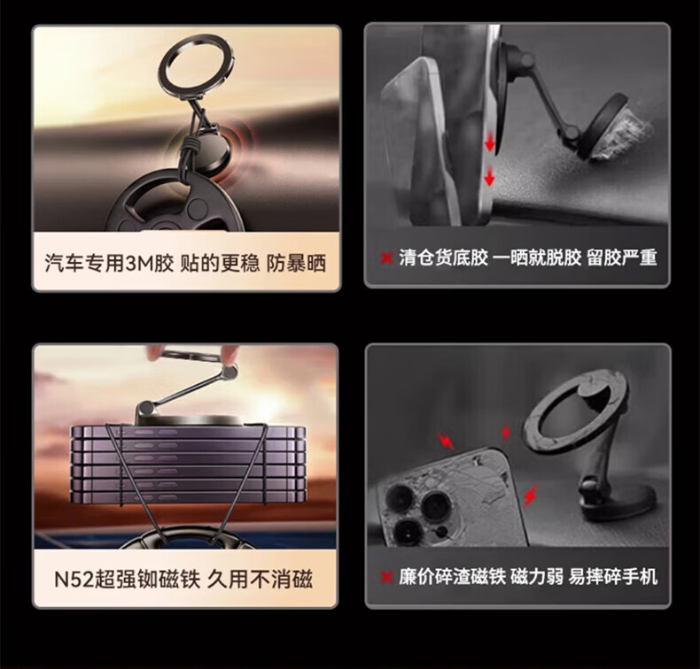科极索Magsafe磁吸车载支架360度可旋转出风口磁吸支架锌合金多功能防抖 真空锌合金磁吸支架