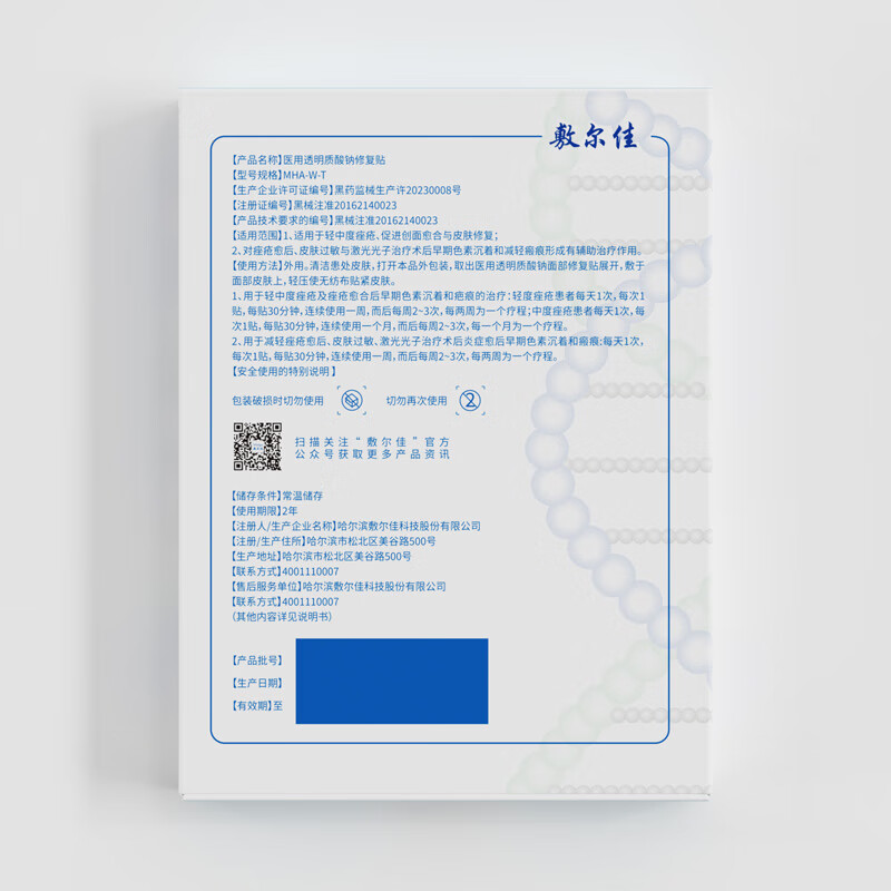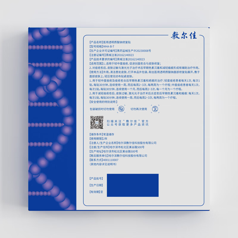 敷尔佳医用透明质酸钠修复贴白膜 皮肤修护械字号白膜5片补水修复面膜 【1盒】白膜5贴(械字号正品)