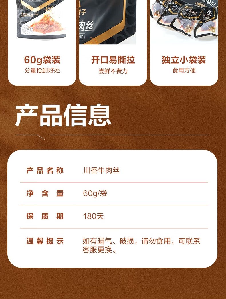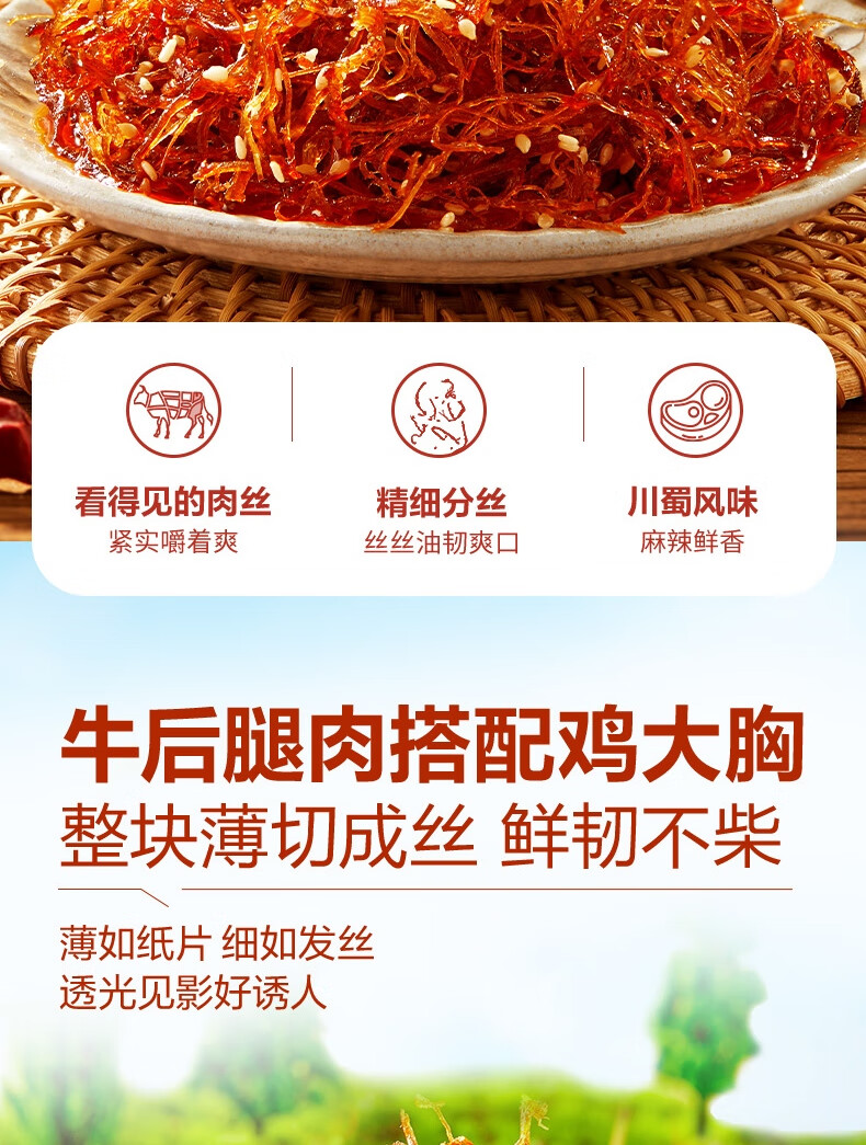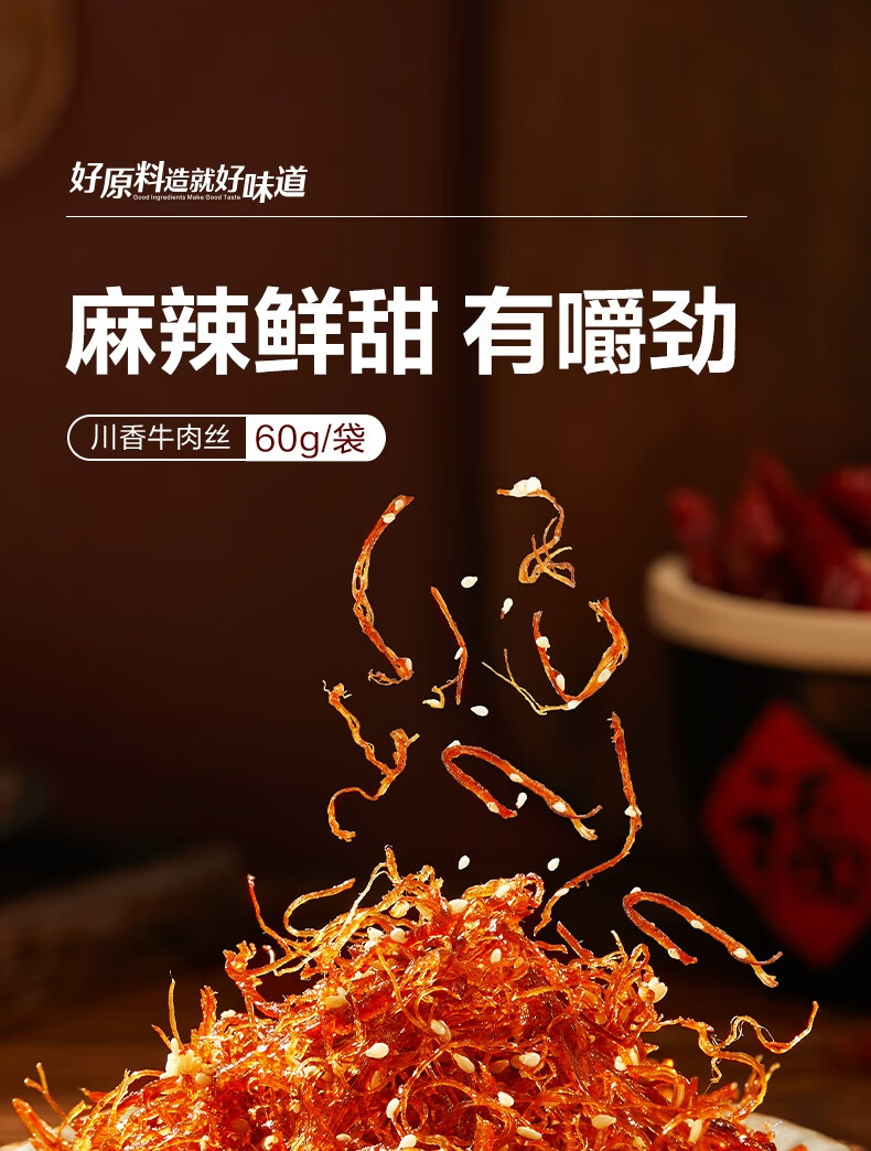 良品铺子川香牛肉丝60g鸡肉四川麻辣风味休闲零食肉类小吃开袋即食
