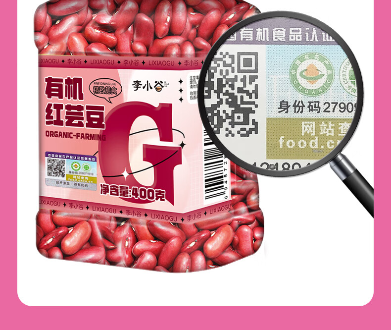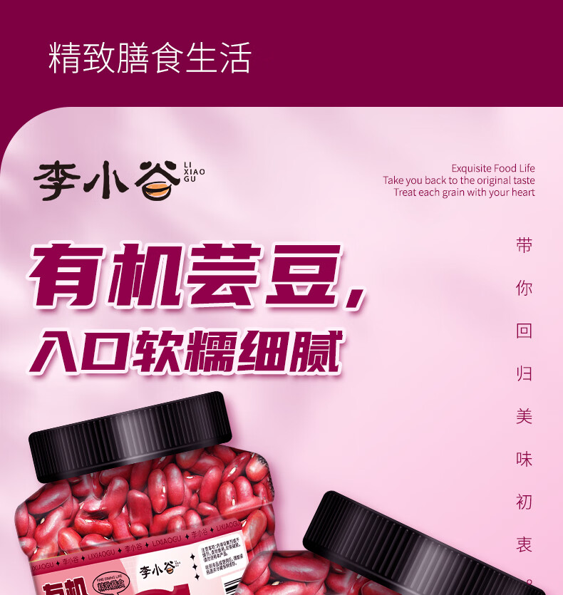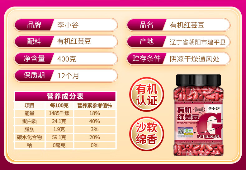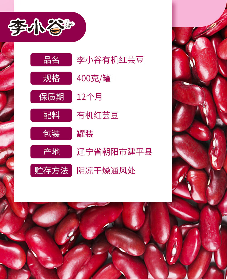 李小谷 有机红芸豆400克罐装(菜豆饭豆红芸豆沙原料煲粥煮汤伴侣)