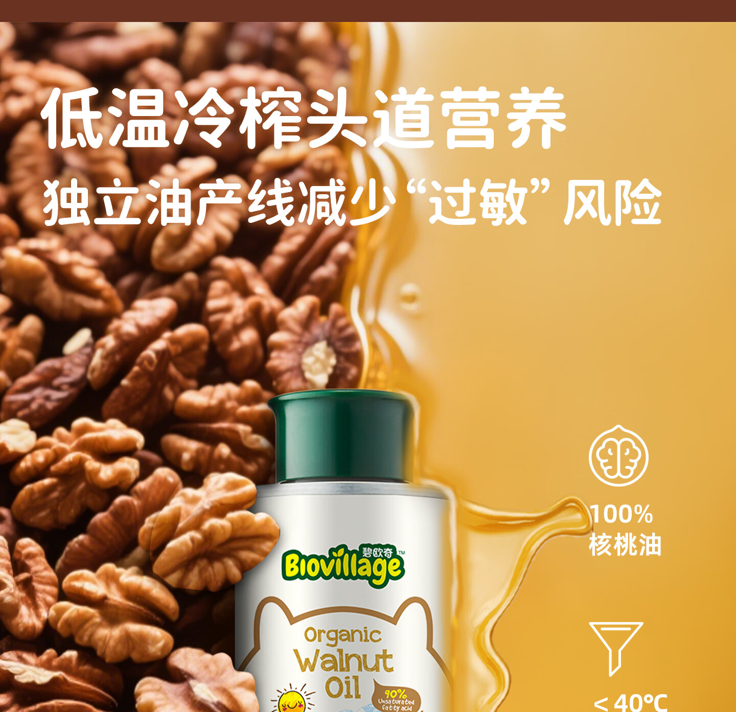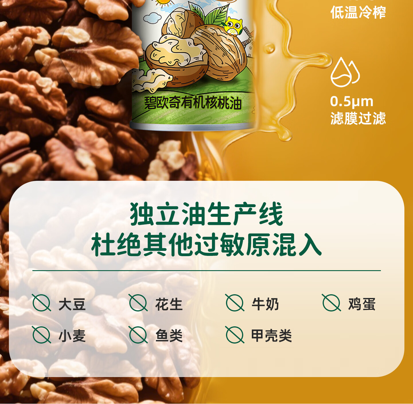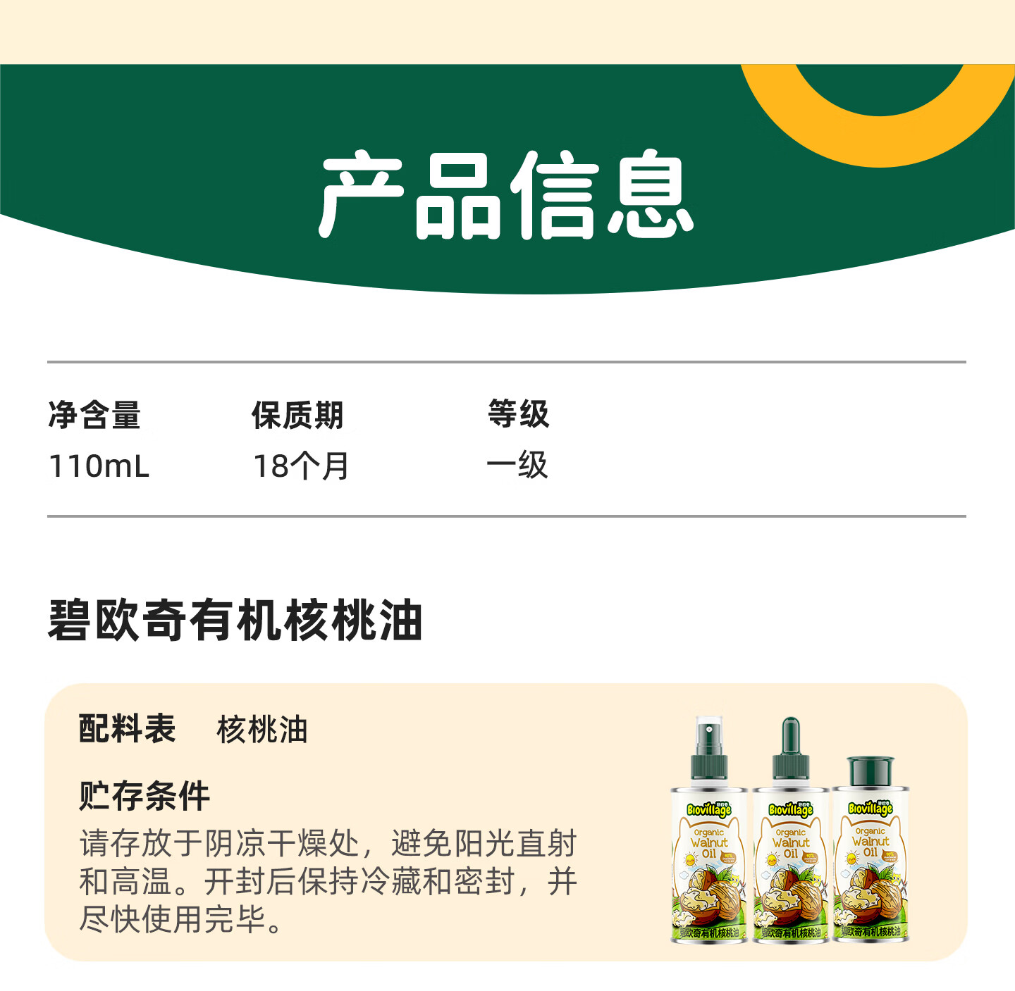 碧欧奇三国有机核桃油100ml 宝宝辅食用油凉拌热炒 6个月以上适合婴幼儿