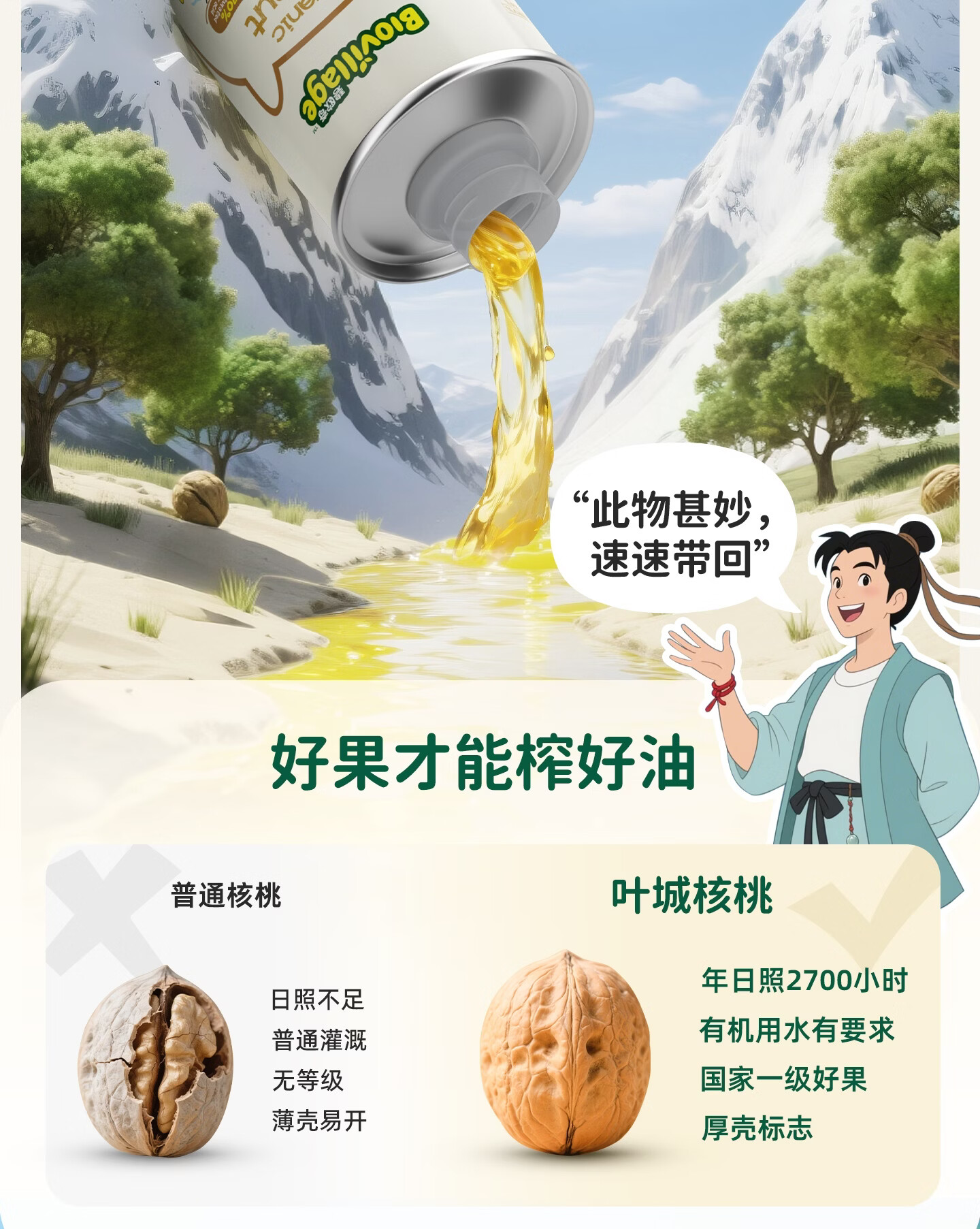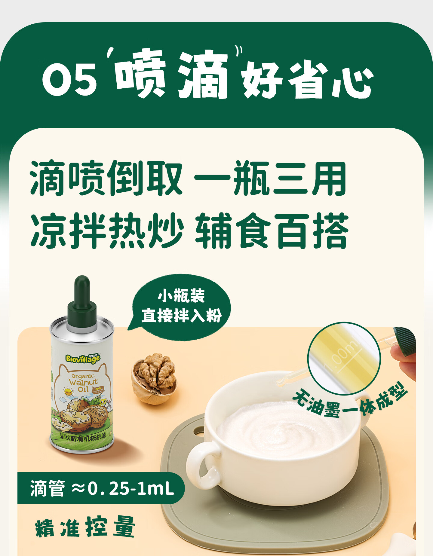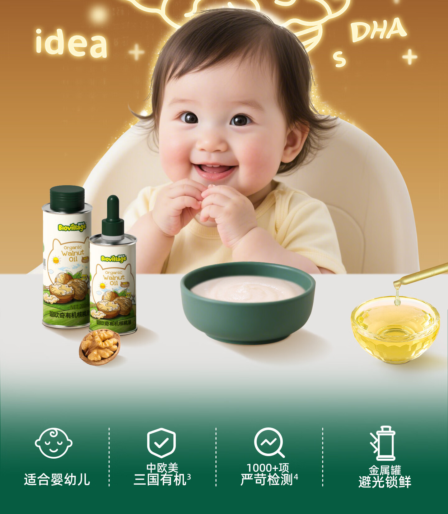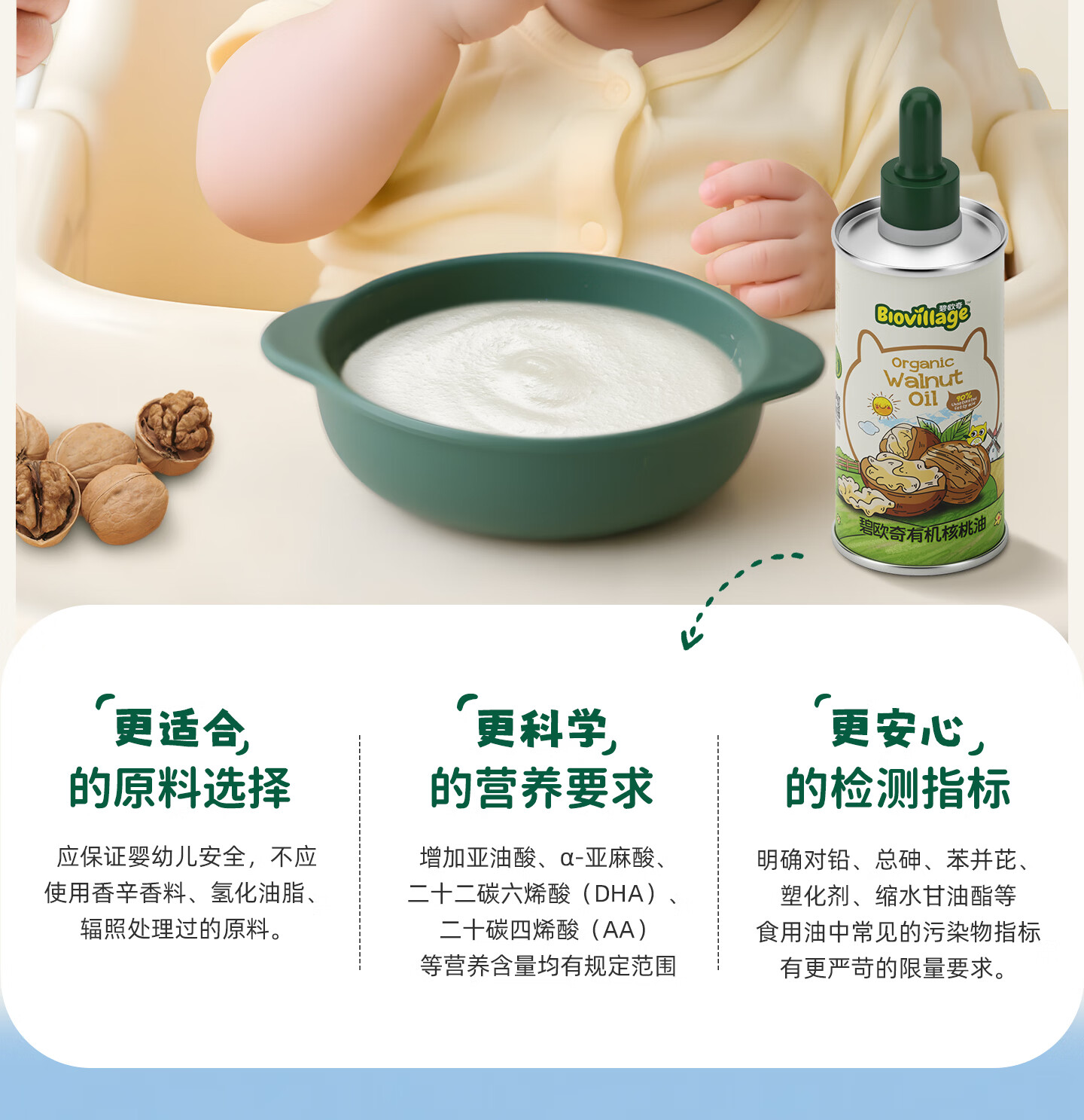 碧欧奇三国有机核桃油100ml 宝宝辅食用油凉拌热炒 6个月以上适合婴幼儿