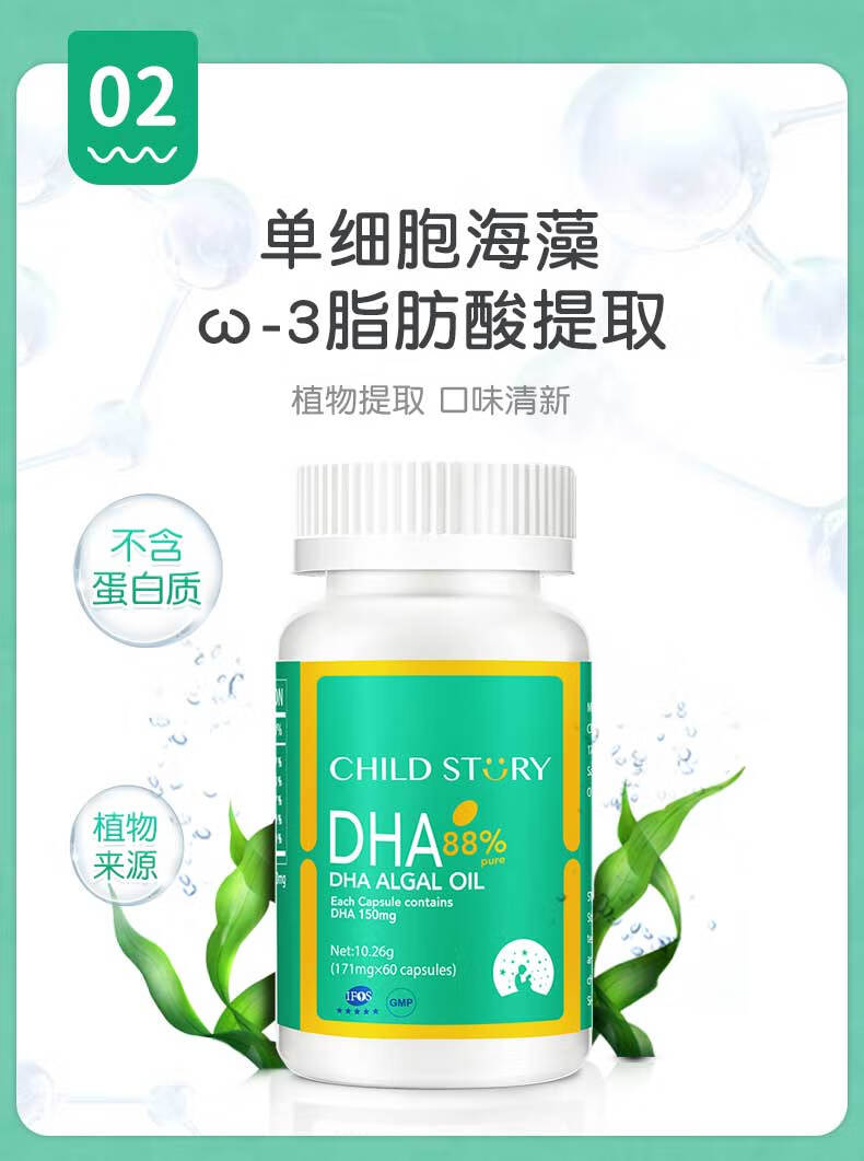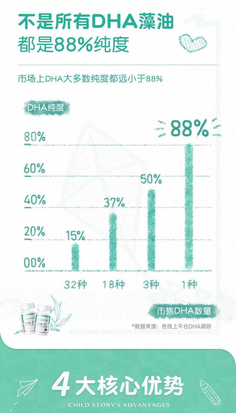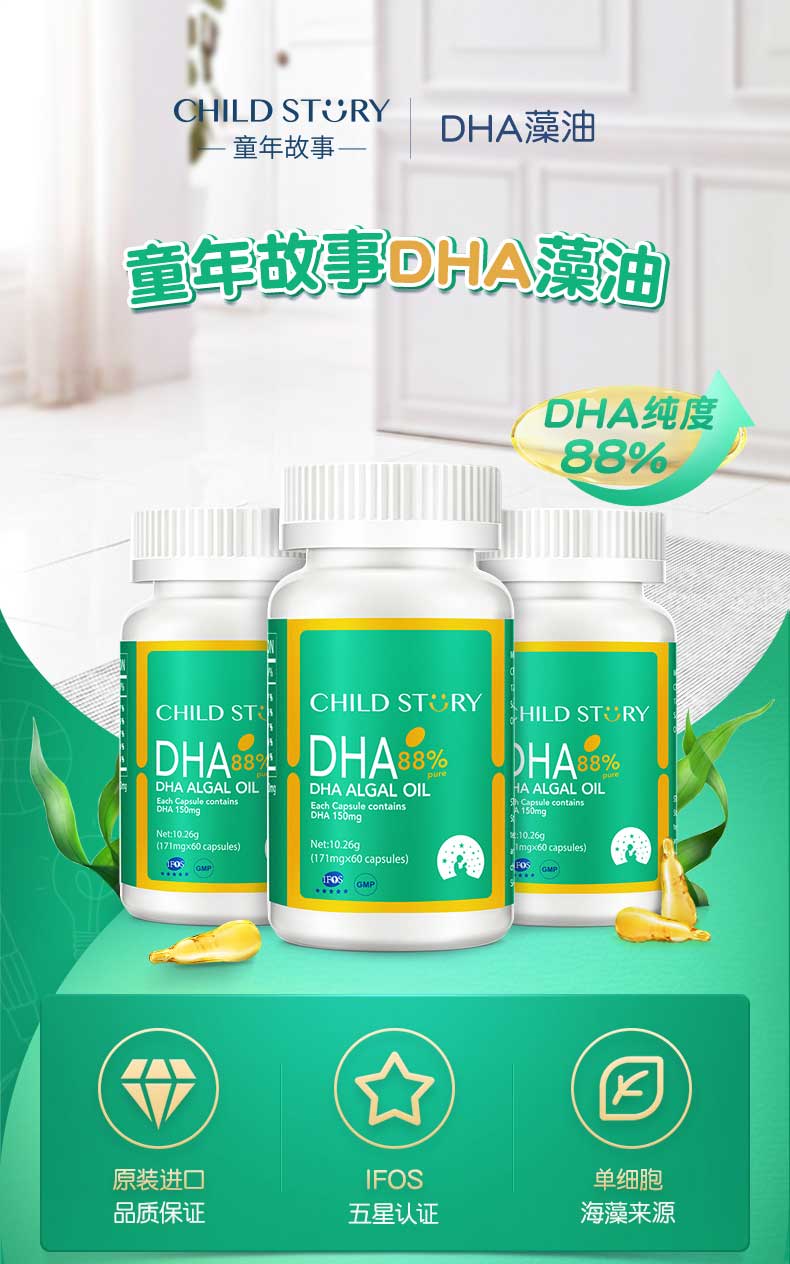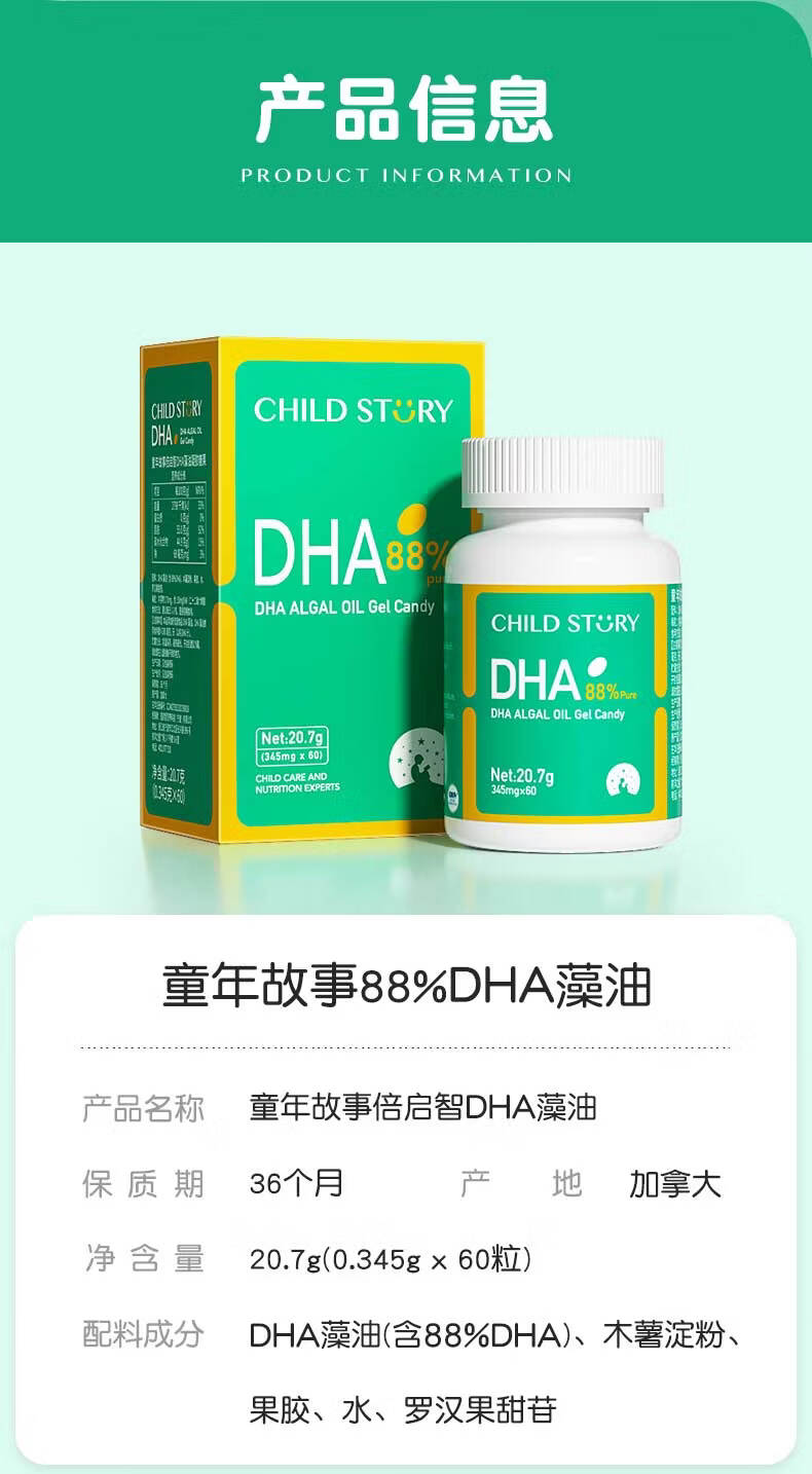 童年故事Child Story88%纯度DHA藻油软胶囊儿童宝宝婴幼儿孕妇dha凝胶糖果 (加拿大原装进口) 60粒*1瓶