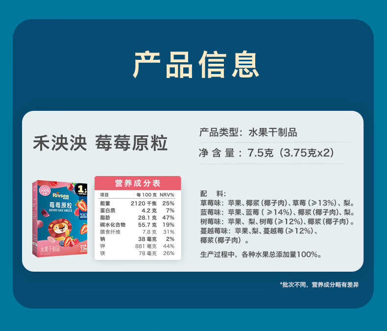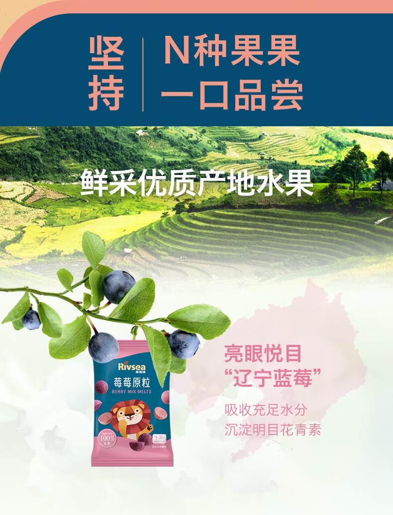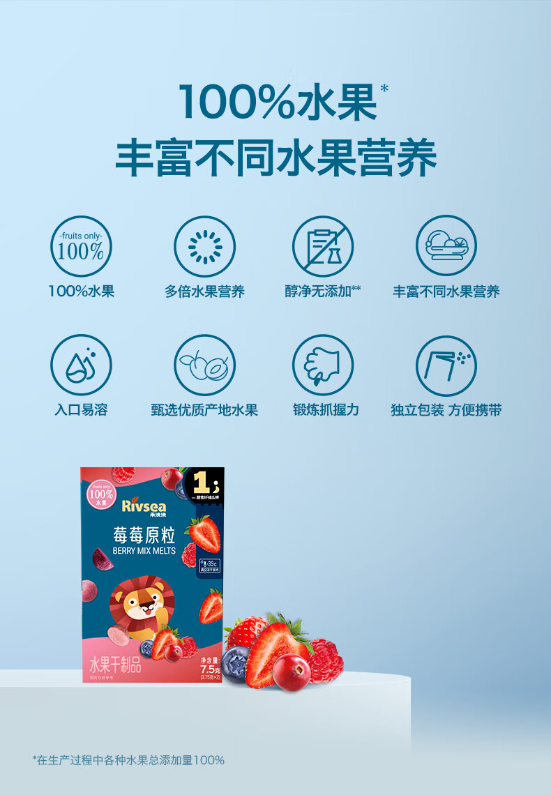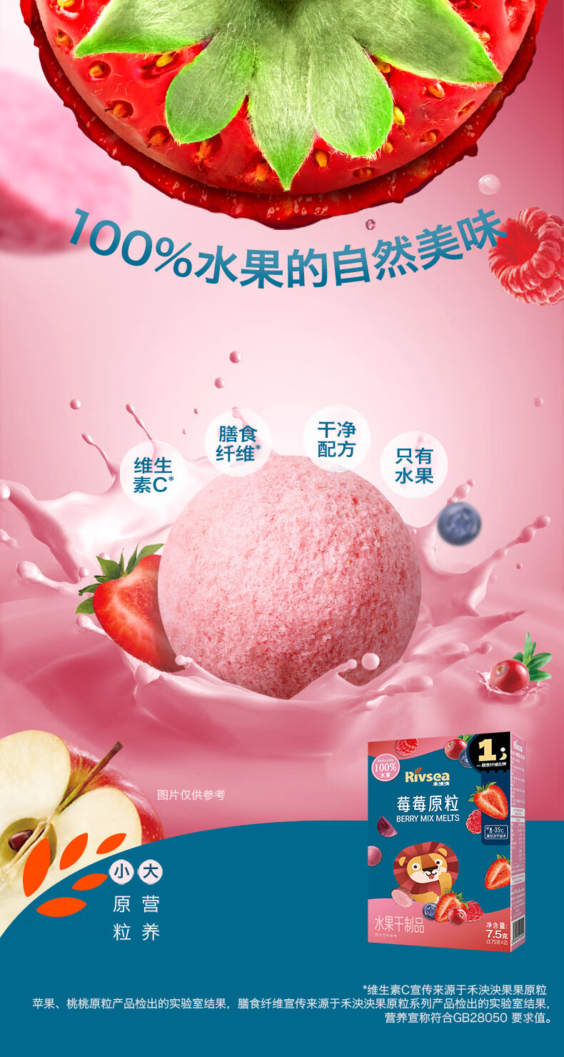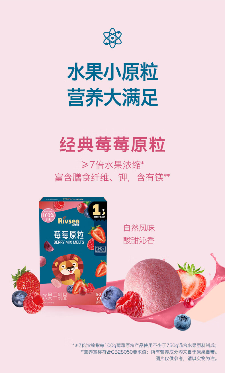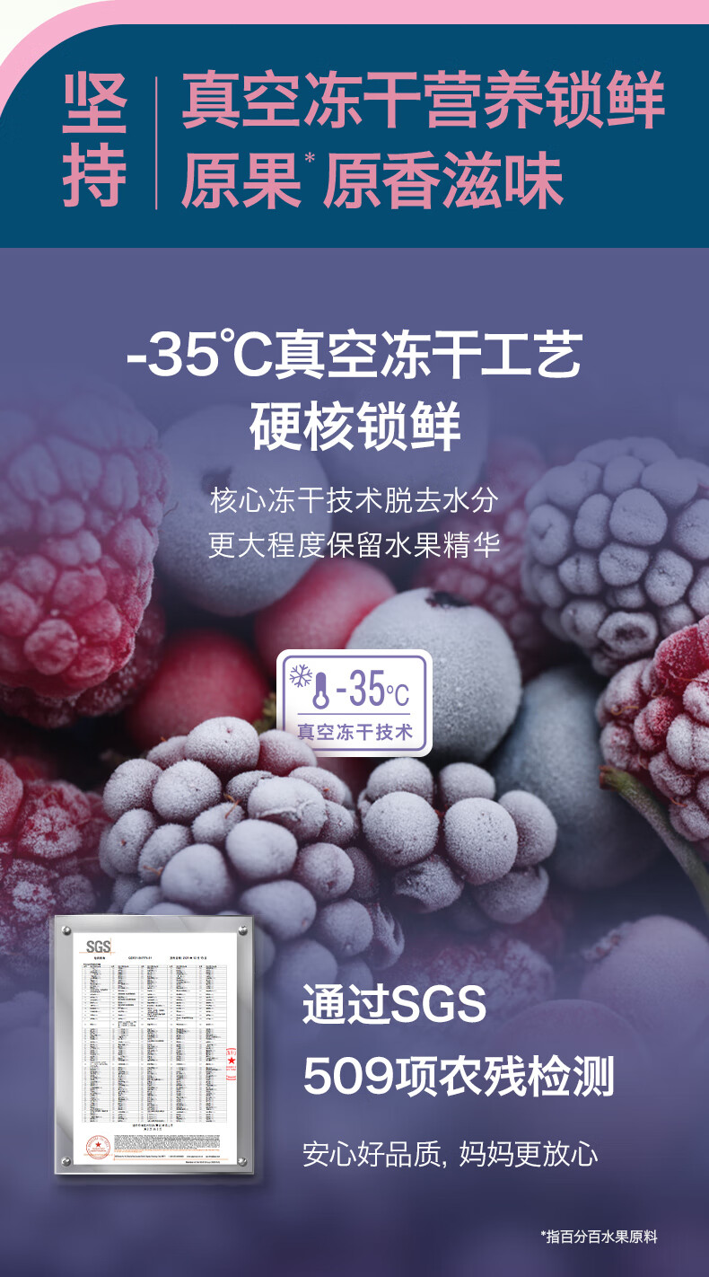 禾泱泱7倍水果浓缩莓莓原粒7.5g宝宝儿童零食100%水果入口易溶尝鲜