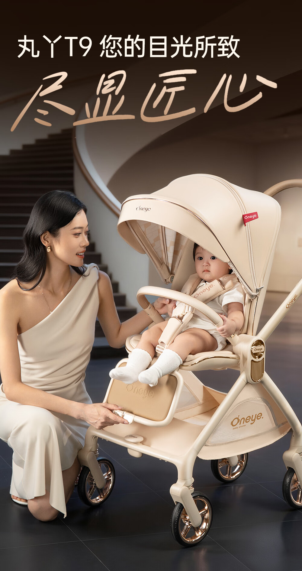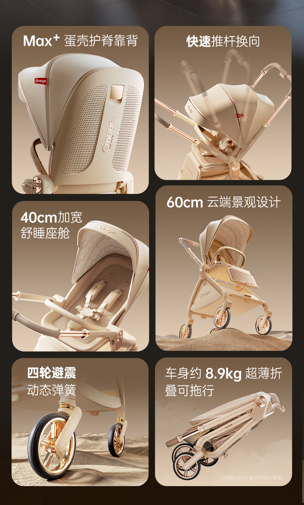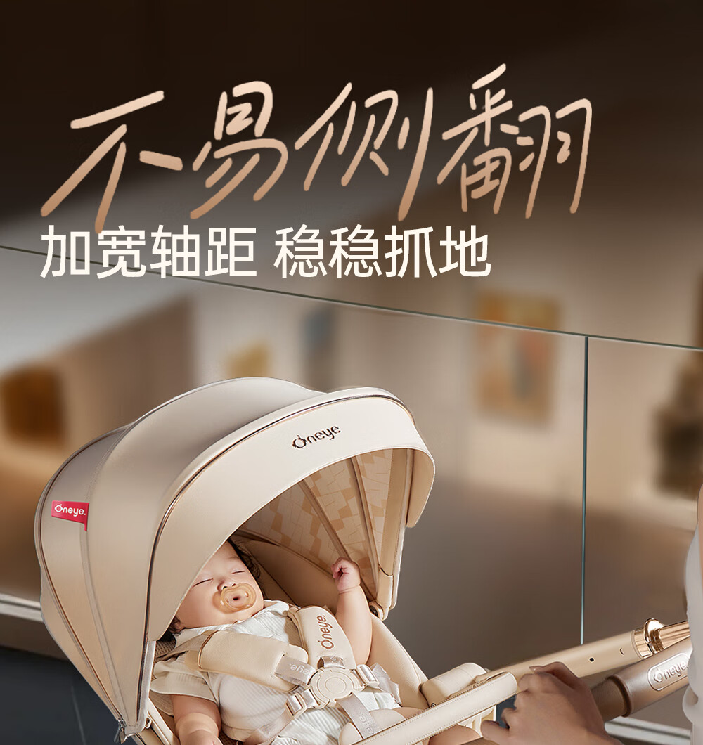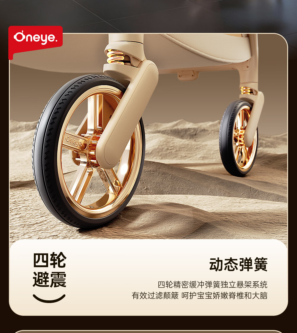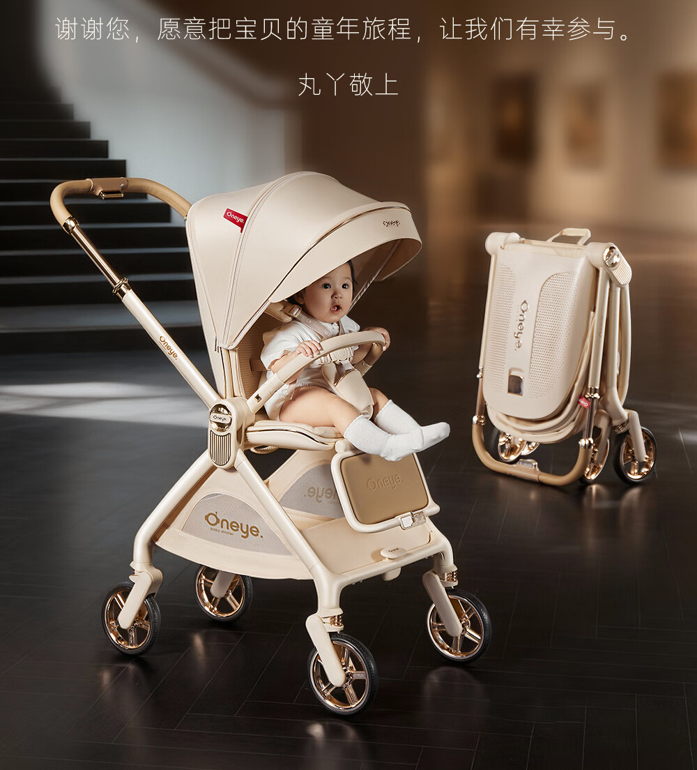 丸丫T9婴儿推车双向轻便可坐可躺折叠四轮避震新生儿高景观香槟棕