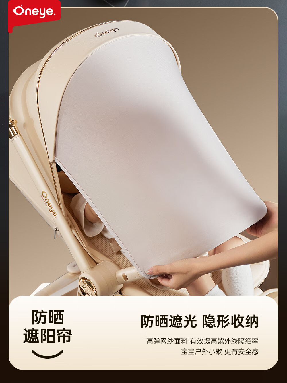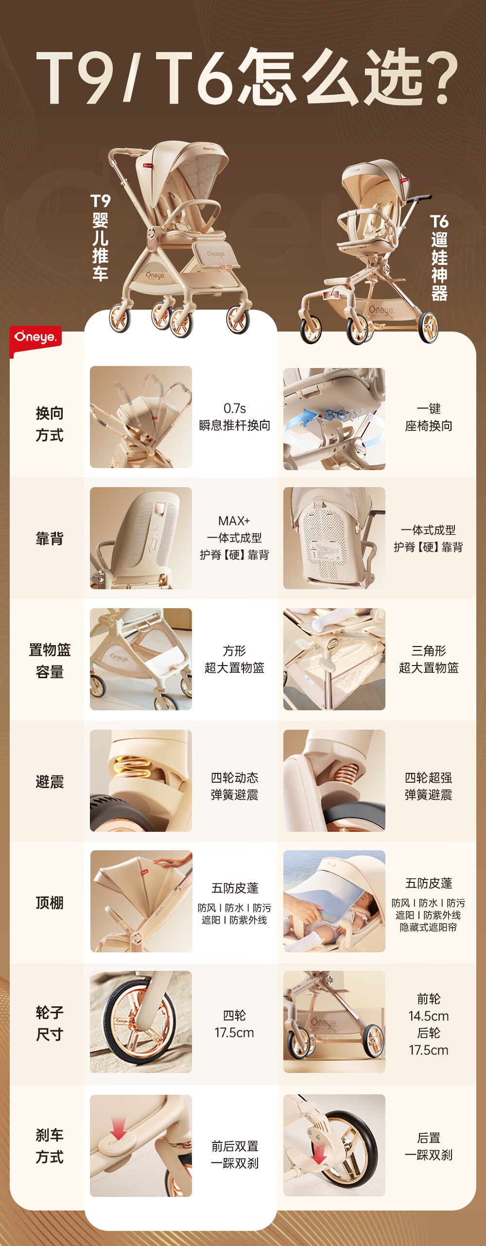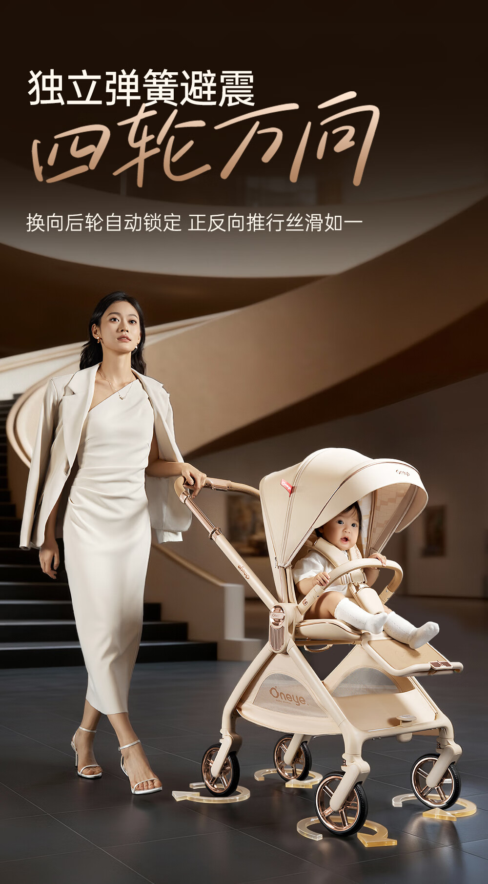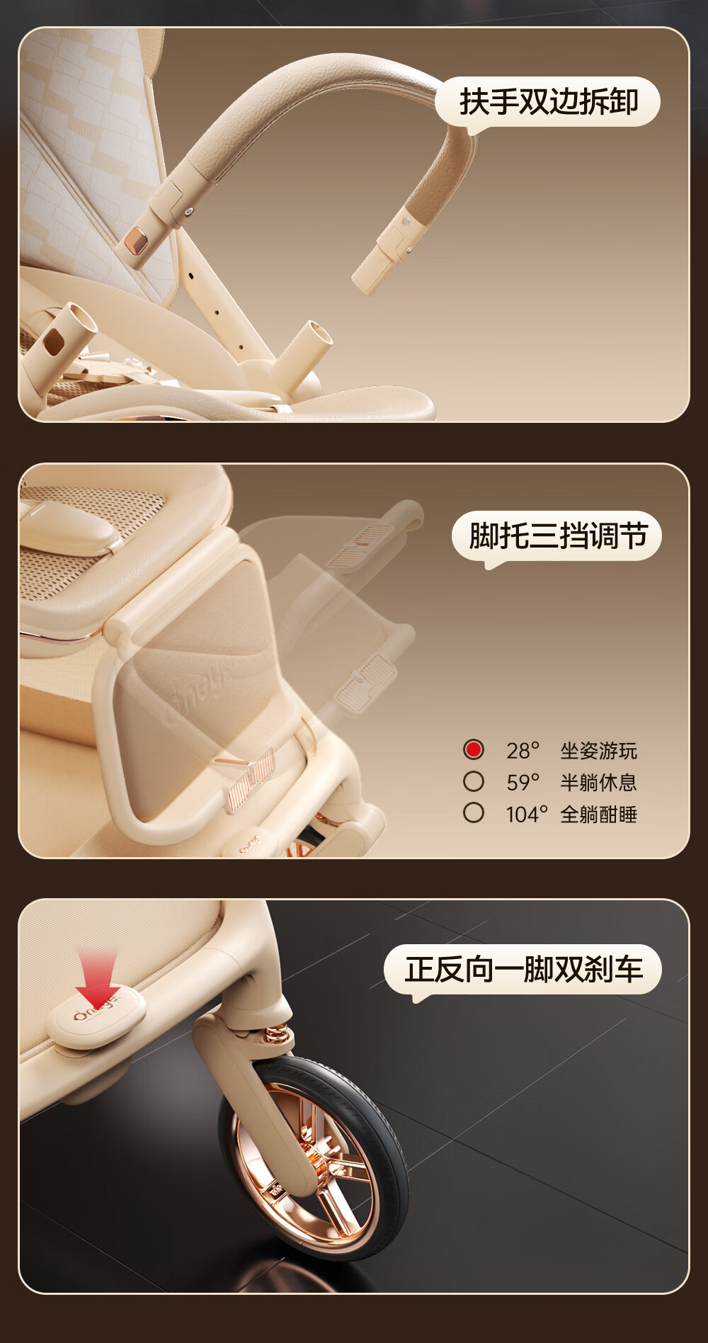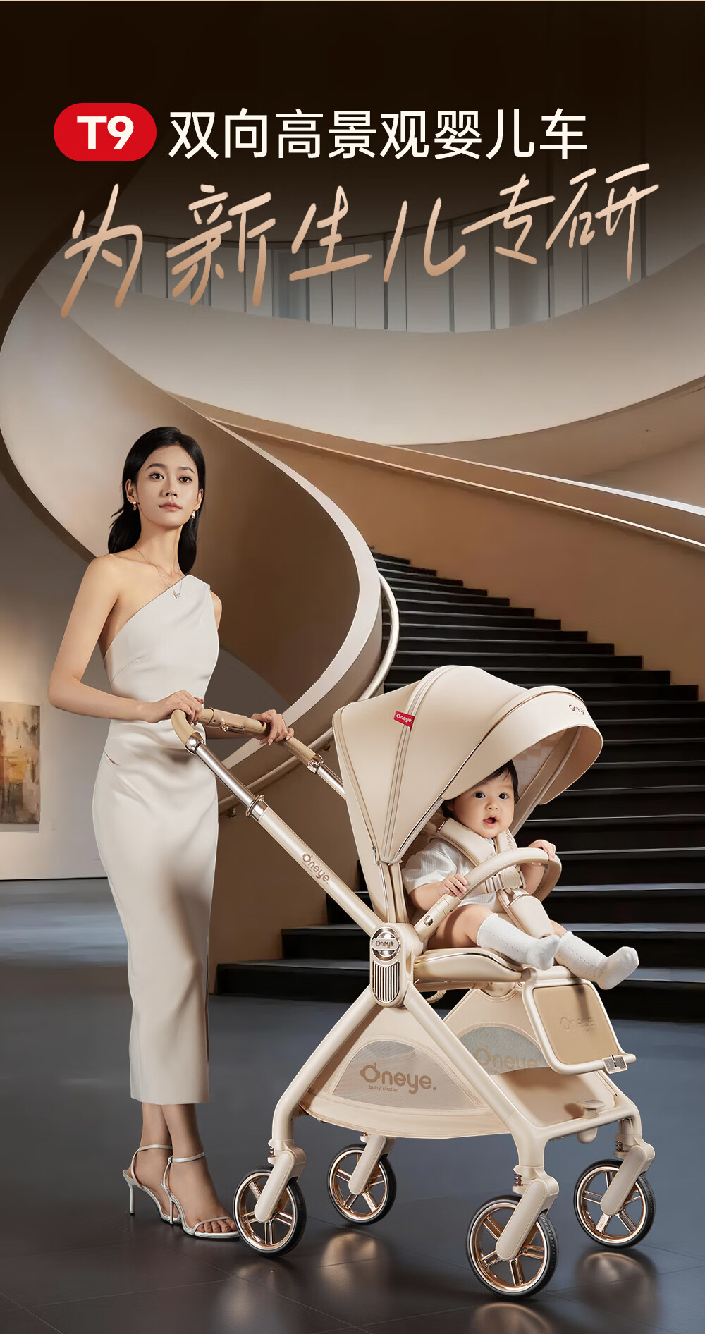 丸丫T9婴儿推车双向轻便可坐可躺折叠四轮避震新生儿高景观香槟棕