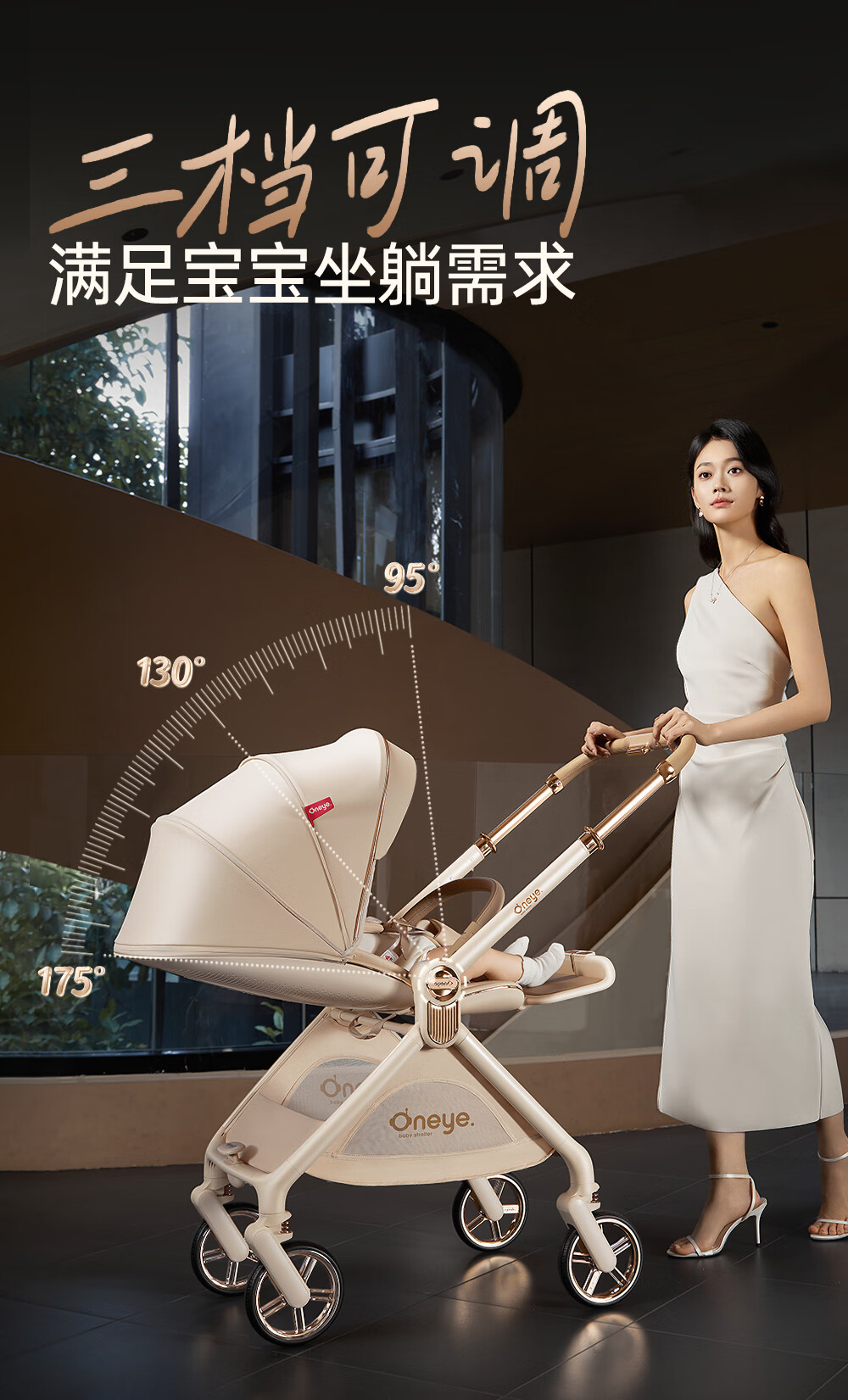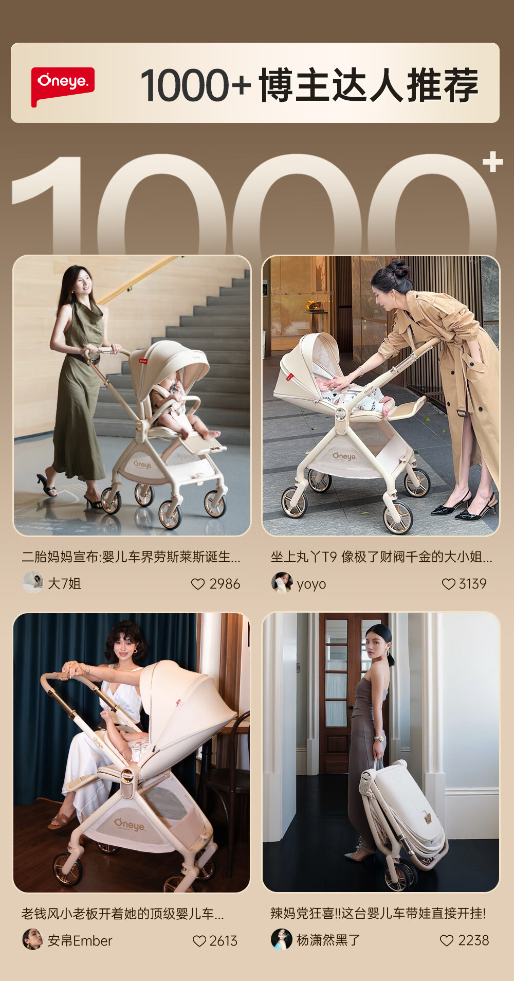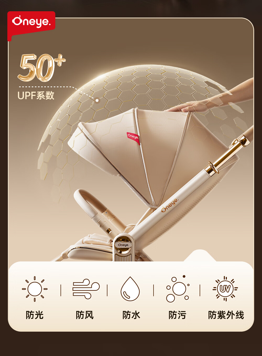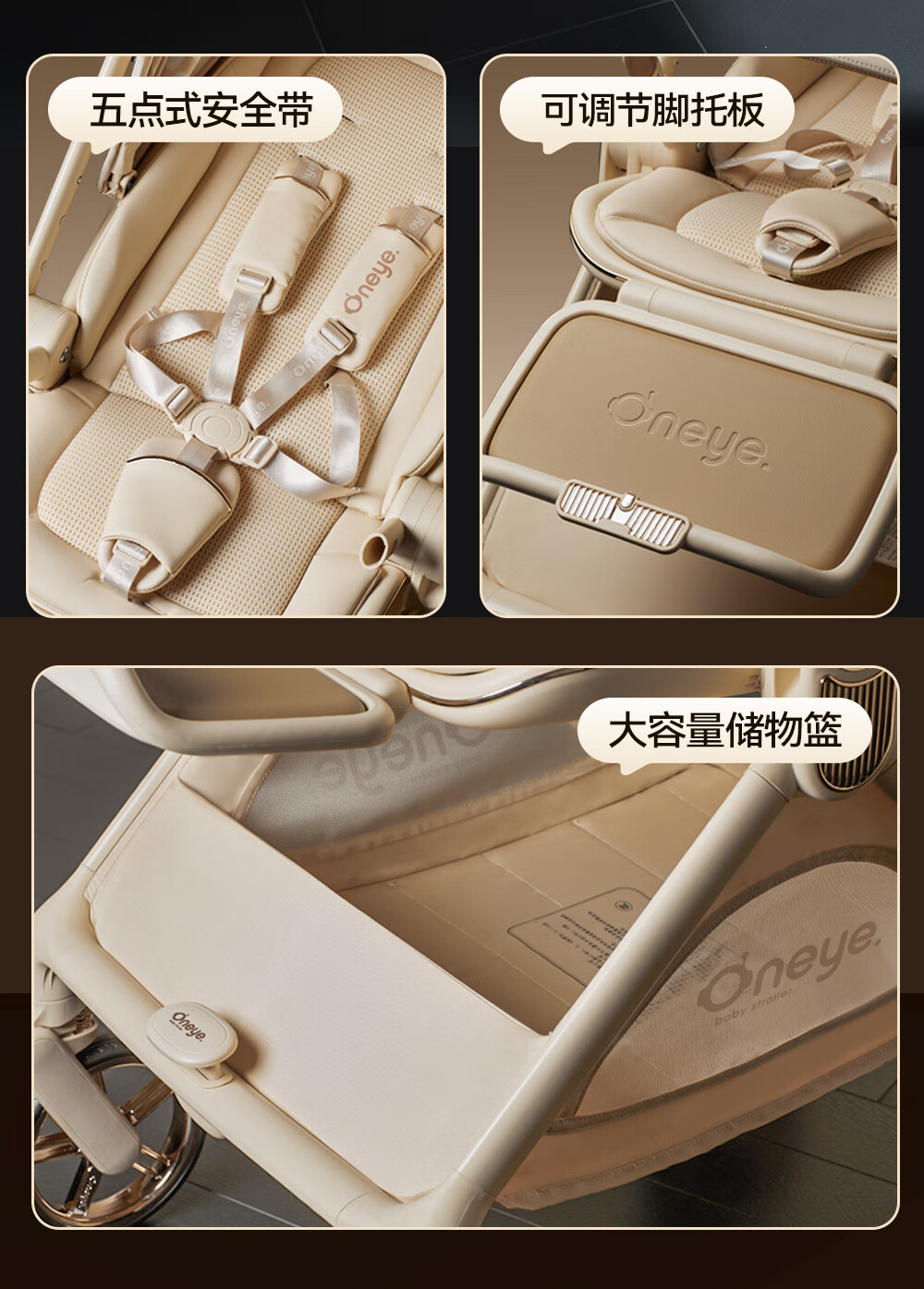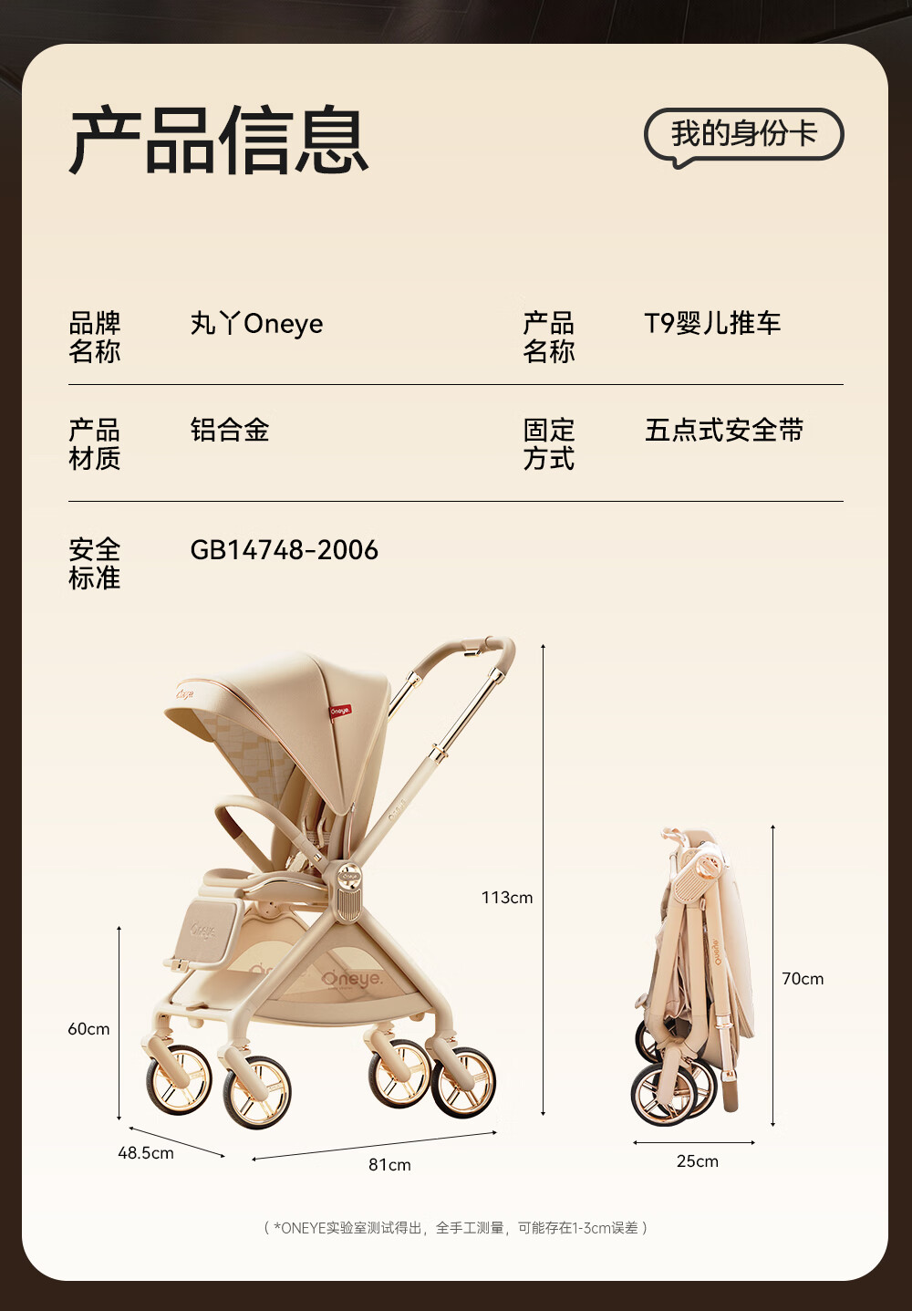 丸丫T9婴儿推车双向轻便可坐可躺折叠四轮避震新生儿高景观香槟棕