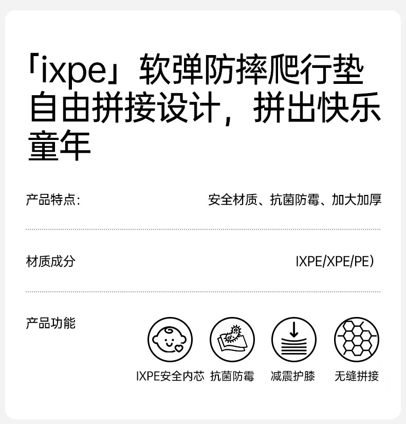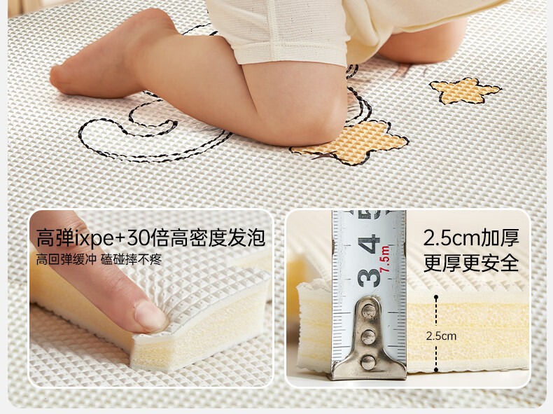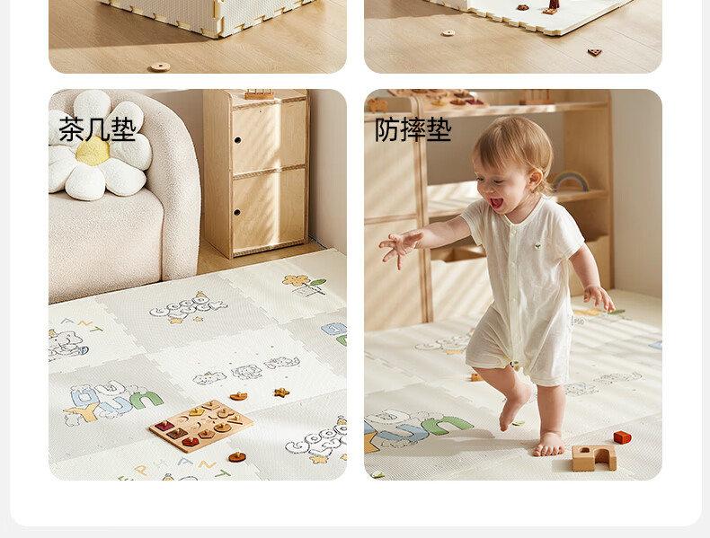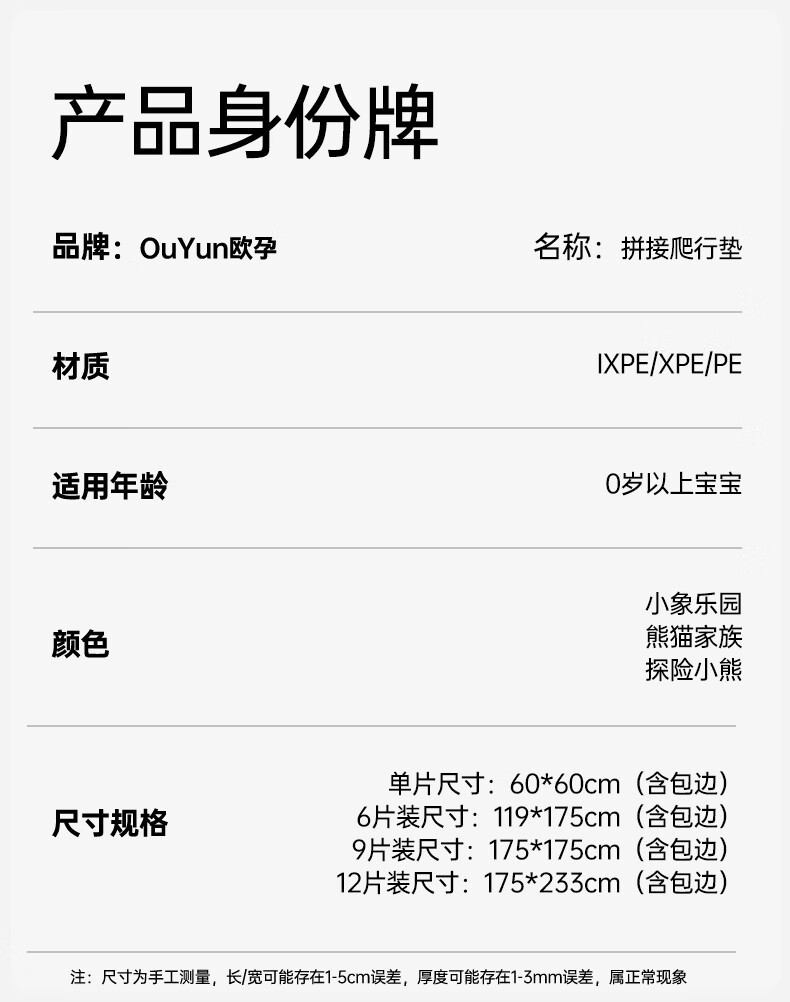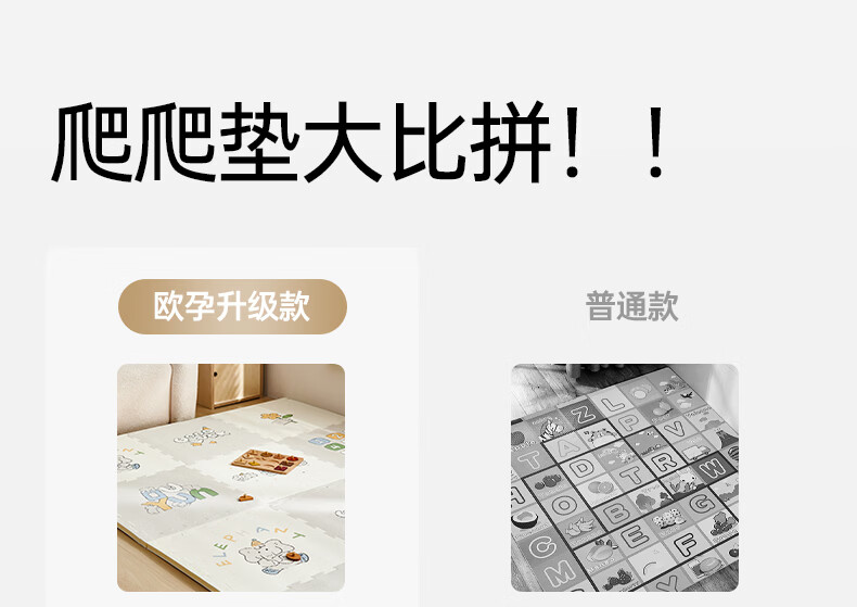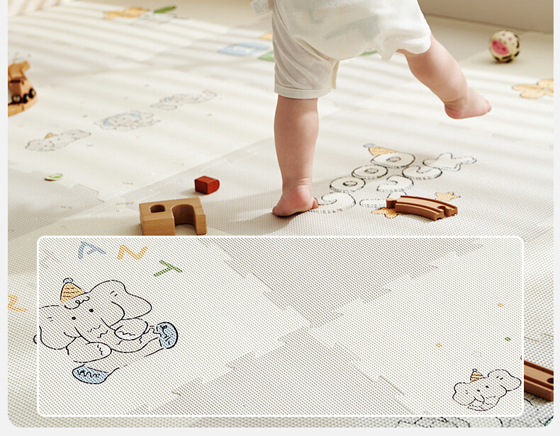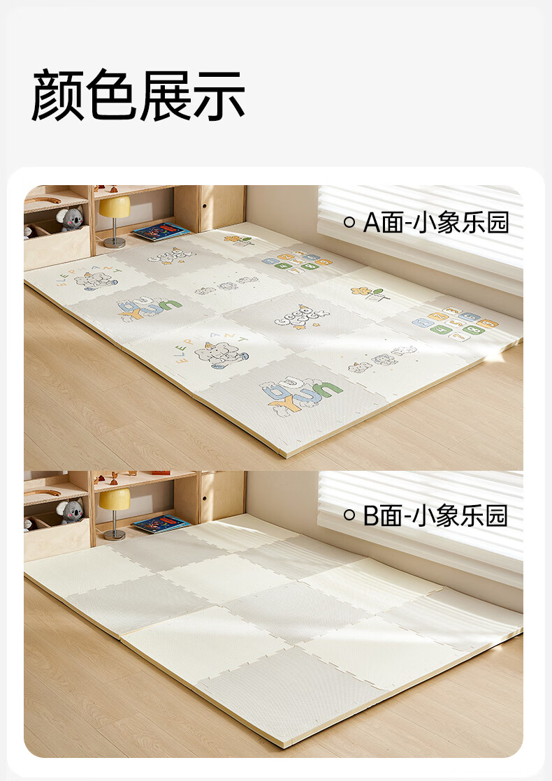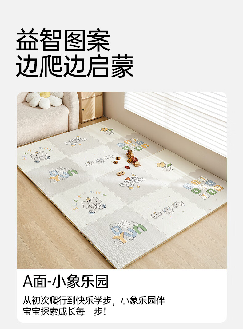 欧孕(OUYUN)婴儿爬爬垫拼接双面加厚ixpe爬行垫 小象 60*60*2.5 九片