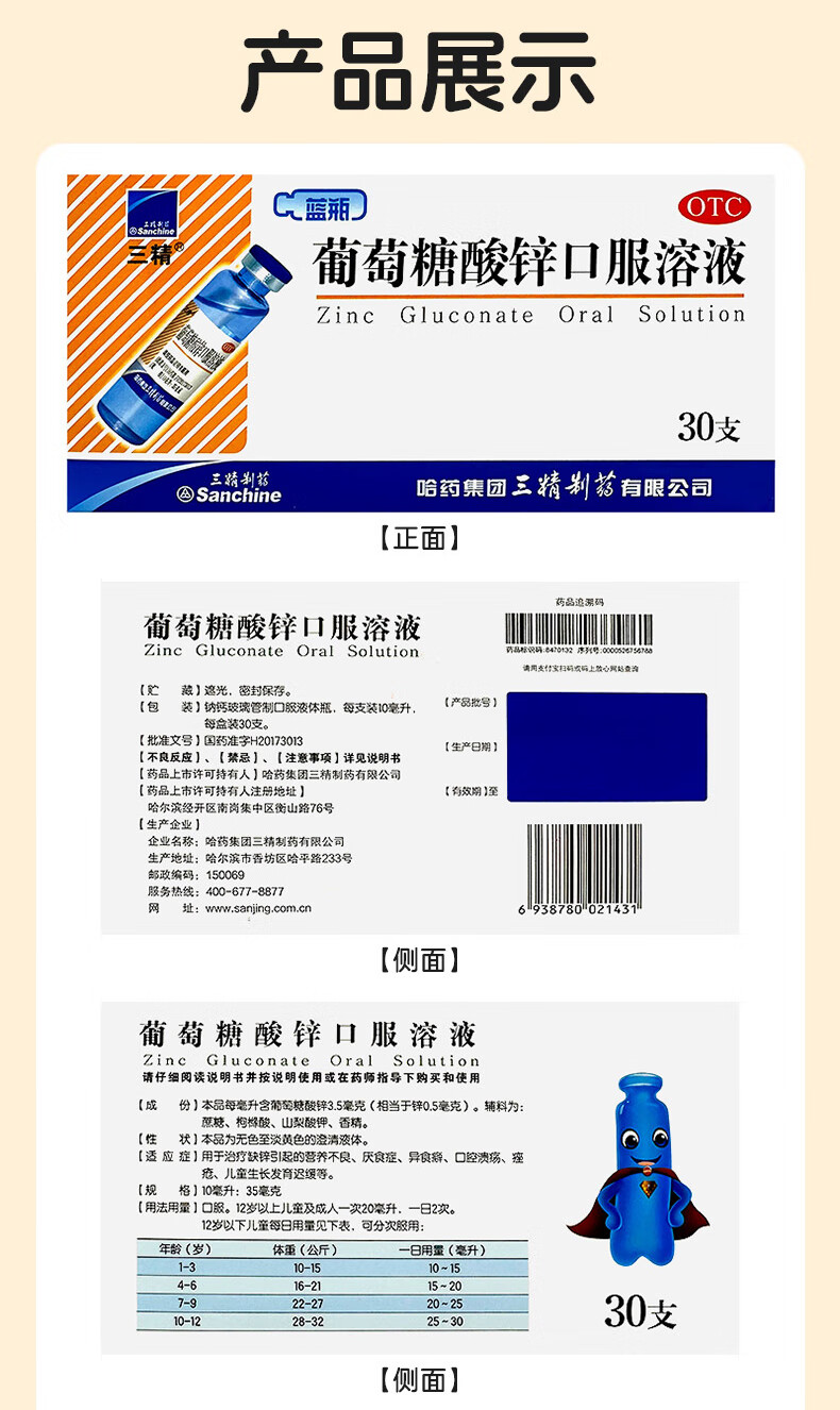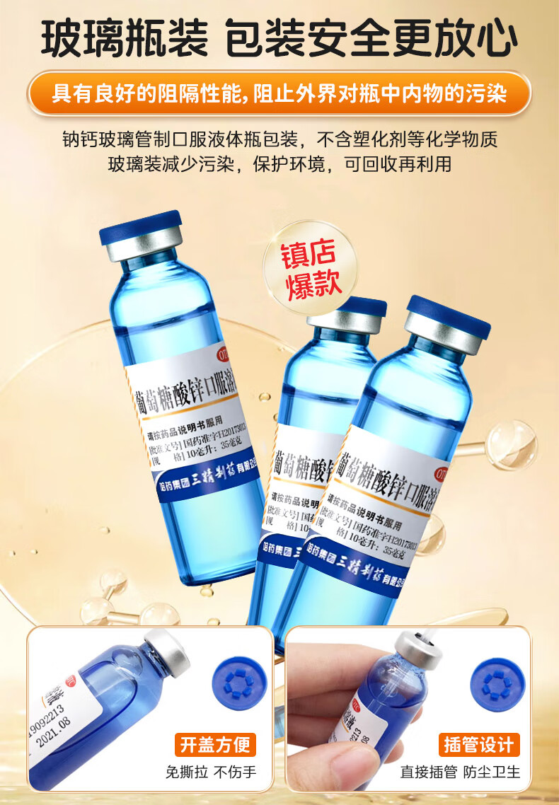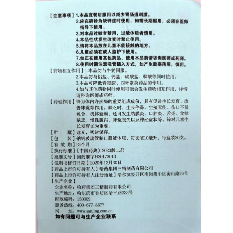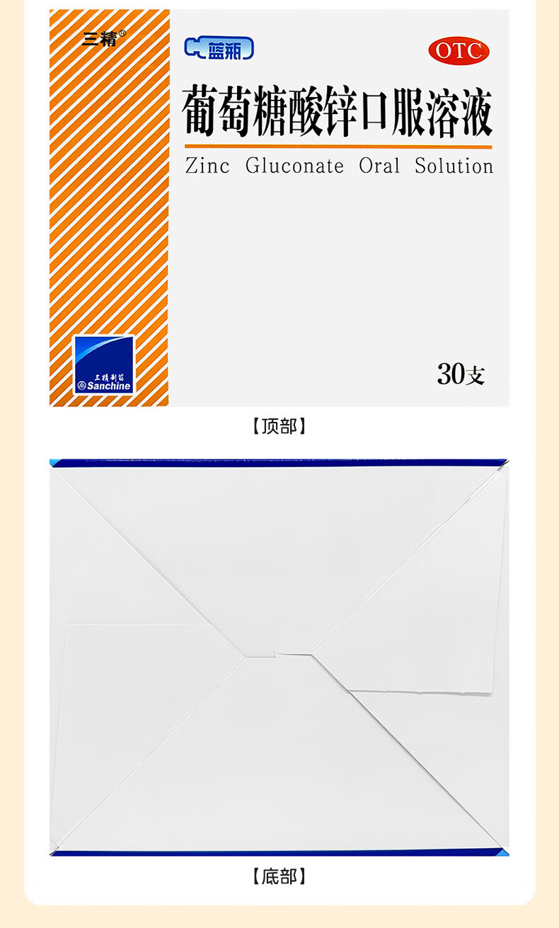 三精葡萄糖酸锌口服溶液10ml*30支非葡萄糖酸钙锌溶液1-3-17岁儿童青少年成人中老年补锌改善挑食非钙铁锌钙片