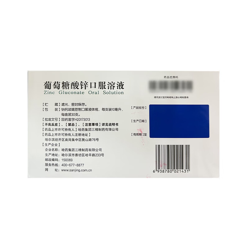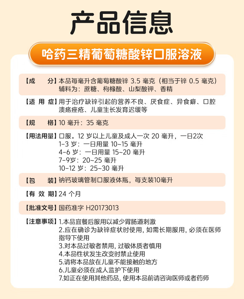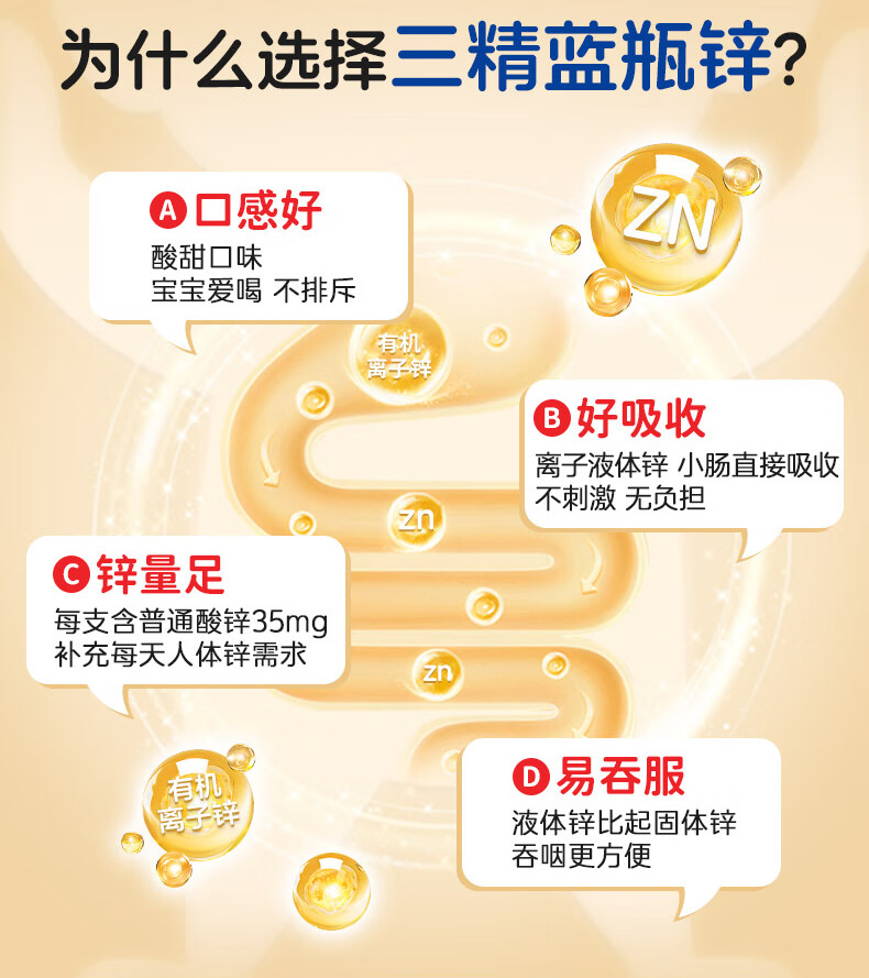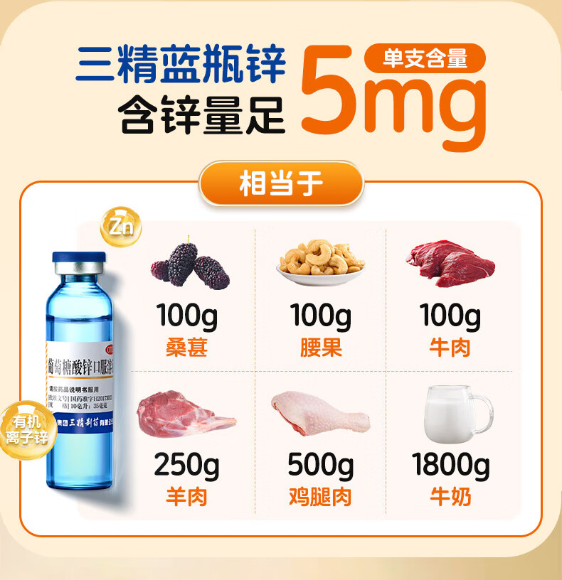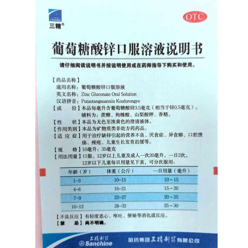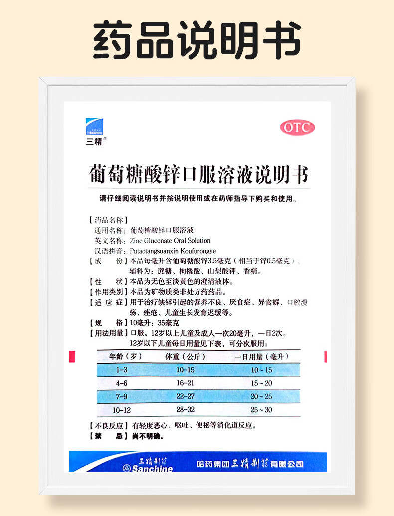 三精葡萄糖酸锌口服溶液10ml*30支非葡萄糖酸钙锌溶液1-3-17岁儿童青少年成人中老年补锌改善挑食非钙铁锌钙片