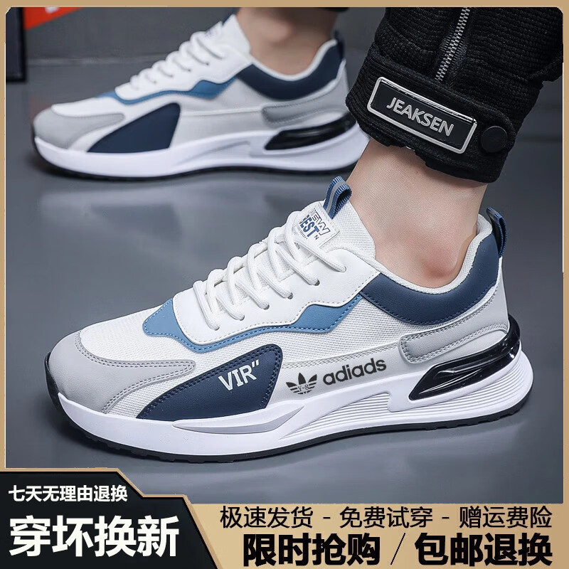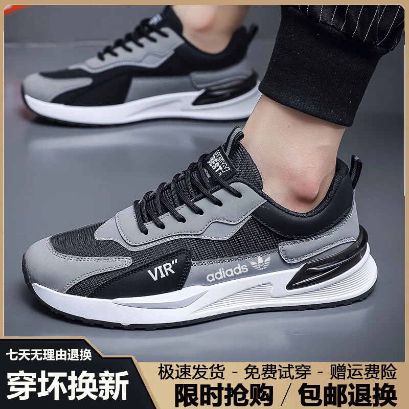 轻奢潮牌男鞋春季新款运动鞋男士软底轻便跑步鞋男百搭休闲鞋子男 AD6618白灰色【网面款】 41