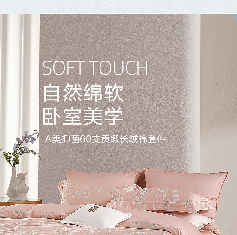 水星家纺床上四件套60支长绒棉纯棉100%A类轻奢高级26年春夏新品 南法·星野花语 床单款 (被套150*210cm)