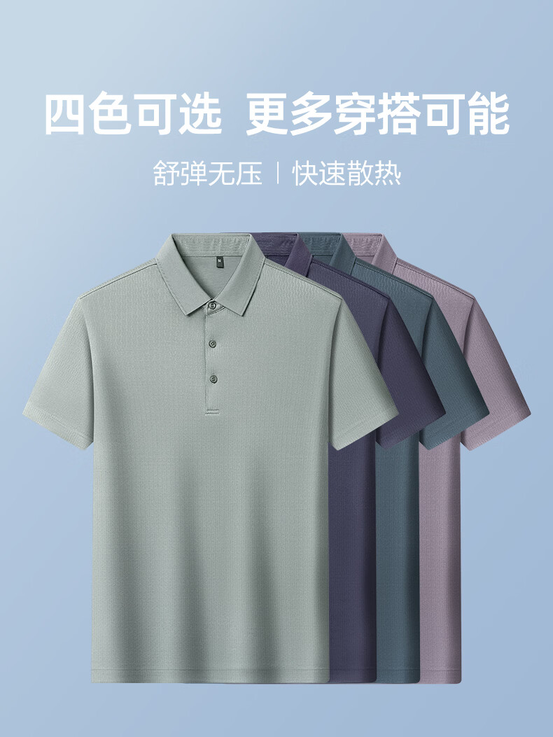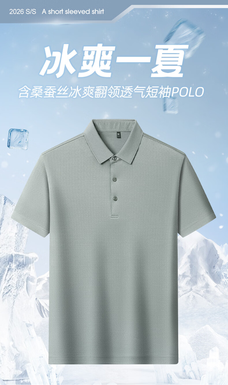 SHANSHAN杉杉【莱赛尔下摆开叉】短袖t恤男休闲翻领POLO衫夏季新款 灰绿色 S /165