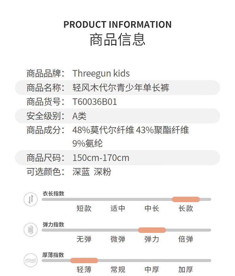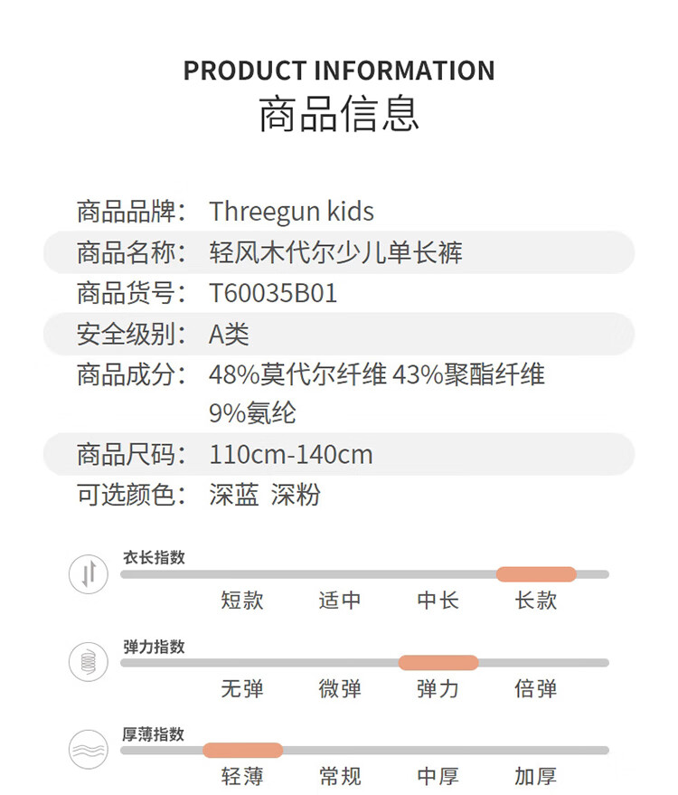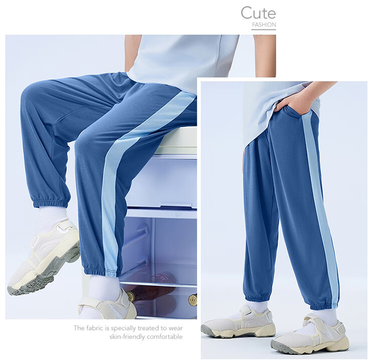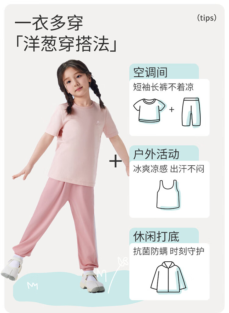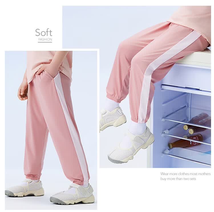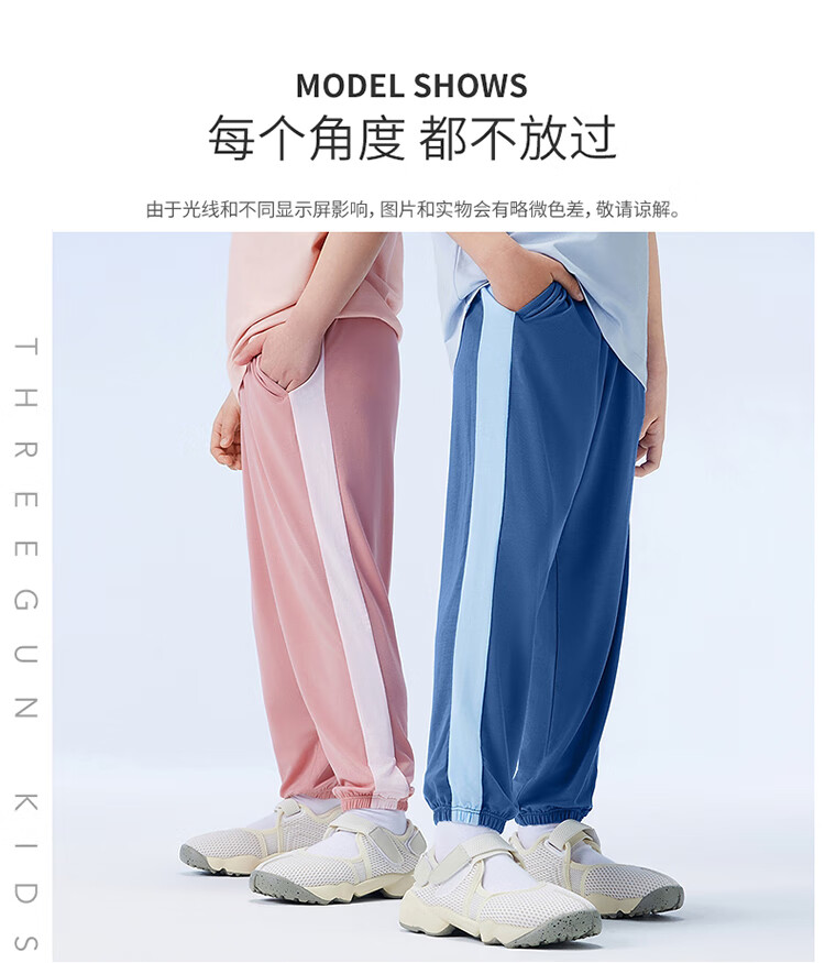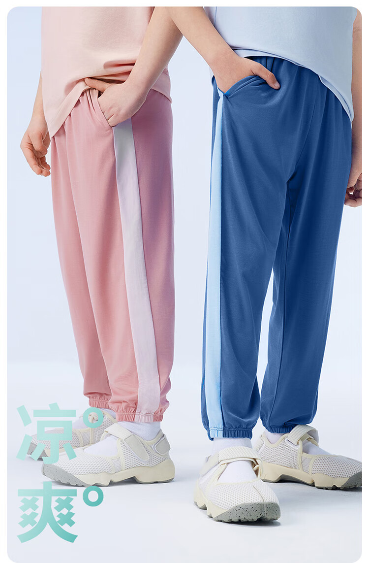 三枪儿童睡裤凉感木代尔3A抑菌男童女童单裤长裤 深粉 120