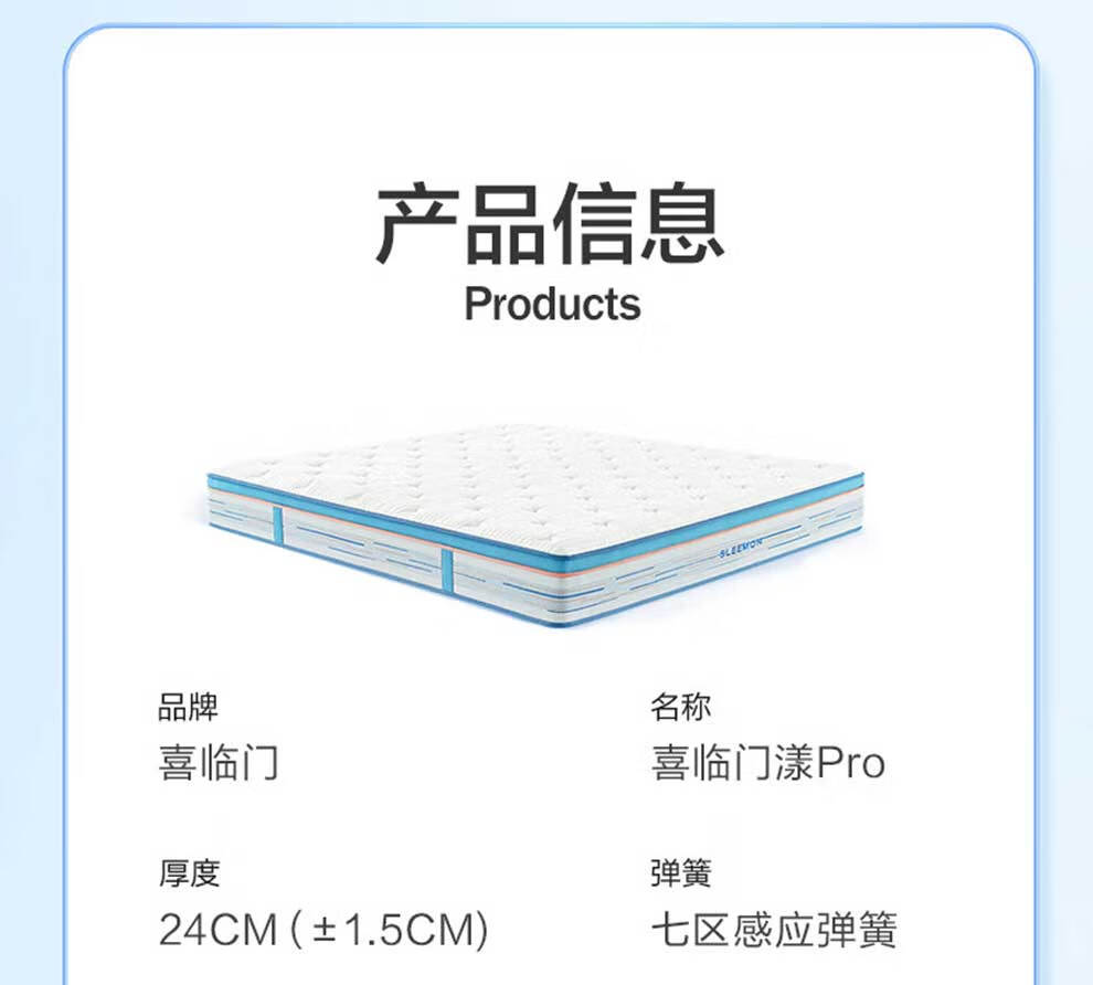 喜临门白骑士plus 2cm乳胶独袋弹簧床垫舒脊黄麻床垫 1.8x2米 软硬适中