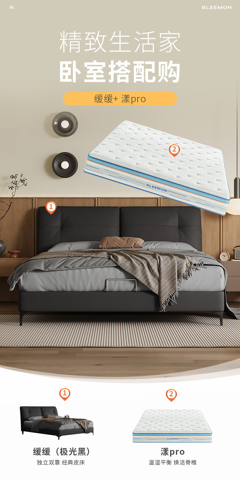 喜临门【比与辉同行价格低】缓缓pro皮床+漾pro床垫套餐