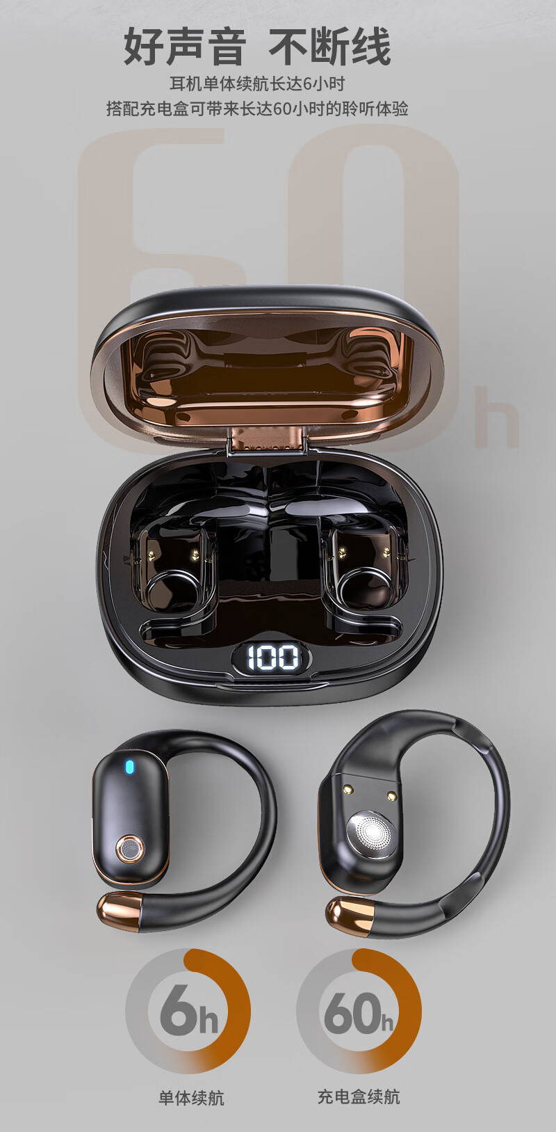 酷狗【音乐金榜】6.0蓝牙耳机耳夹式骨传导概念无线不入耳运动跑步降噪续航开放适用于苹果华为KG300 香槟金丨蓝牙6.0旗舰丨超长续航丨磁力数显
