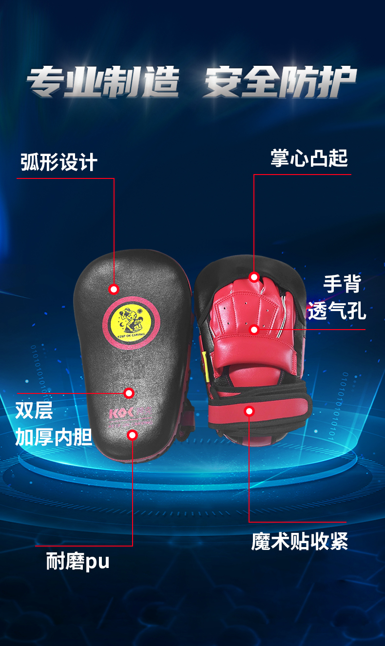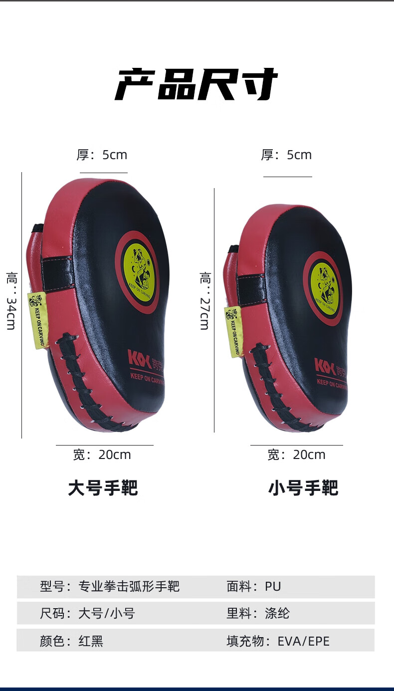 KEEP ON CARVING跨克拳击手靶套跆拳道泰拳散打脚靶护具成人儿童陪练加厚训练弧形拳靶家用 大手靶一对